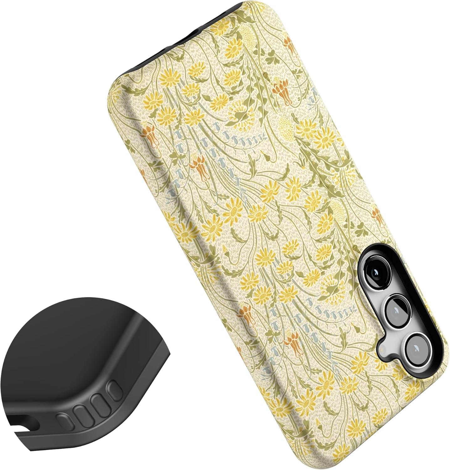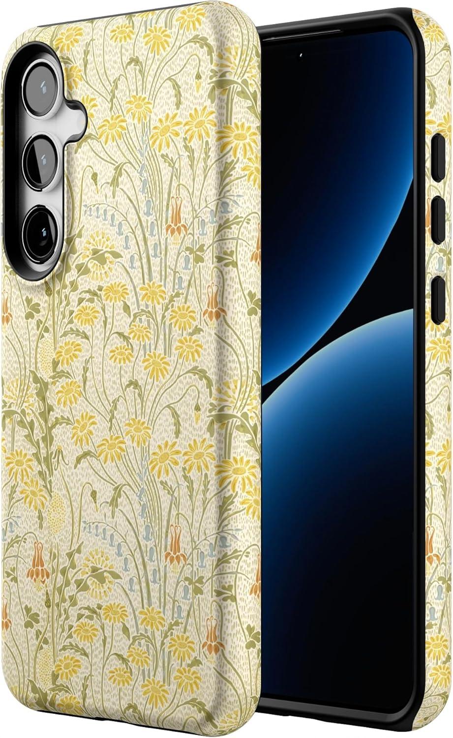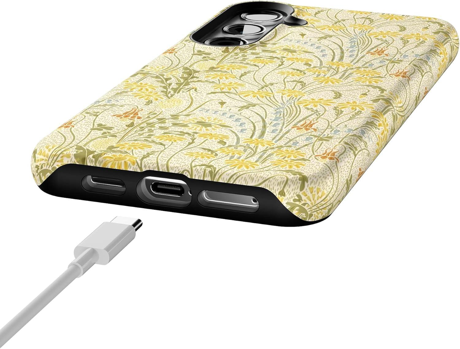 Casely Galaxy S24 Plus Case | Poppy Meadows | Pastel Floral | Essential Slim Dual-Layer Protective Design(Boho Blooms | Golden Floral)
