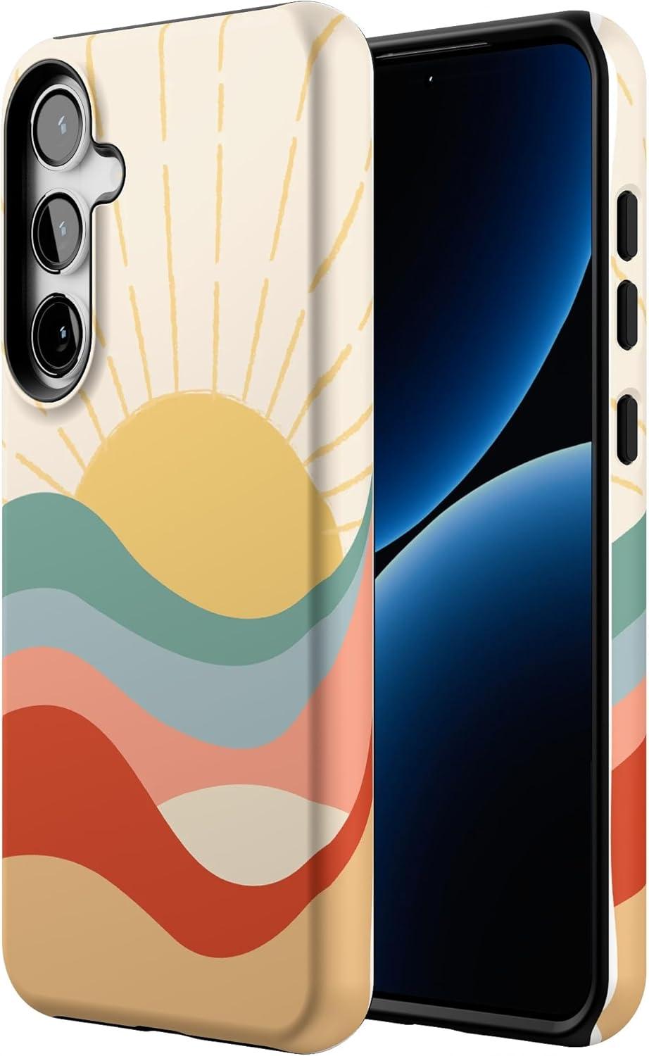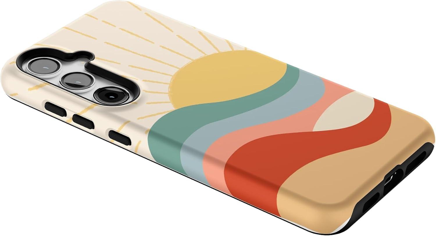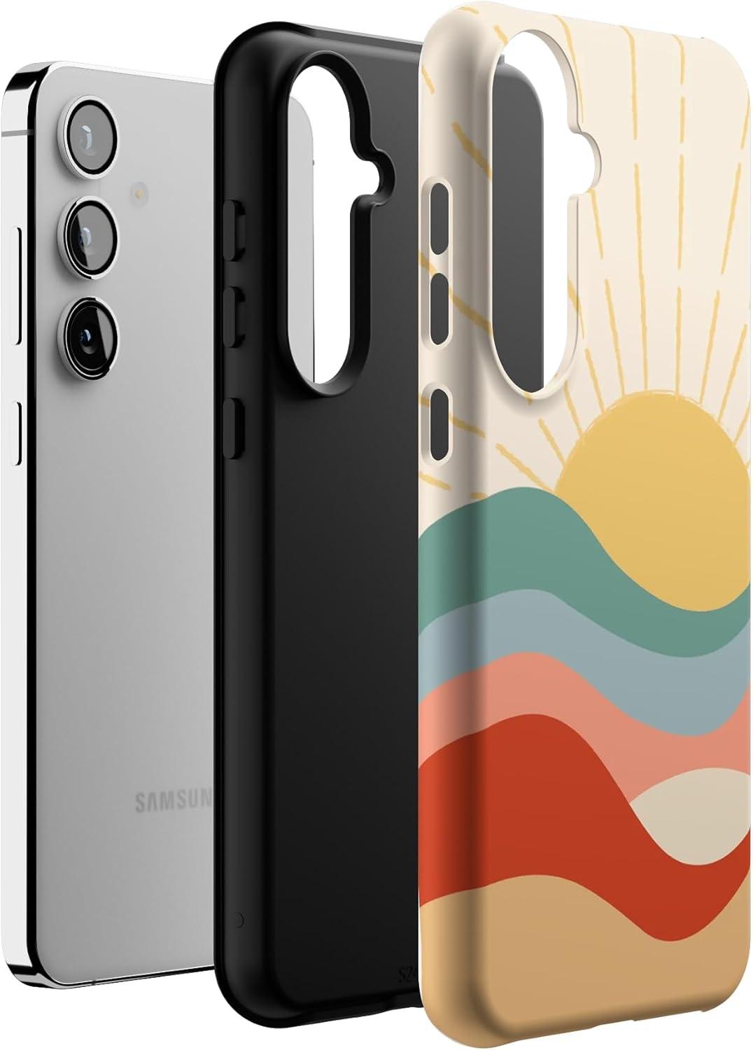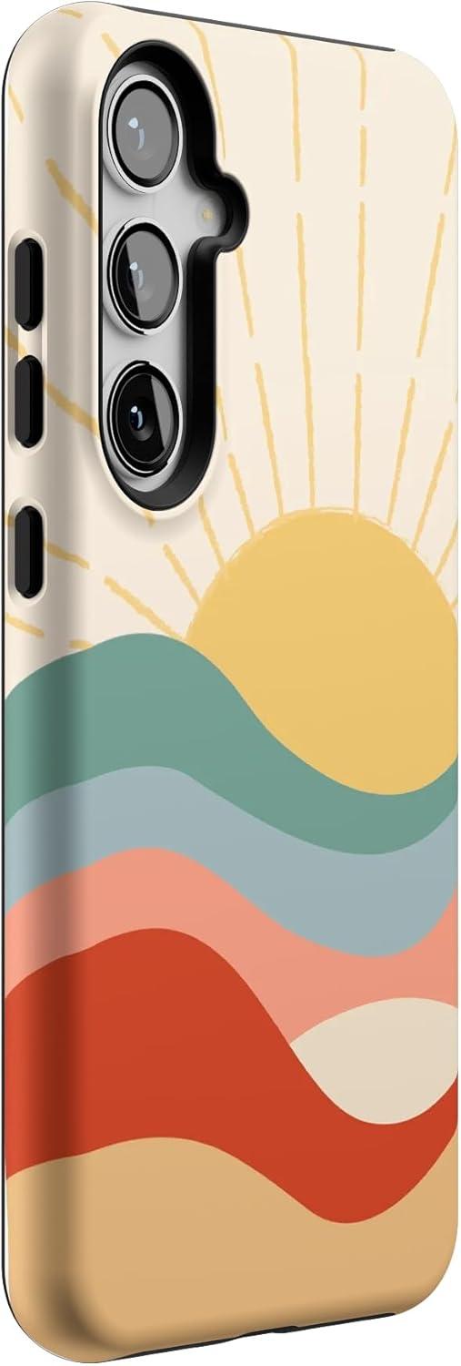Casely Galaxy S24 Plus Case | Poppy Meadows | Pastel Floral | Essential Slim Dual-Layer Protective Design(Here Comes the Sun | Colorblock Sunset)