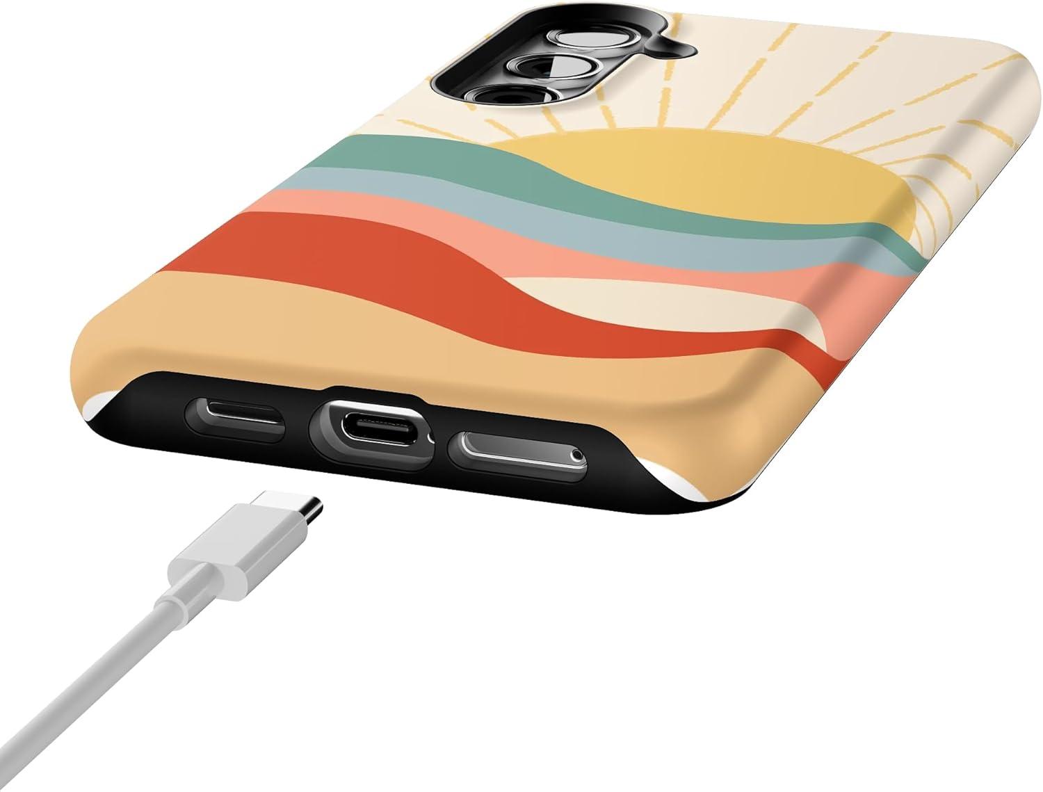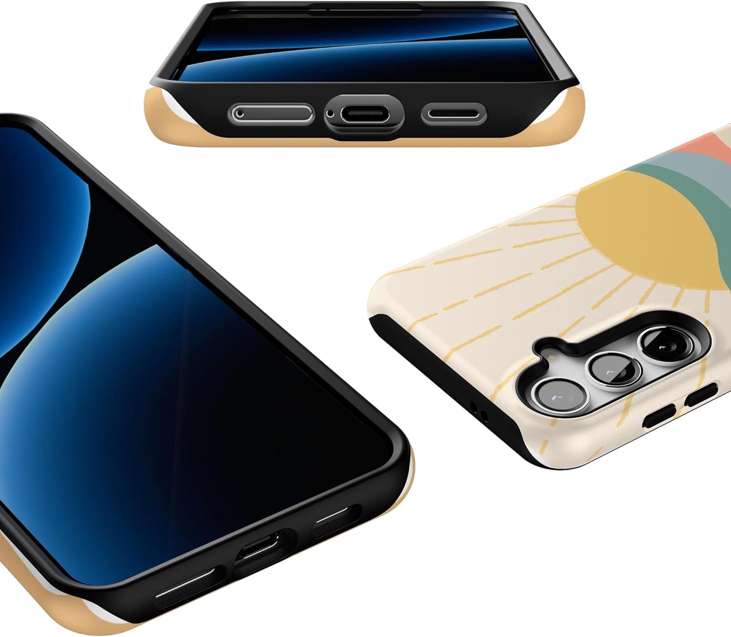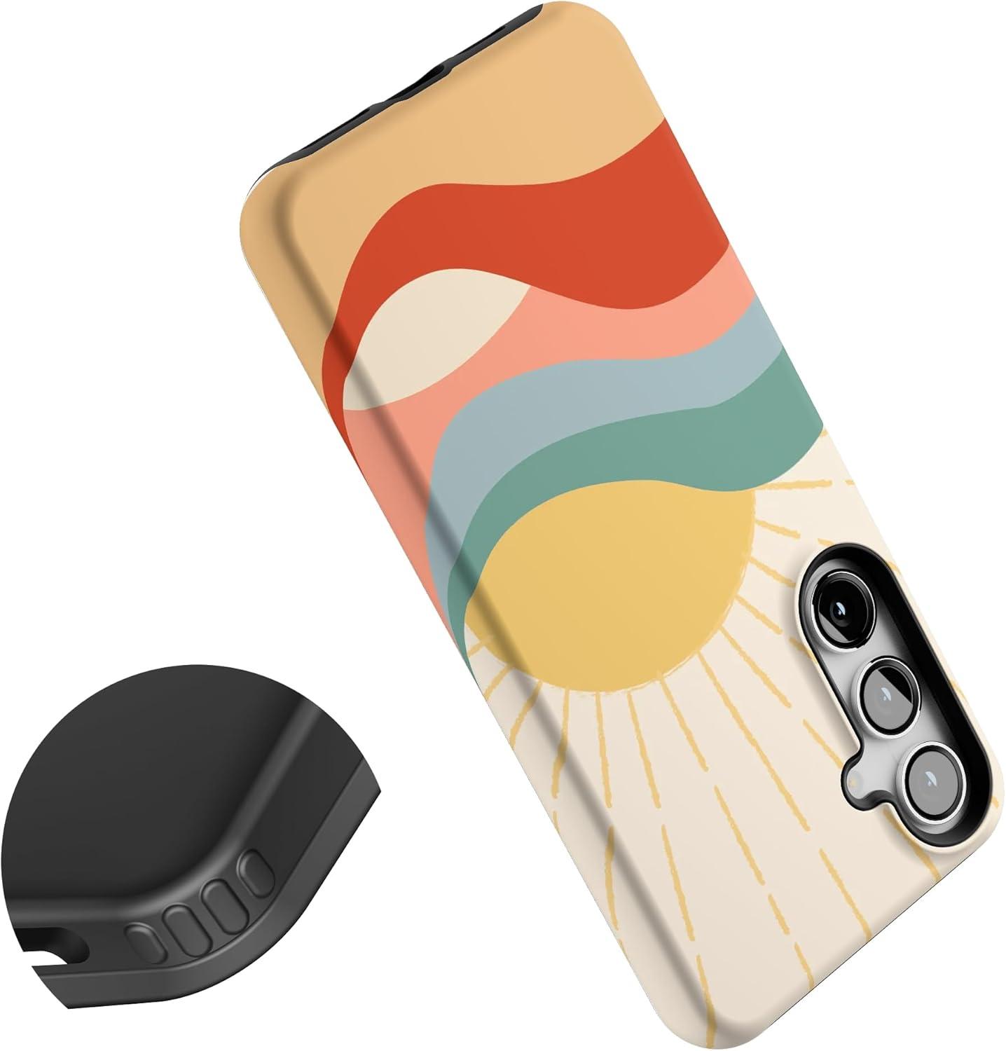 Casely Galaxy S24 Plus Case | Poppy Meadows | Pastel Floral | Essential Slim Dual-Layer Protective Design(Here Comes the Sun | Colorblock Sunset)