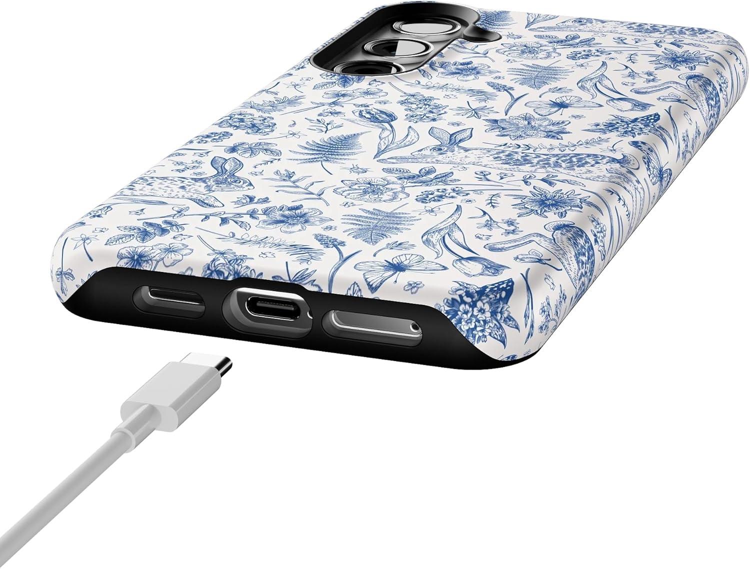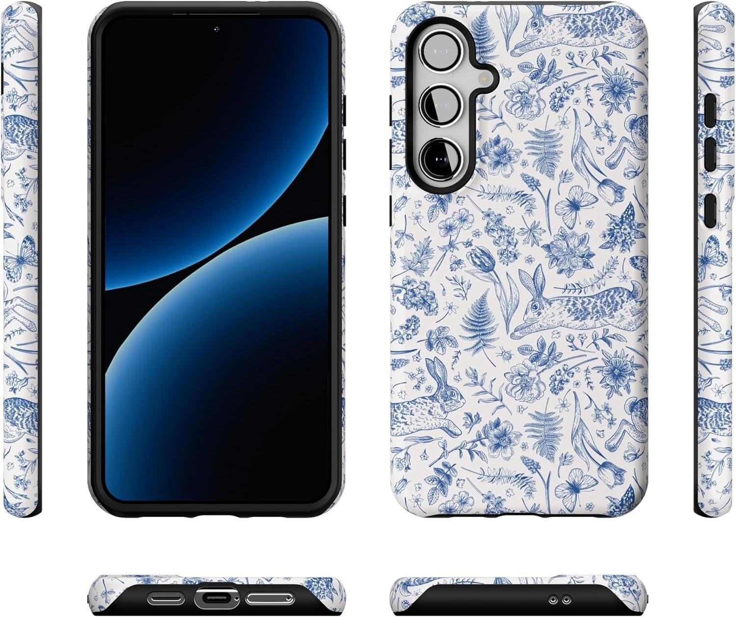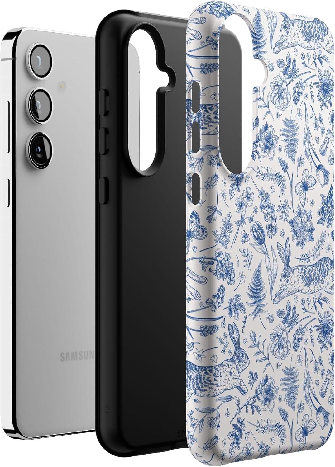 Casely Galaxy S24 Plus Case | Poppy Meadows | Pastel Floral | Essential Slim Dual-Layer Protective Design(Hop & Bloom | Bunny Toile)