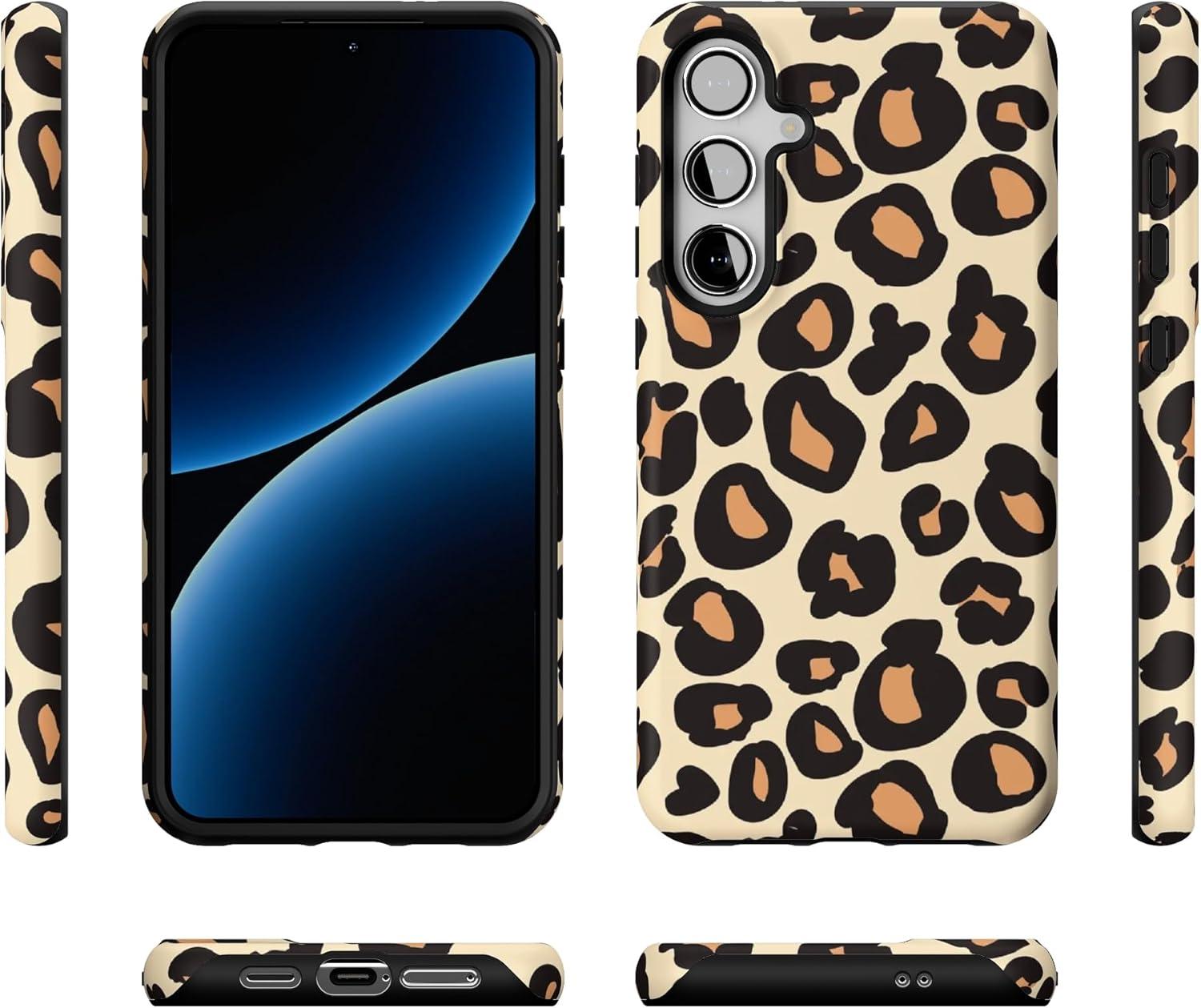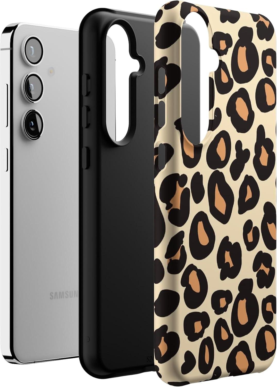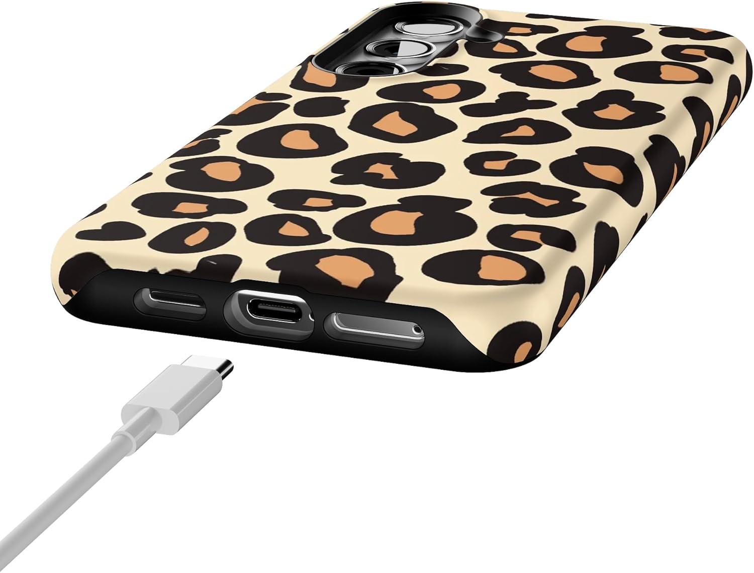 Casely Galaxy S24 Plus Case | Poppy Meadows | Pastel Floral | Essential Slim Dual-Layer Protective Design(Into the Wild | Leopard Print)