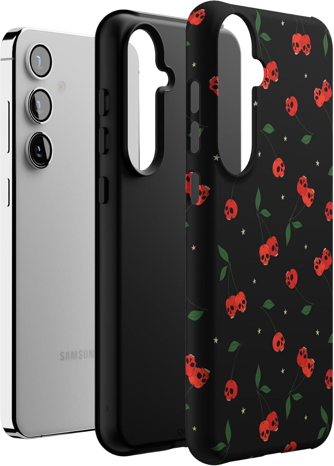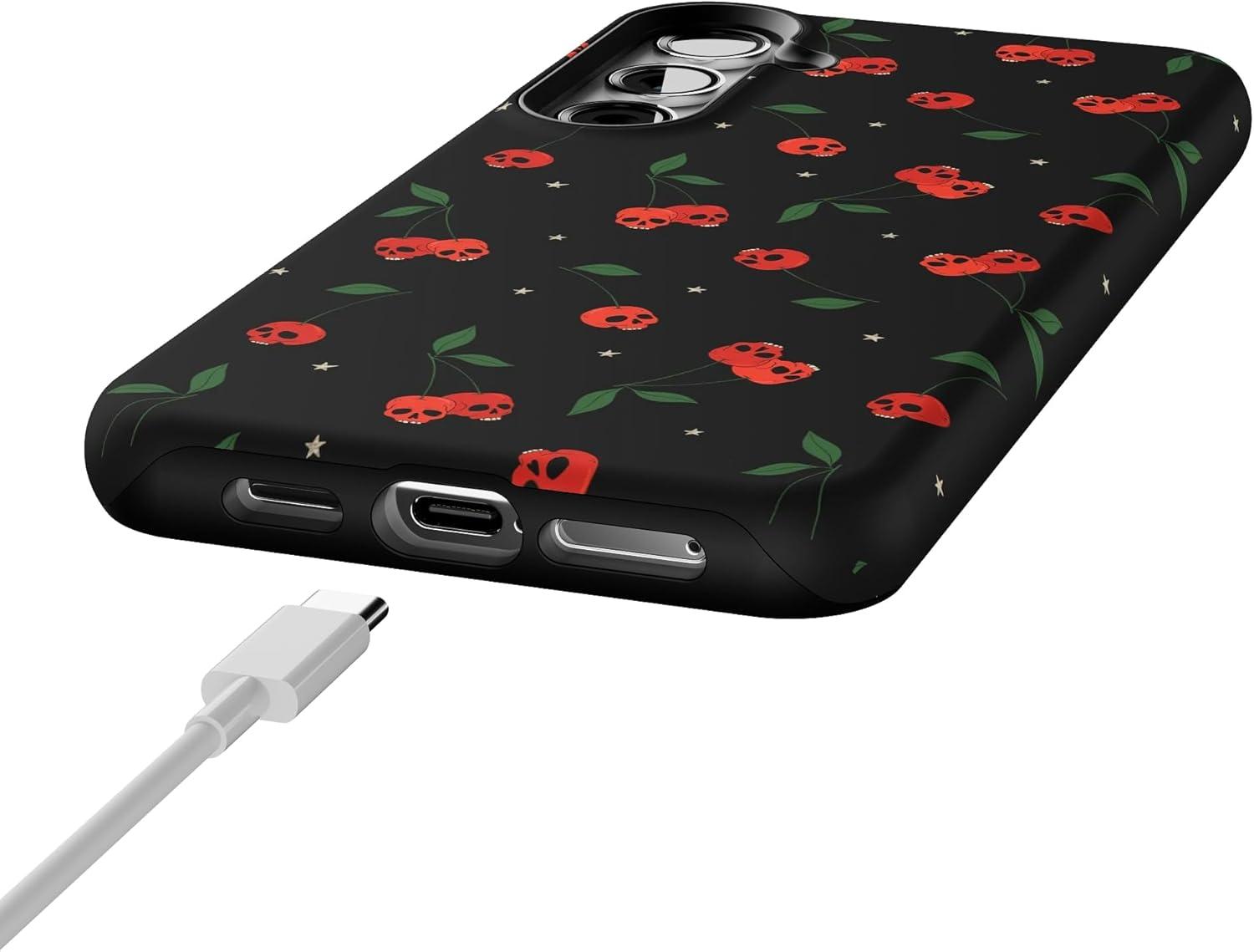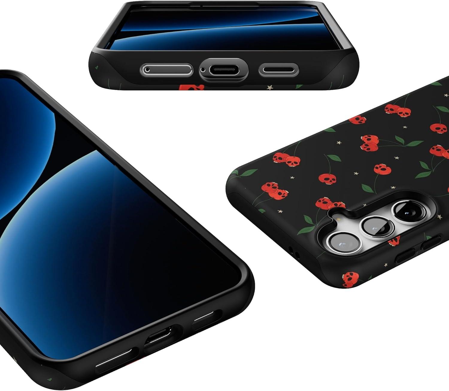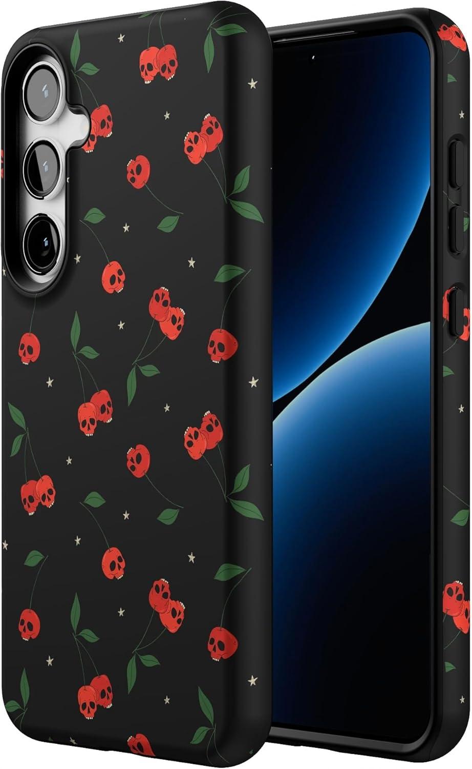Casely Galaxy S24 Plus Case | Poppy Meadows | Pastel Floral | Essential Slim Dual-Layer Protective Design(Sweet Revenge | Cherry Skulls)
