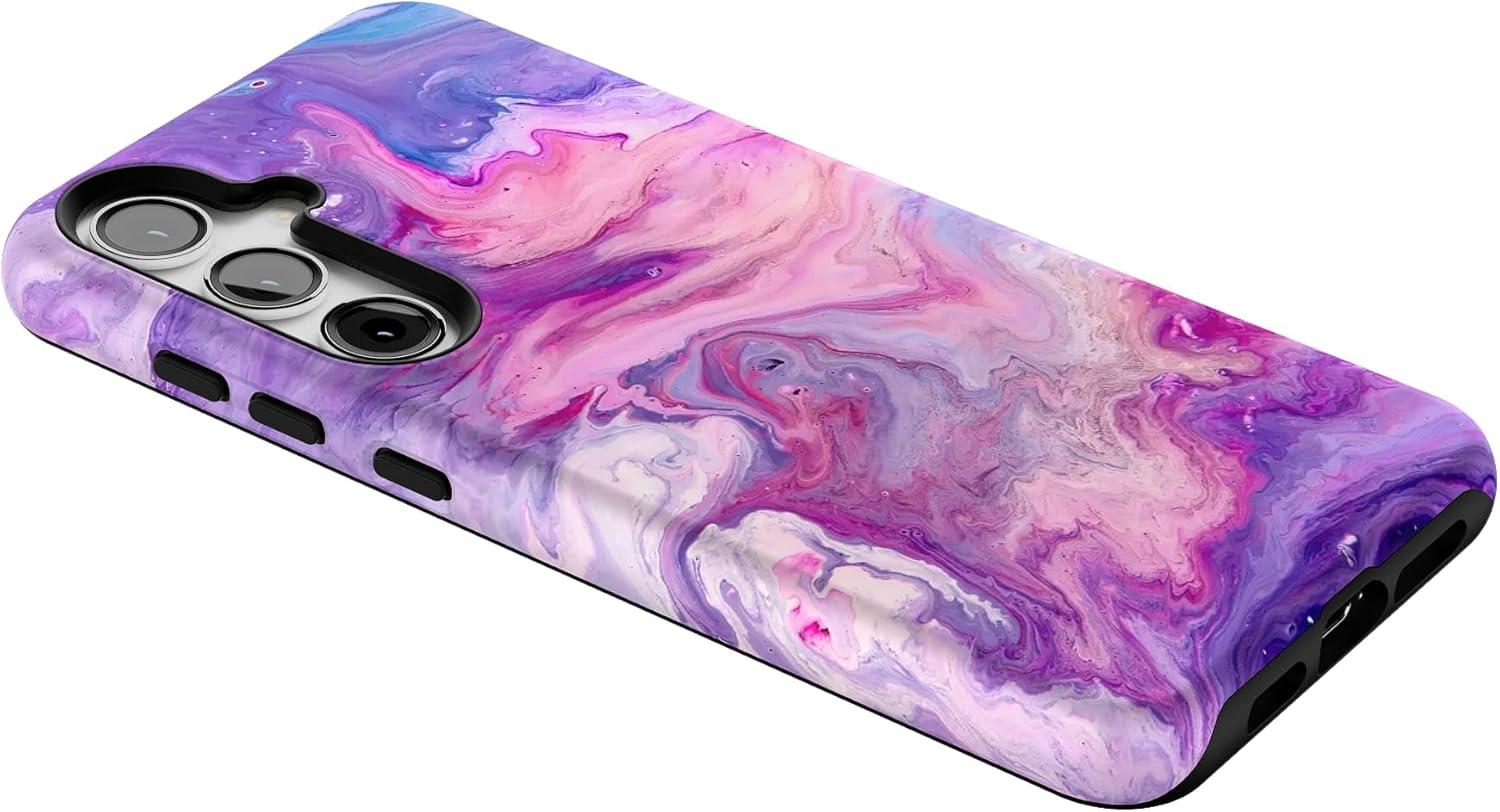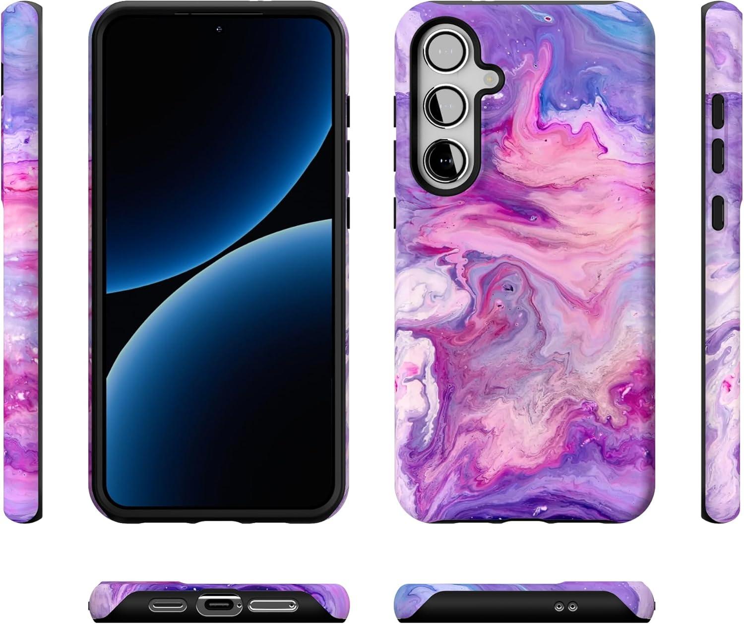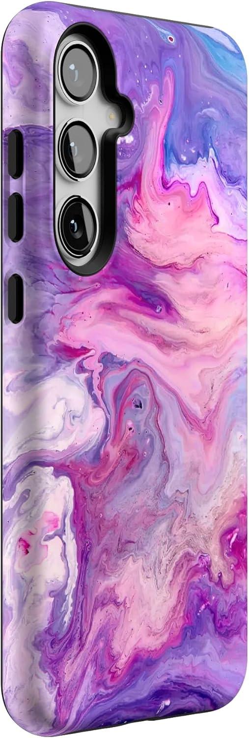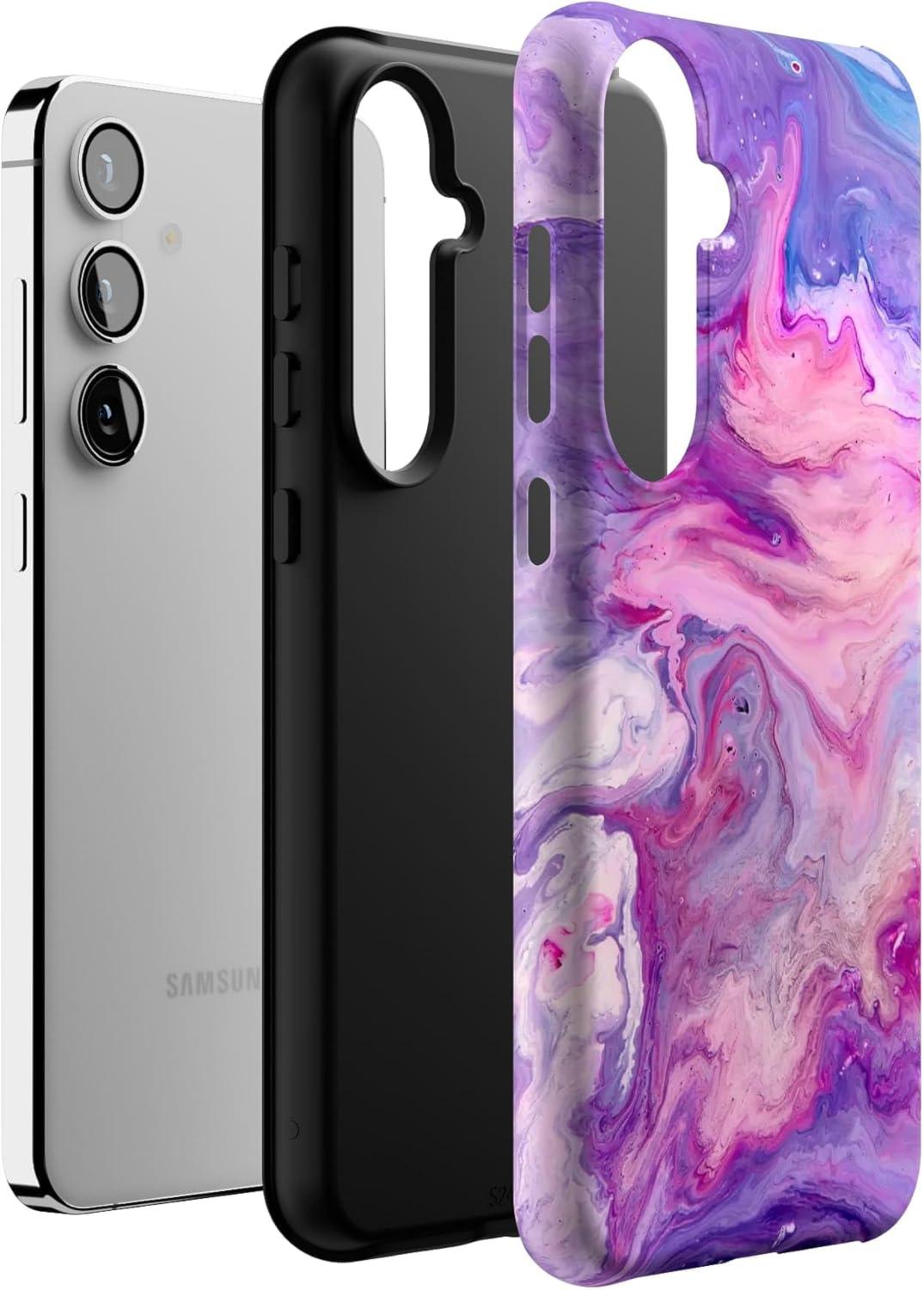 Casely Galaxy S24 Plus Case | Poppy Meadows | Pastel Floral | Essential Slim Dual-Layer Protective Design(Tie Dying Over You | Purple Marble)
