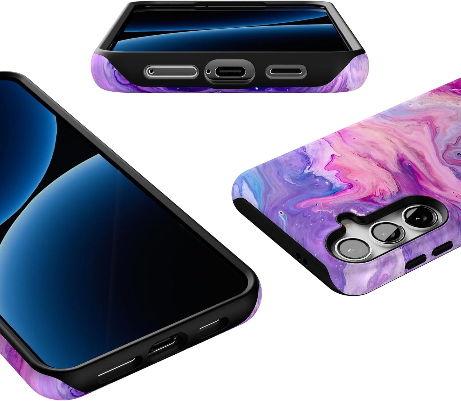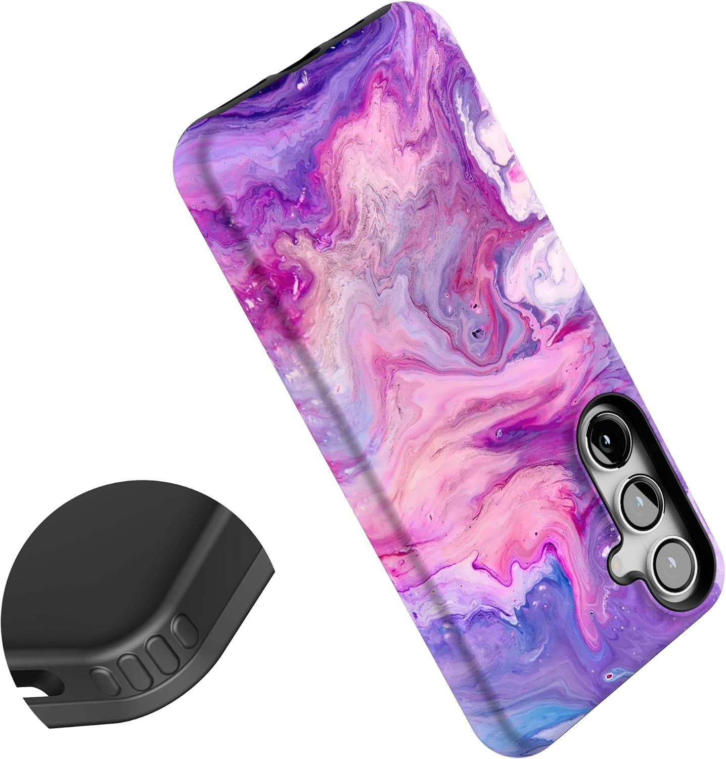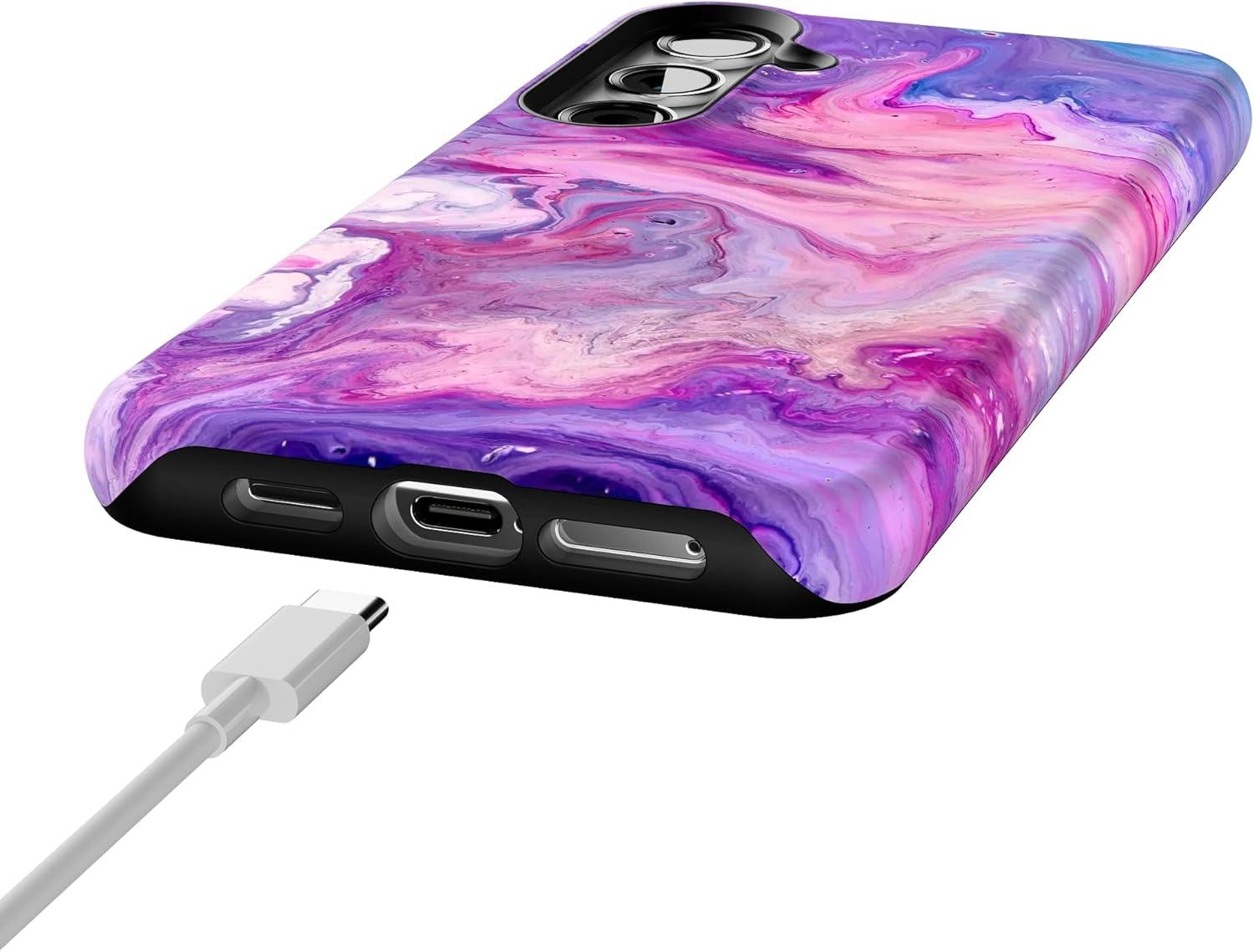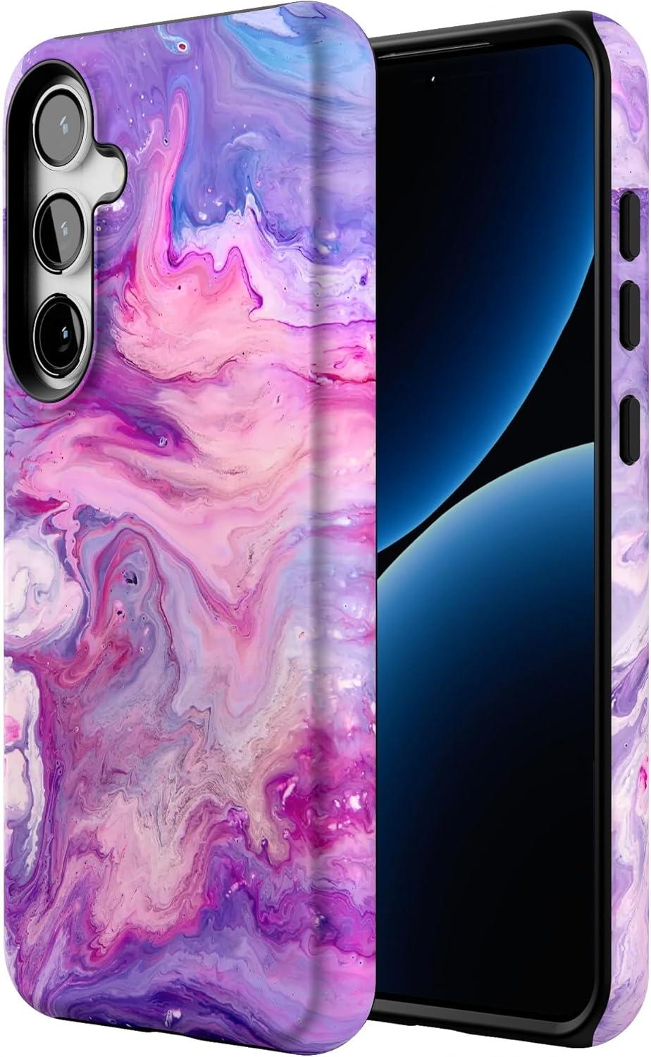 Casely Galaxy S24 Plus Case | Poppy Meadows | Pastel Floral | Essential Slim Dual-Layer Protective Design(Tie Dying Over You | Purple Marble)