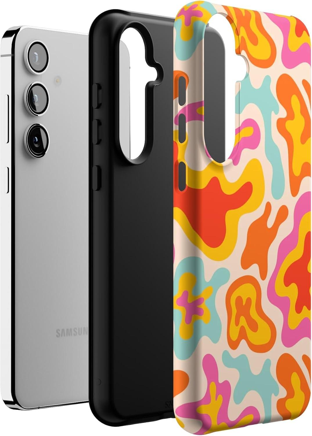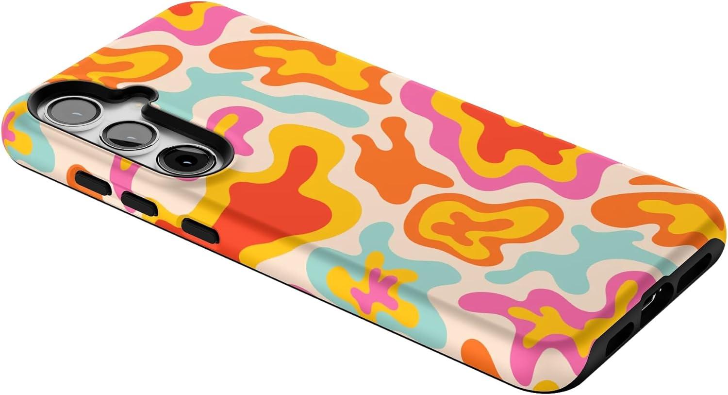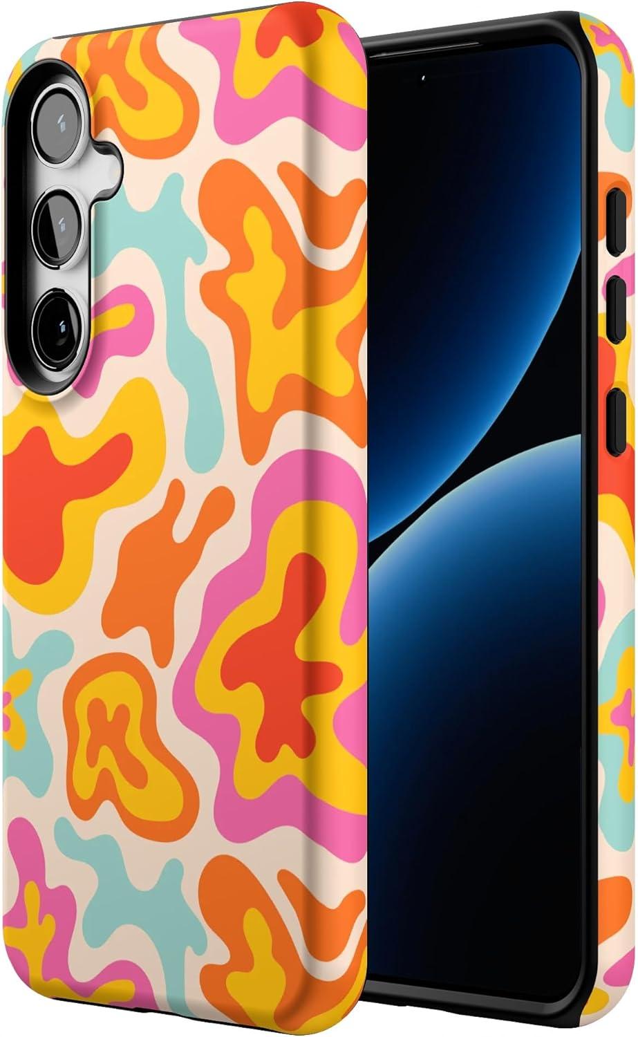 Casely Galaxy S24 Plus Case | Poppy Meadows | Pastel Floral | Essential Slim Dual-Layer Protective Design(Tropical Color Splash | Abstract Retro)