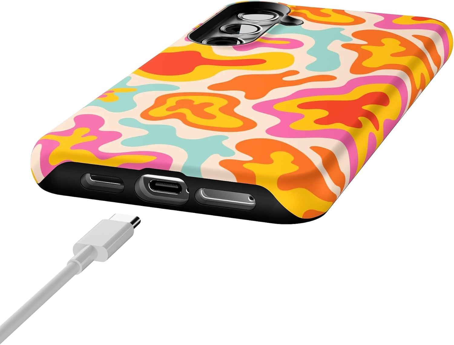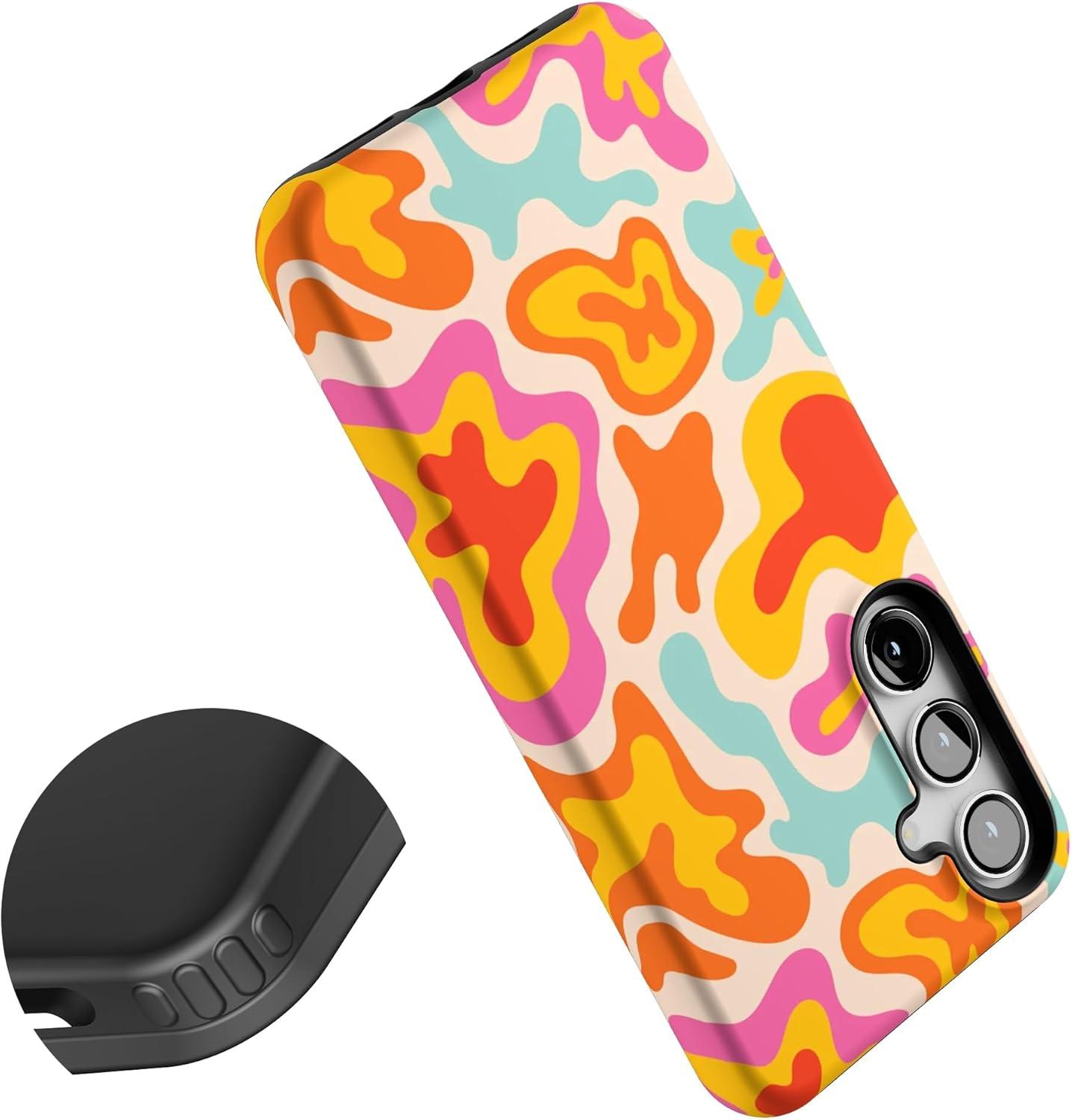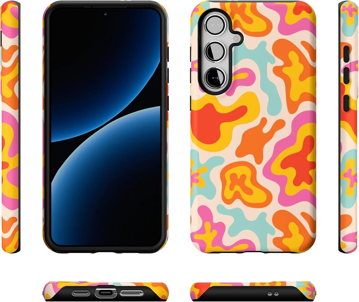 Casely Galaxy S24 Plus Case | Poppy Meadows | Pastel Floral | Essential Slim Dual-Layer Protective Design(Tropical Color Splash | Abstract Retro)