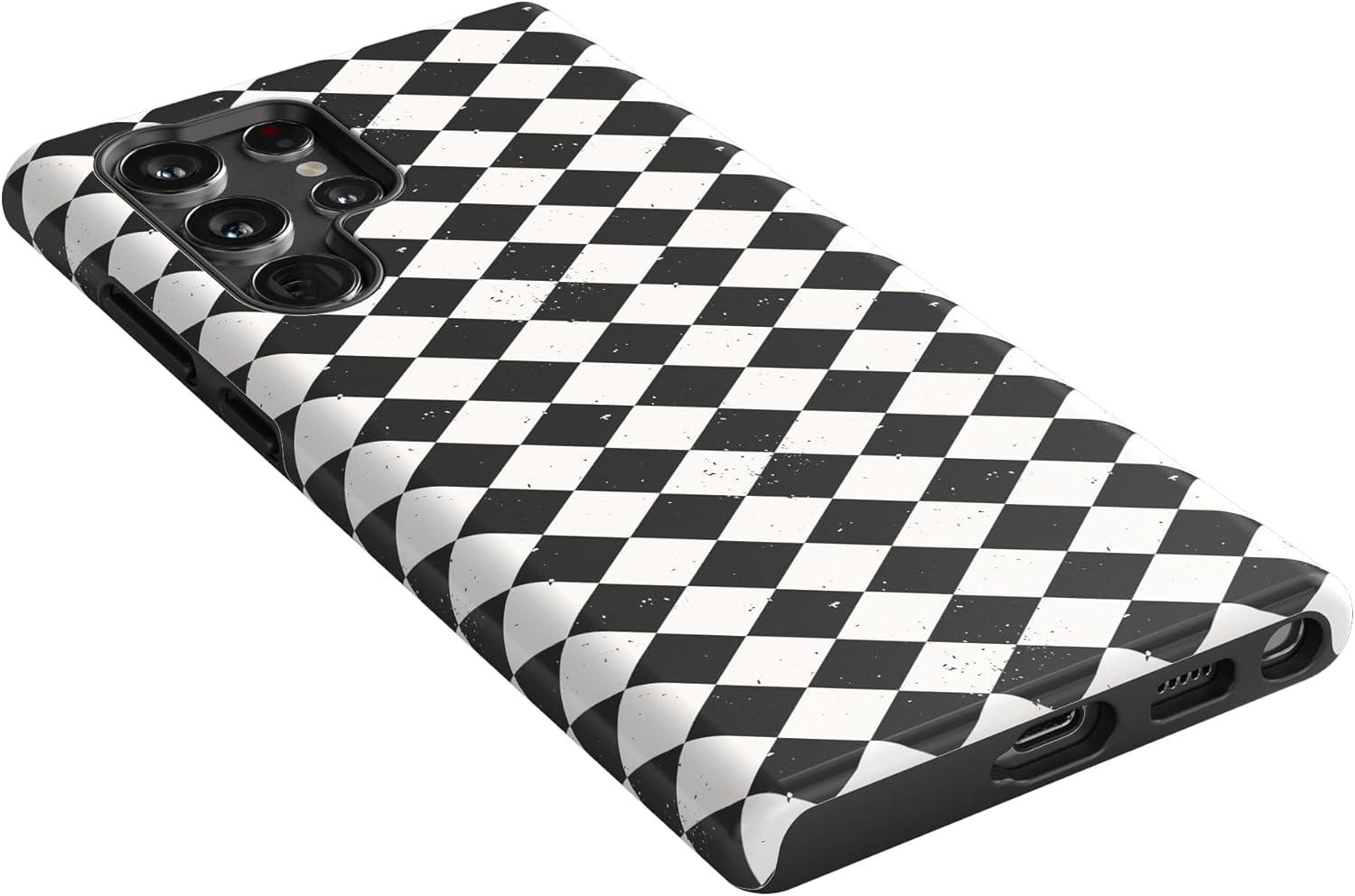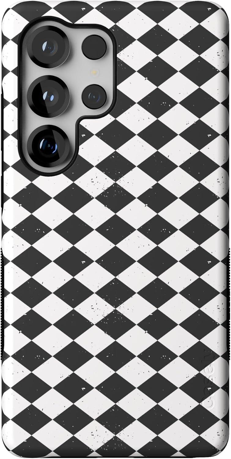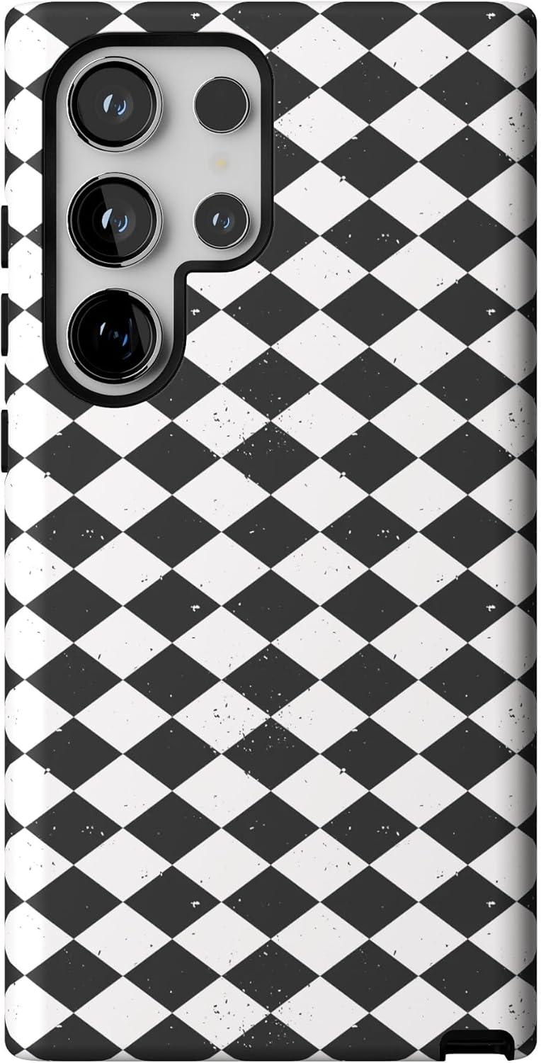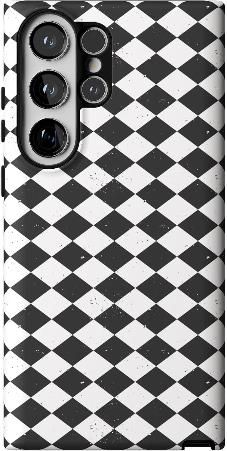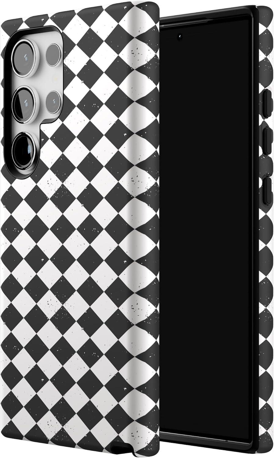 Casely Galaxy S24 Ultra Case | Such a Battie | Purple Bats | Essential Slim Dual-Layer Protective Design(Harlequin Salem Diamond | Black and White)