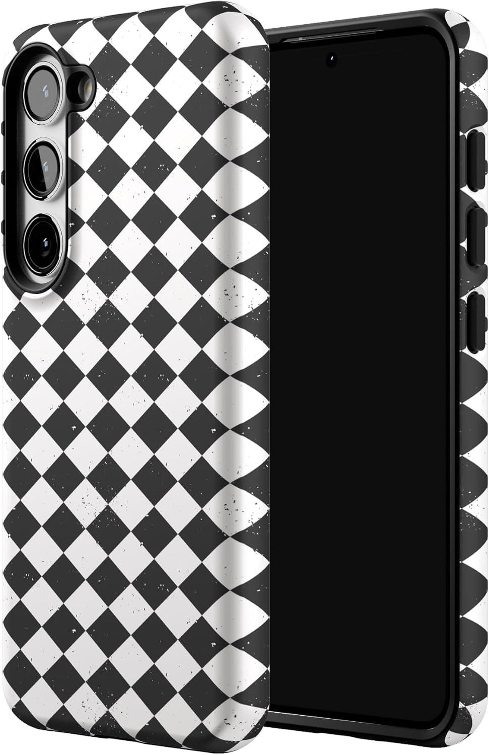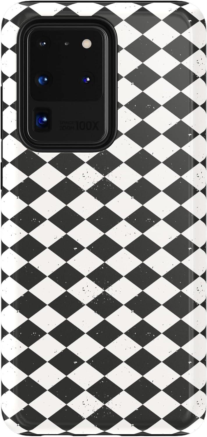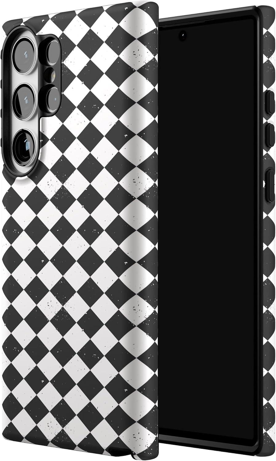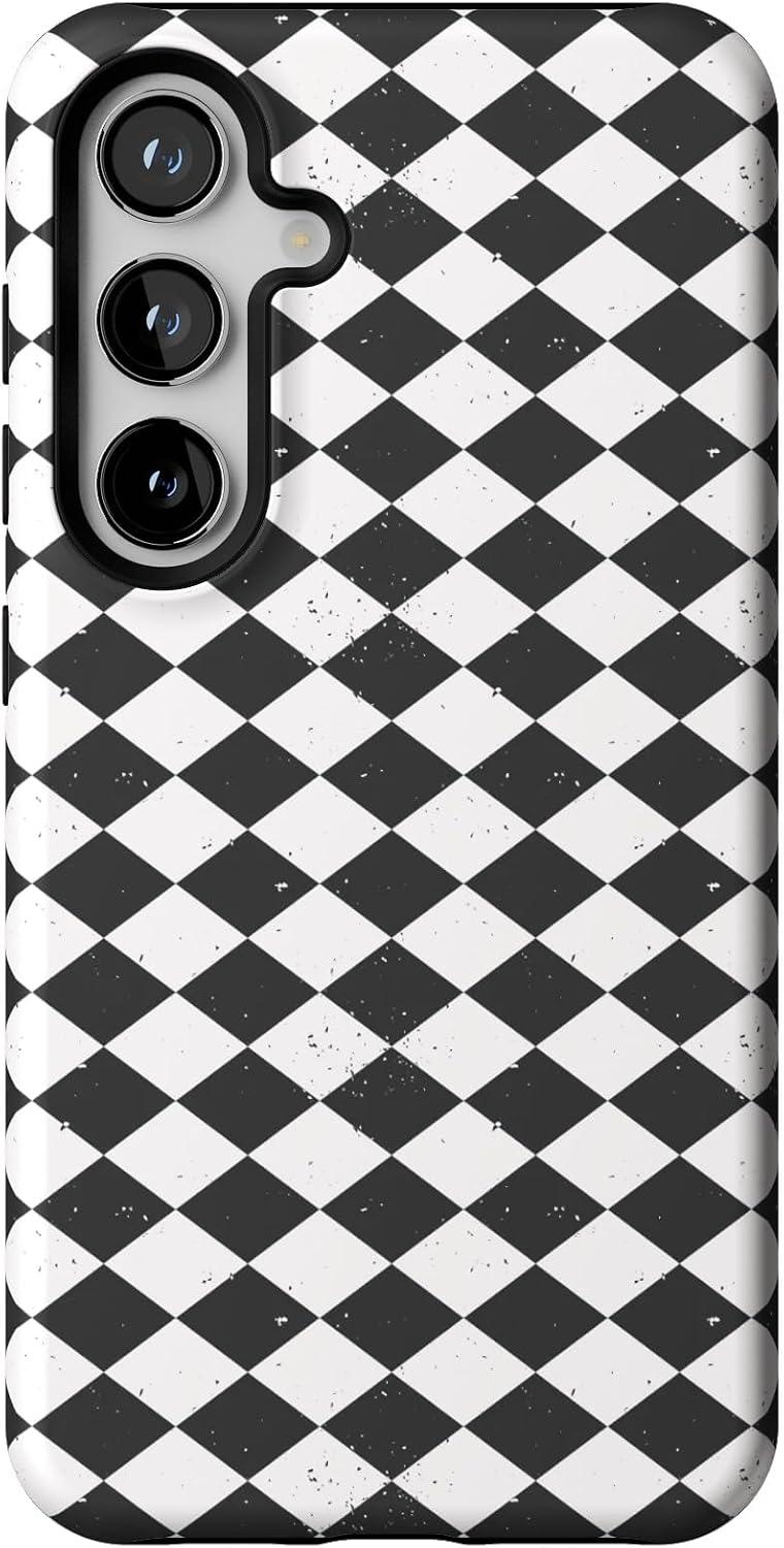 Casely Galaxy S24 Ultra Case | Such a Battie | Purple Bats | Essential Slim Dual-Layer Protective Design(Harlequin Salem Diamond | Black and White)