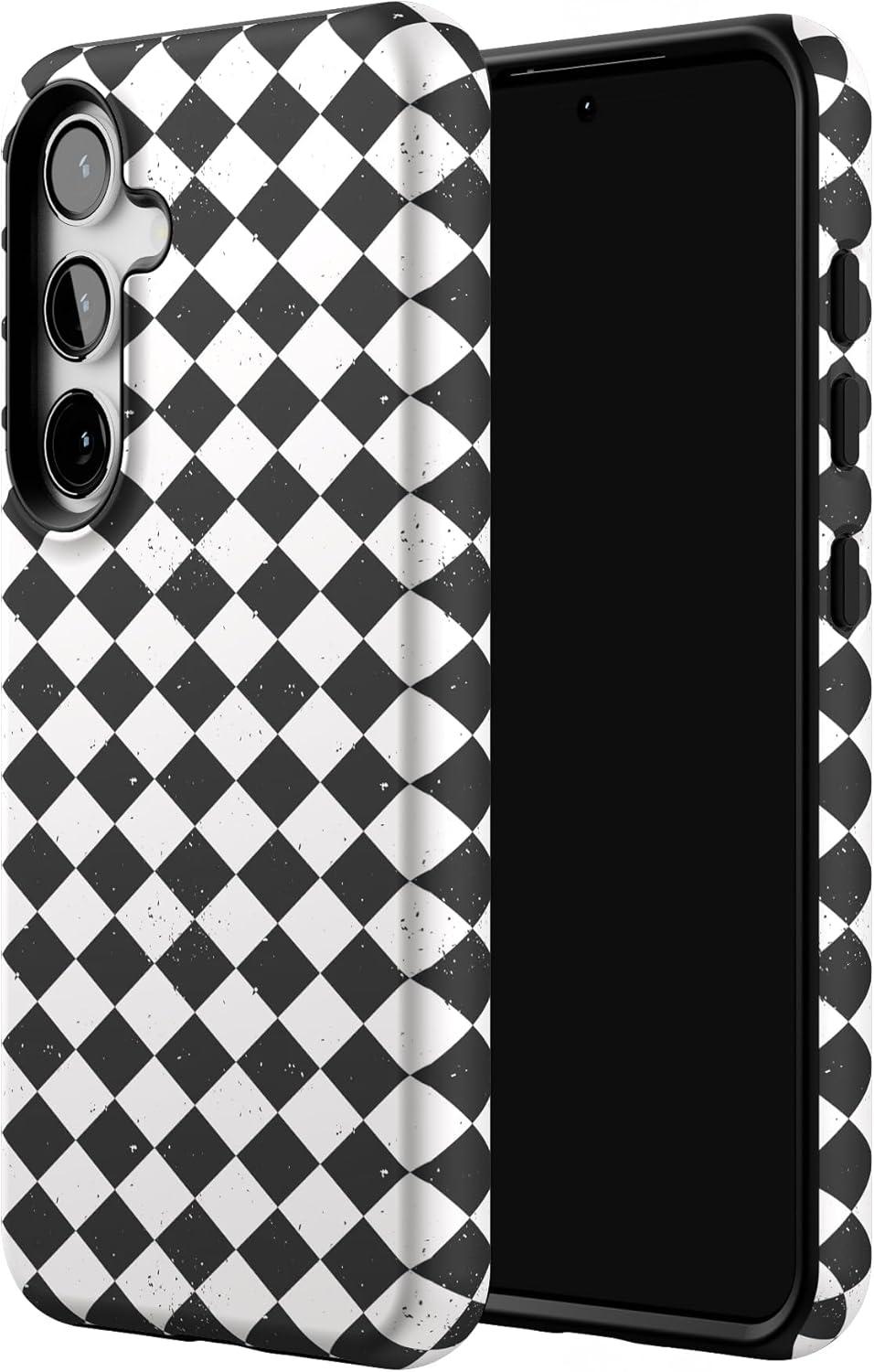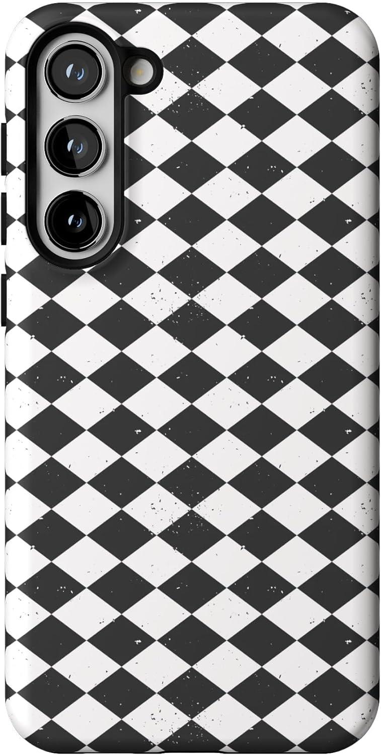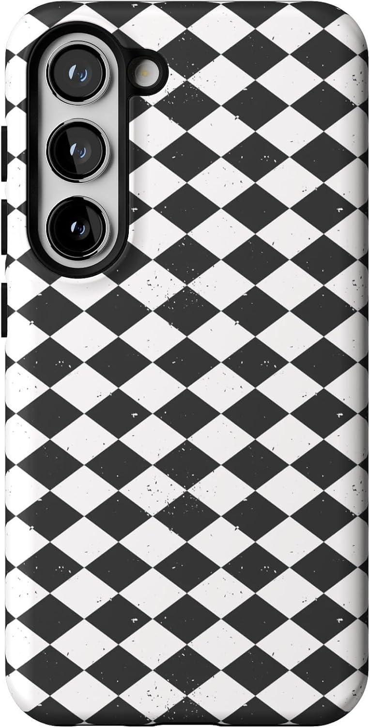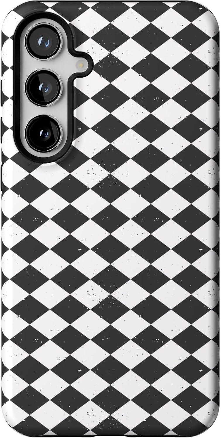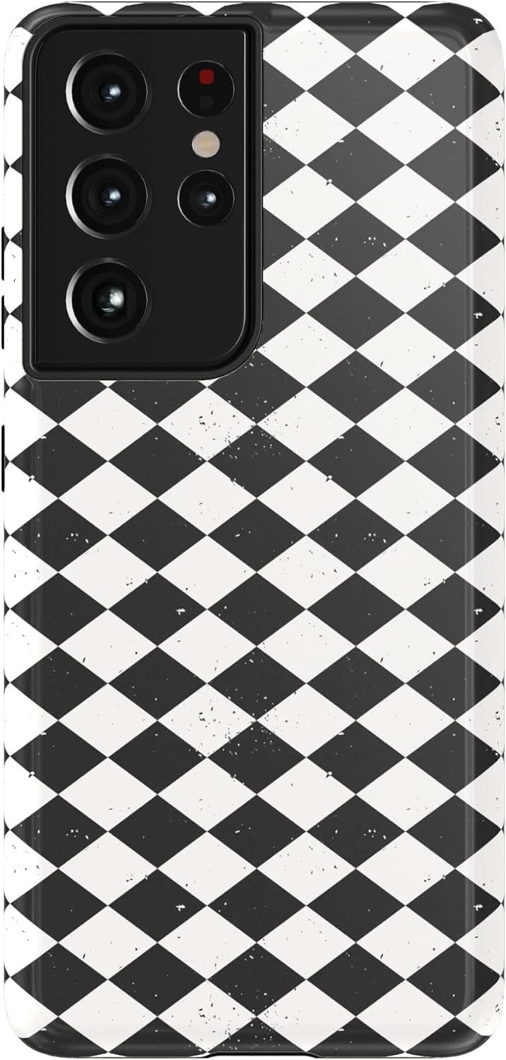 Casely Galaxy S24 Ultra Case | Such a Battie | Purple Bats | Essential Slim Dual-Layer Protective Design(Harlequin Salem Diamond | Black and White)