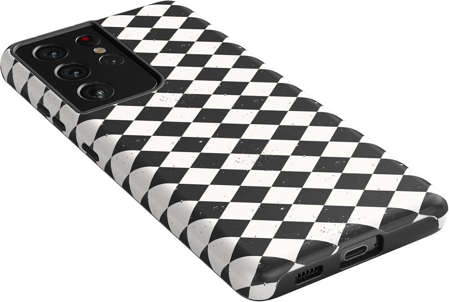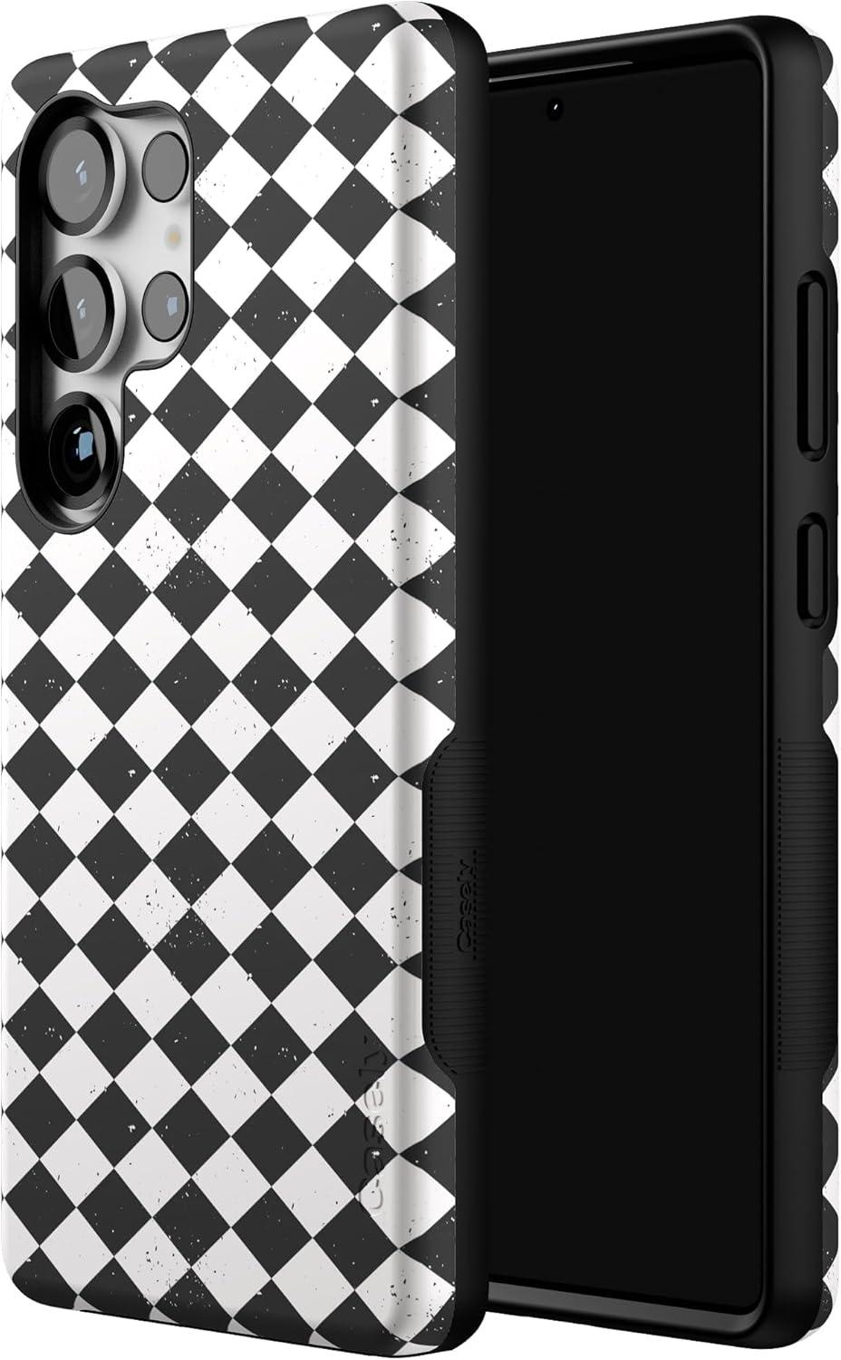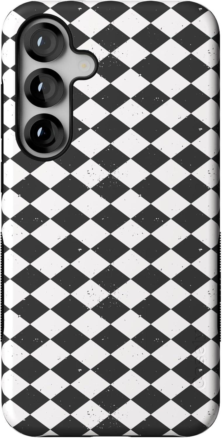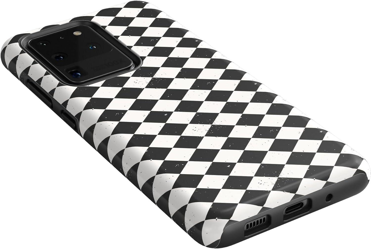 Casely Galaxy S24 Ultra Case | Such a Battie | Purple Bats | Essential Slim Dual-Layer Protective Design(Harlequin Salem Diamond | Black and White)