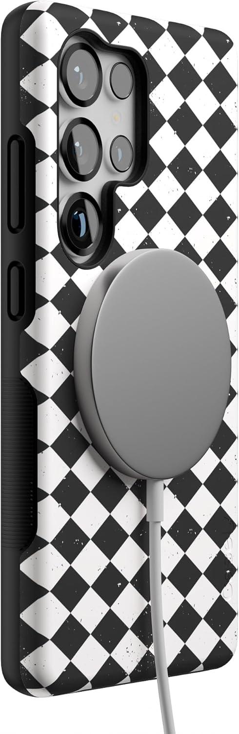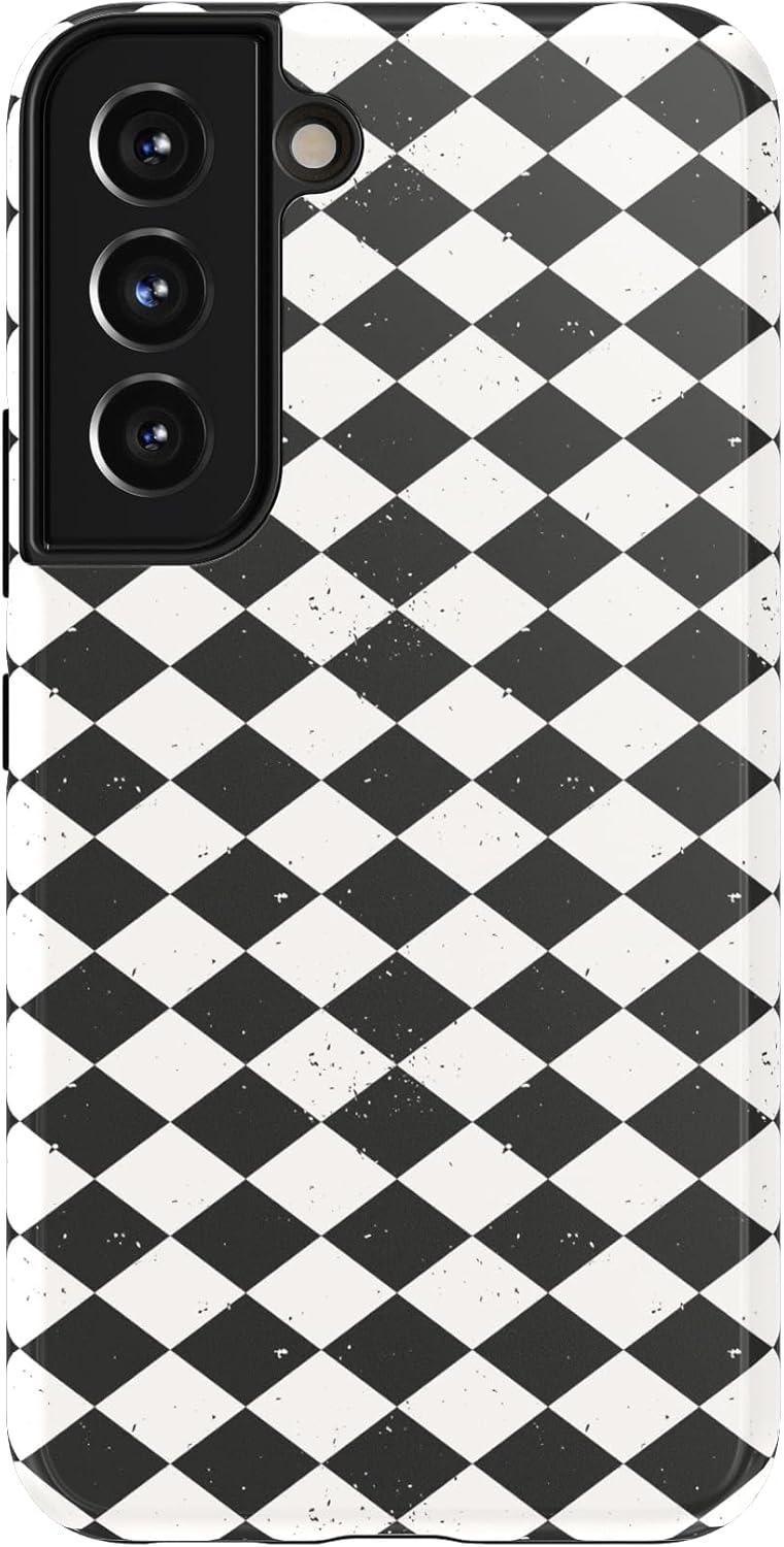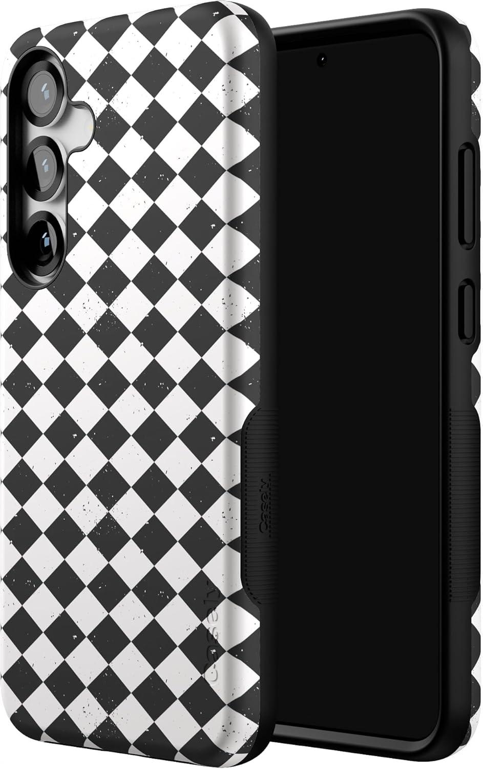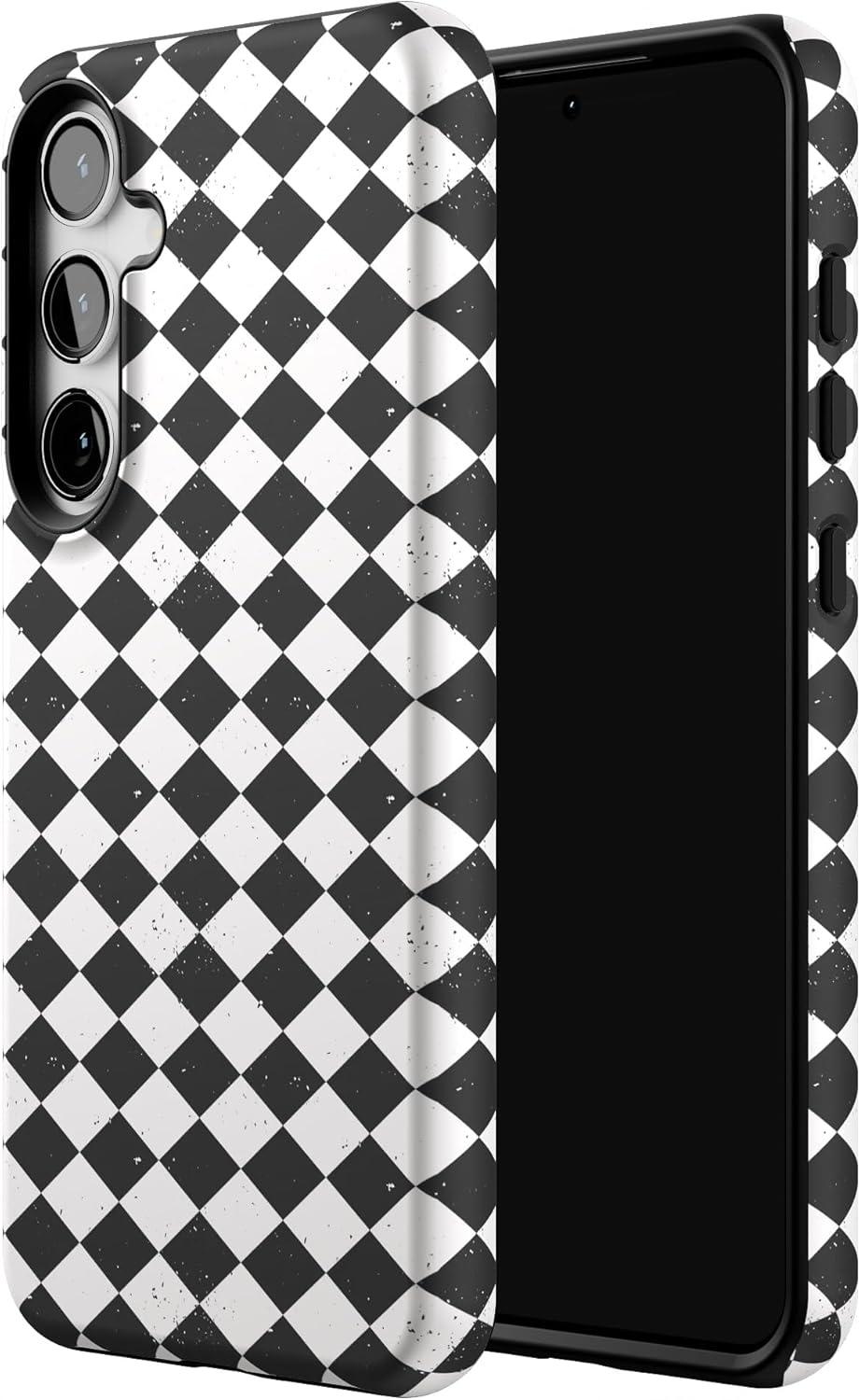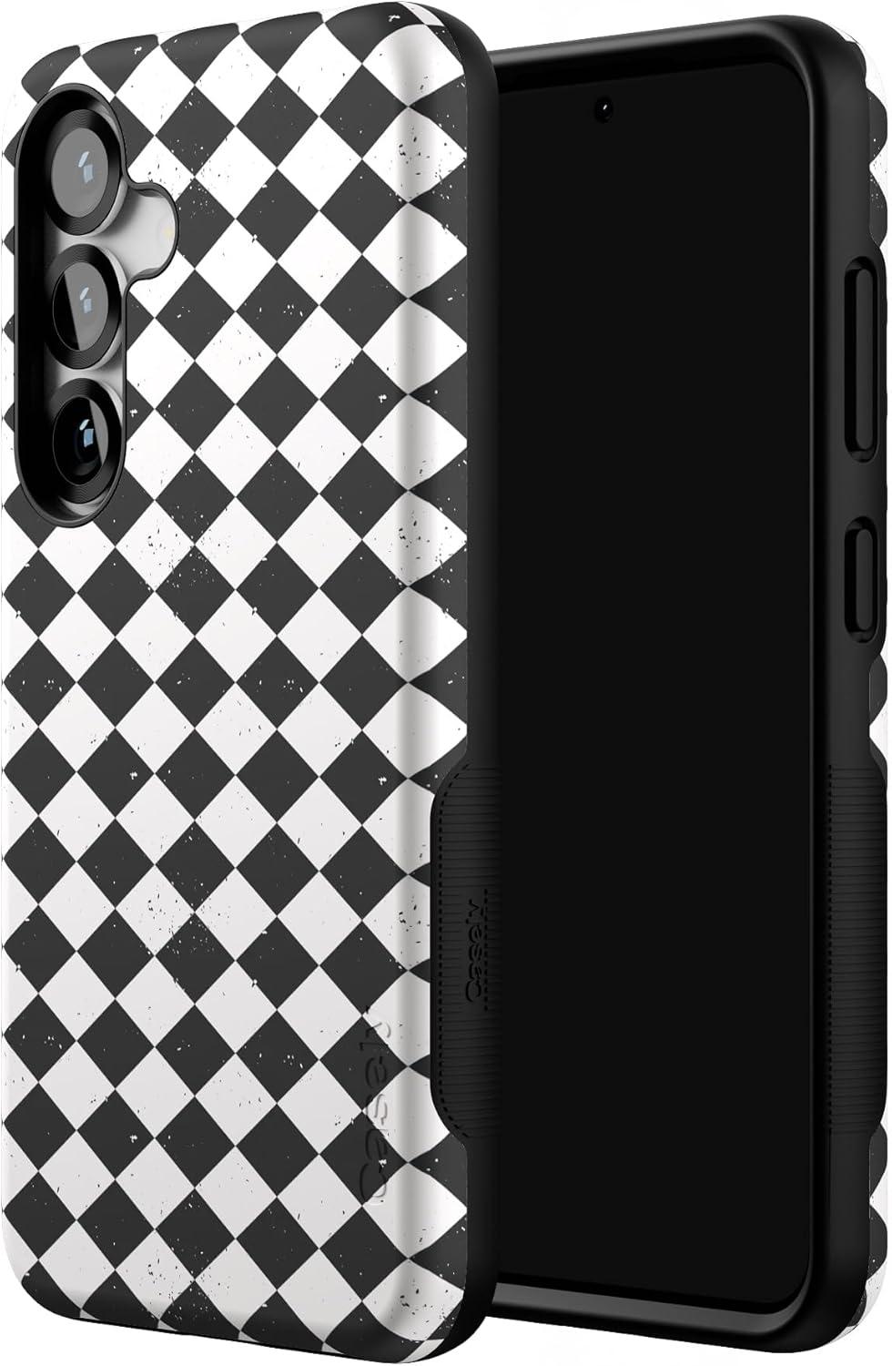 Casely Galaxy S24 Ultra Case | Such a Battie | Purple Bats | Essential Slim Dual-Layer Protective Design(Harlequin Salem Diamond | Black and White)