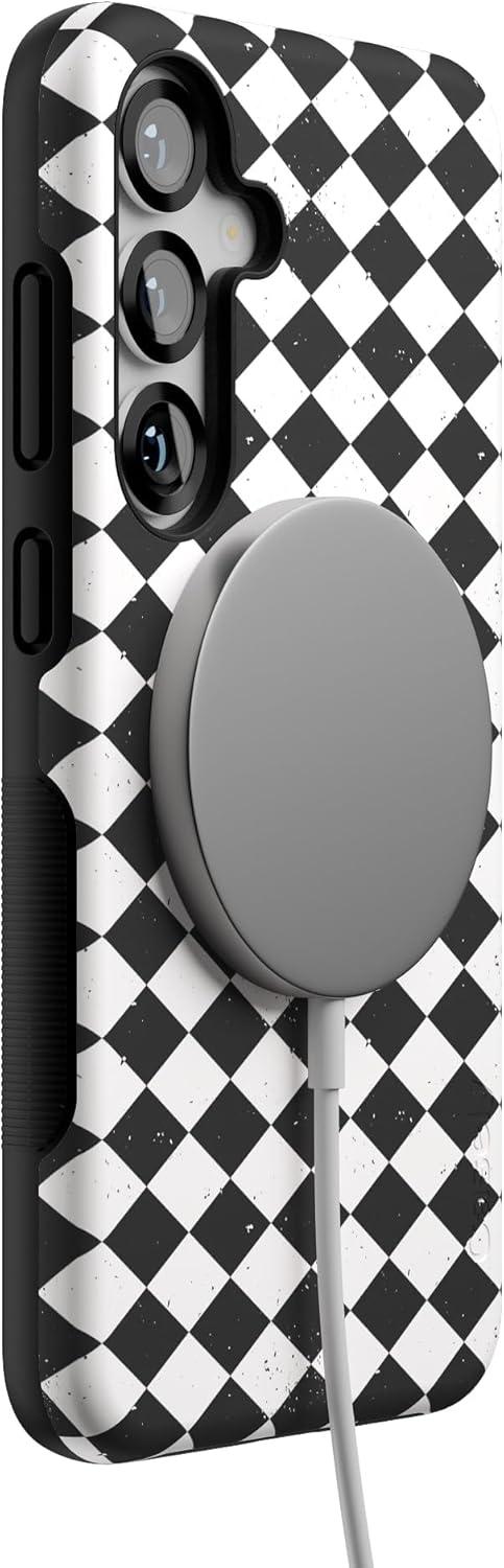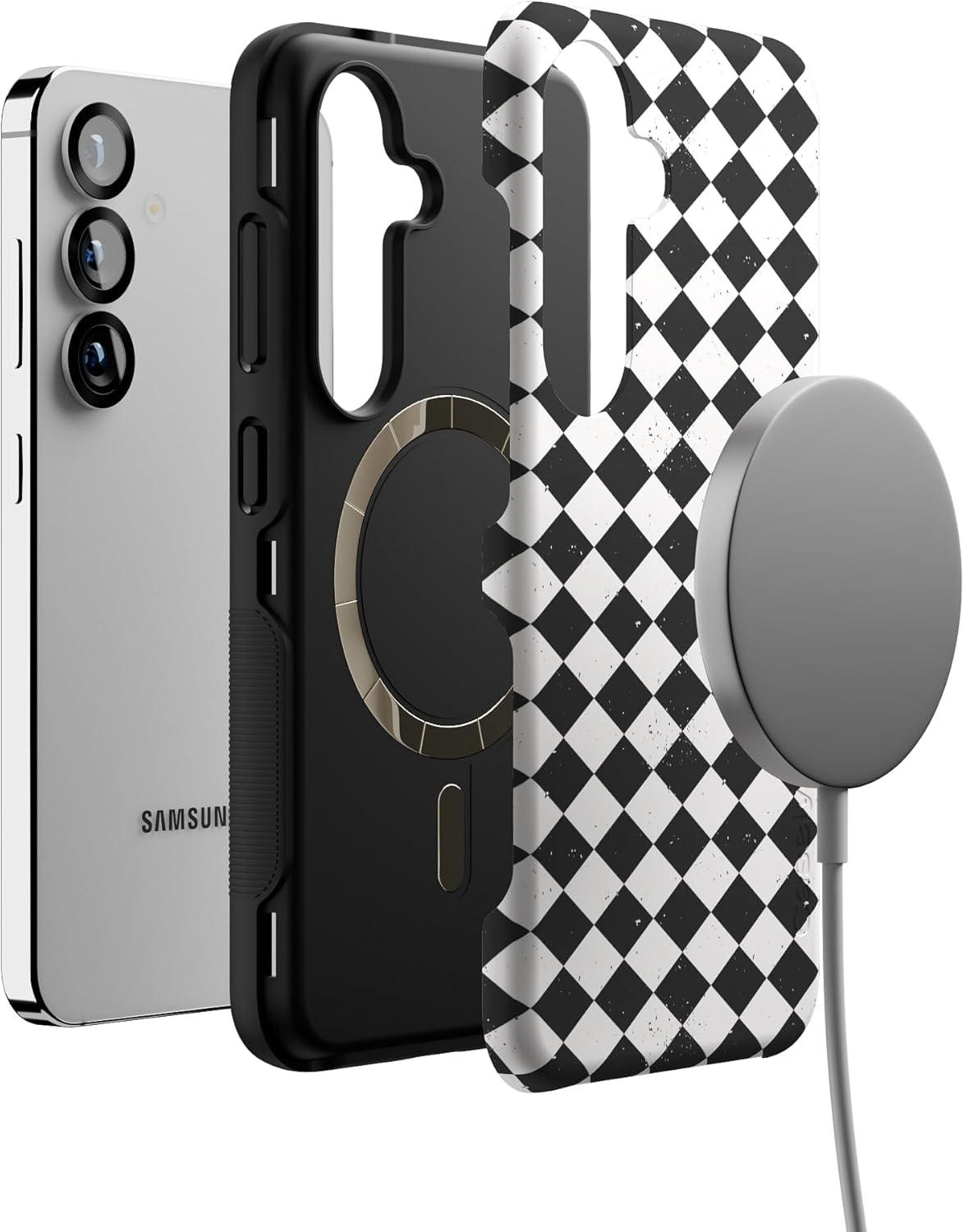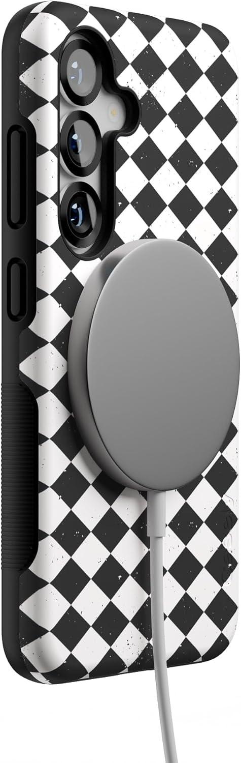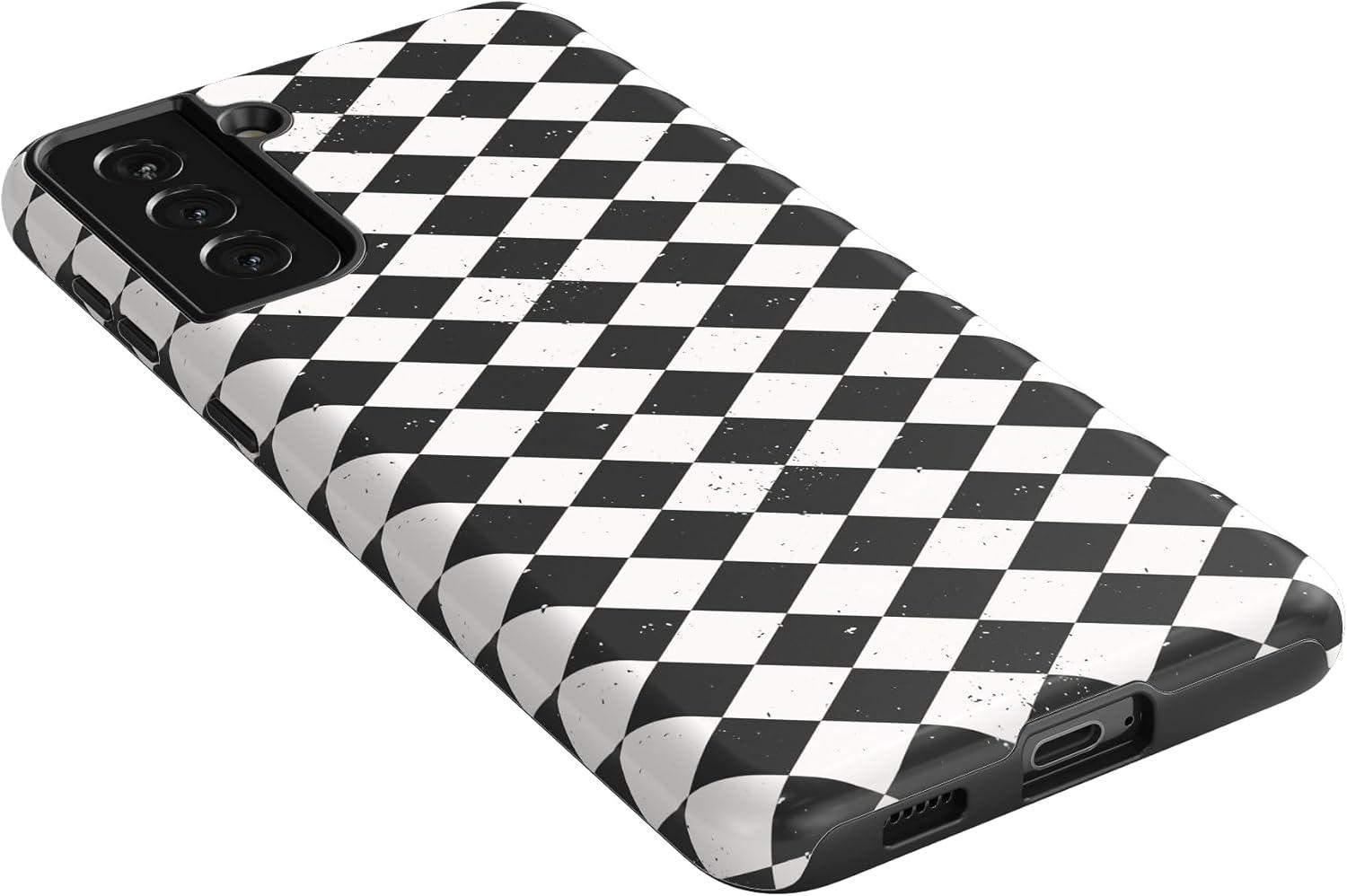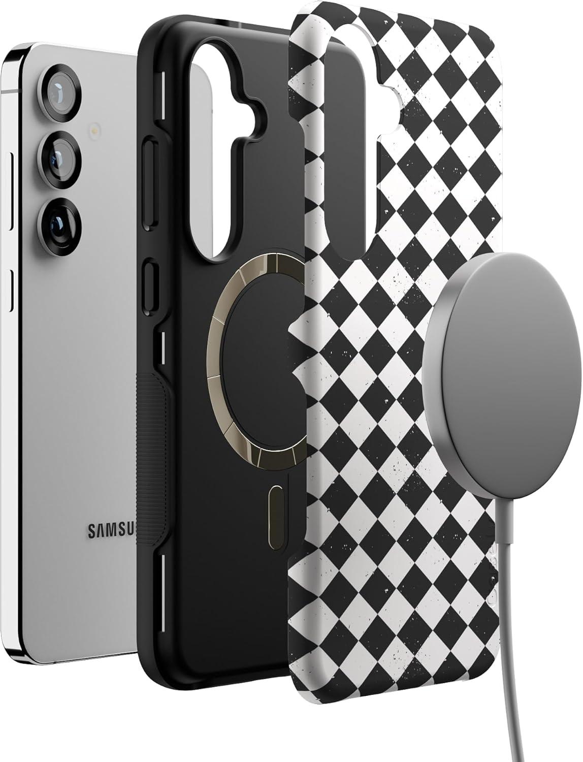 Casely Galaxy S24 Ultra Case | Such a Battie | Purple Bats | Essential Slim Dual-Layer Protective Design(Harlequin Salem Diamond | Black and White)