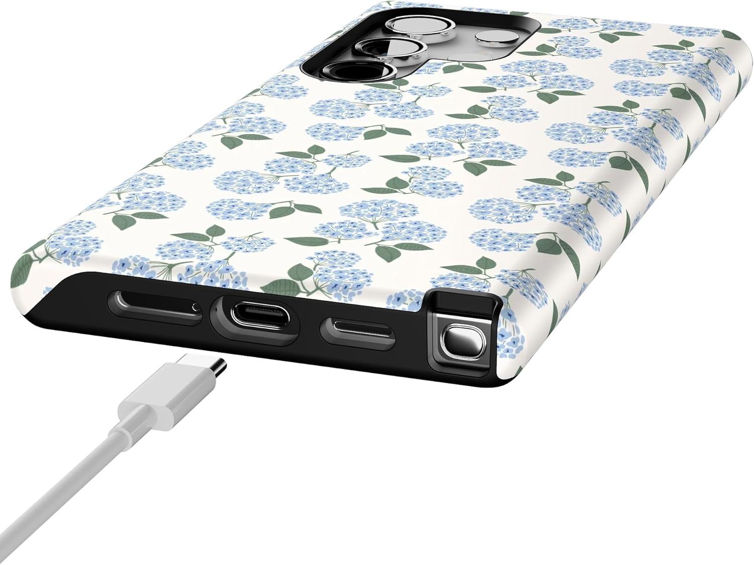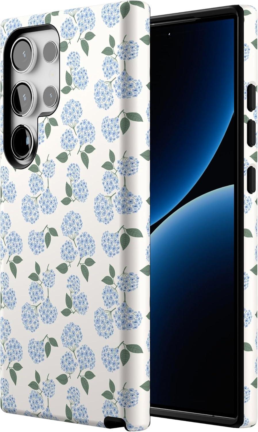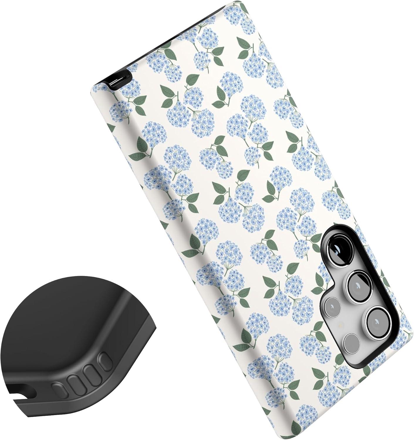 Casely Galaxy S24 Ultra Case | That’s Amore | Valentine’s | Essential Slim Dual-Layer Protective Design(Nantucket Cottage | Blue Hydrangea)