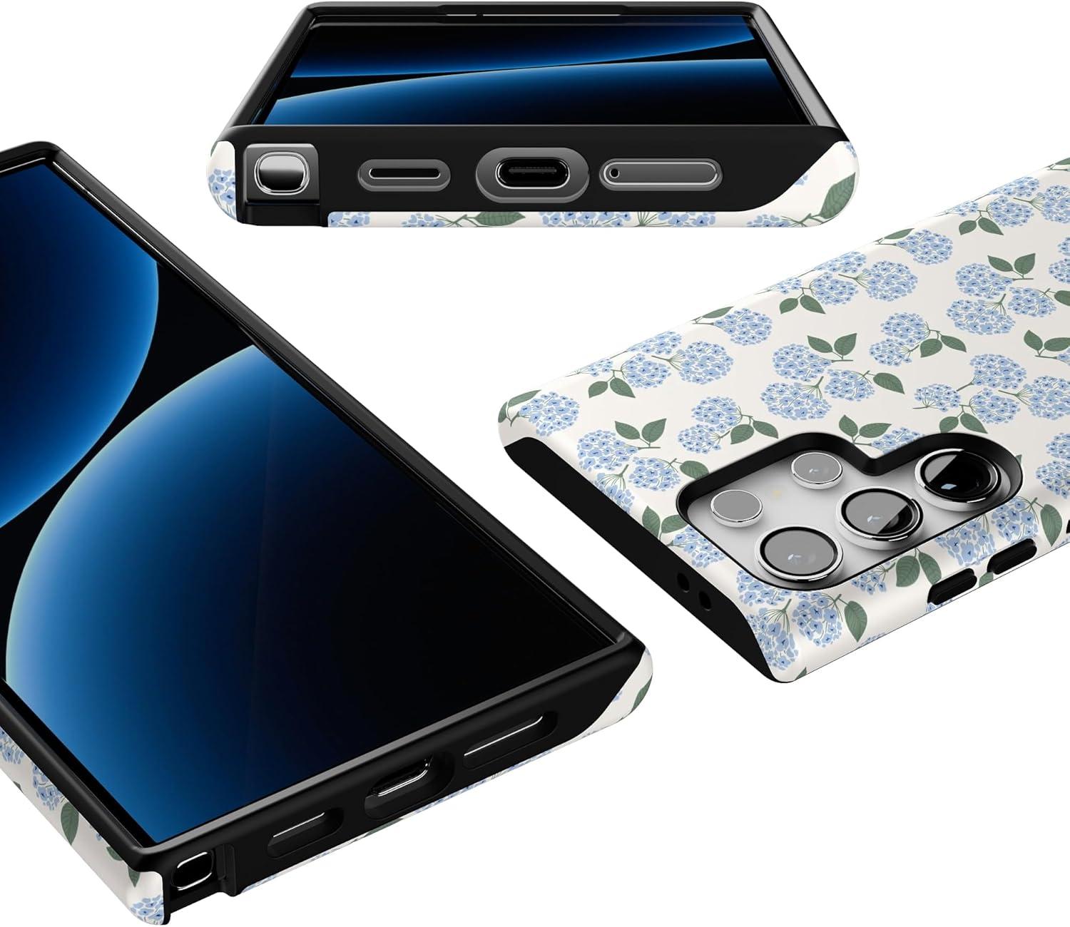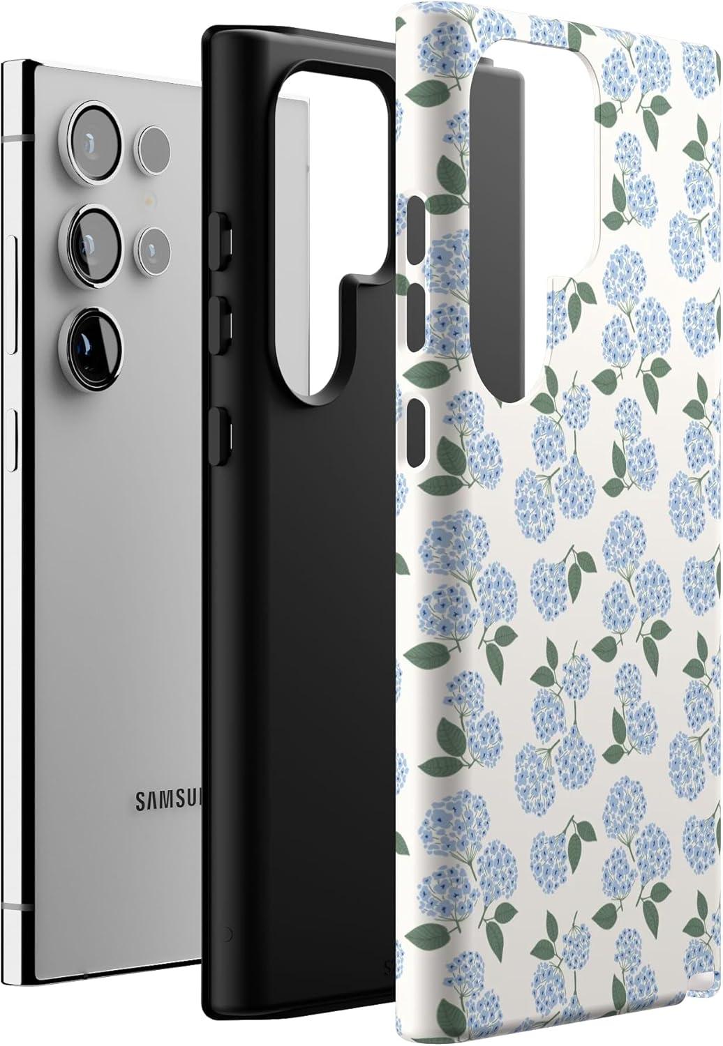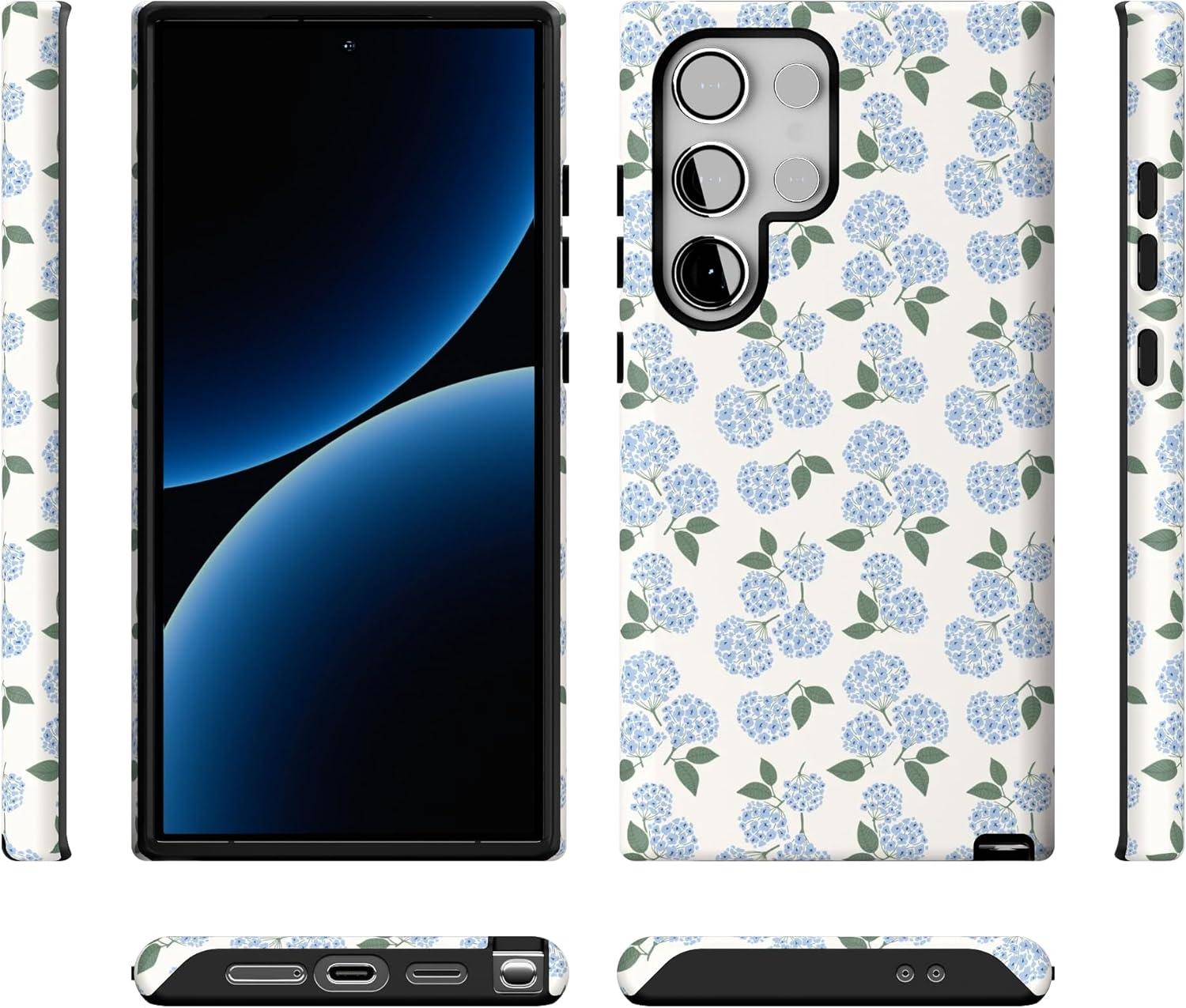 Casely Galaxy S24 Ultra Case | That’s Amore | Valentine’s | Essential Slim Dual-Layer Protective Design(Nantucket Cottage | Blue Hydrangea)