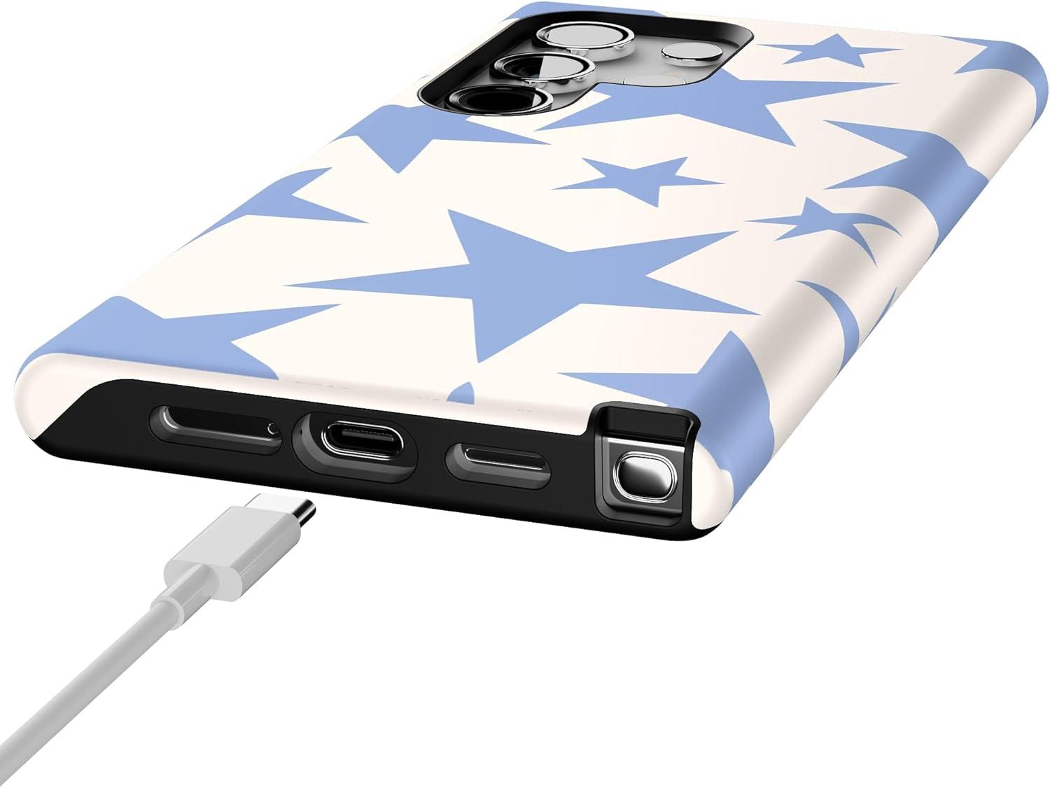 Casely Galaxy S24 Ultra Case | That’s Amore | Valentine’s | Essential Slim Dual-Layer Protective Design(Stars Align | Blue & White Stars)