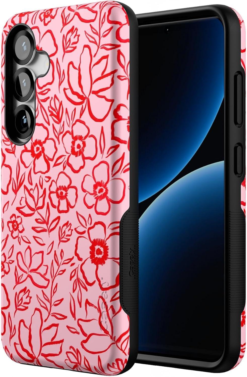 Casely Galaxy S25 Case | Hanging Around | Potted Plants Floral | Bold Protective Design | Compatible with MagSafe(Blush Garden | Floral Doodle)