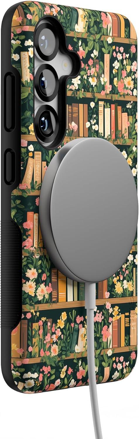 Casely Galaxy S25 Case | Hanging Around | Potted Plants Floral | Bold Protective Design | Compatible with MagSafe(Book Nook | Floral Library)