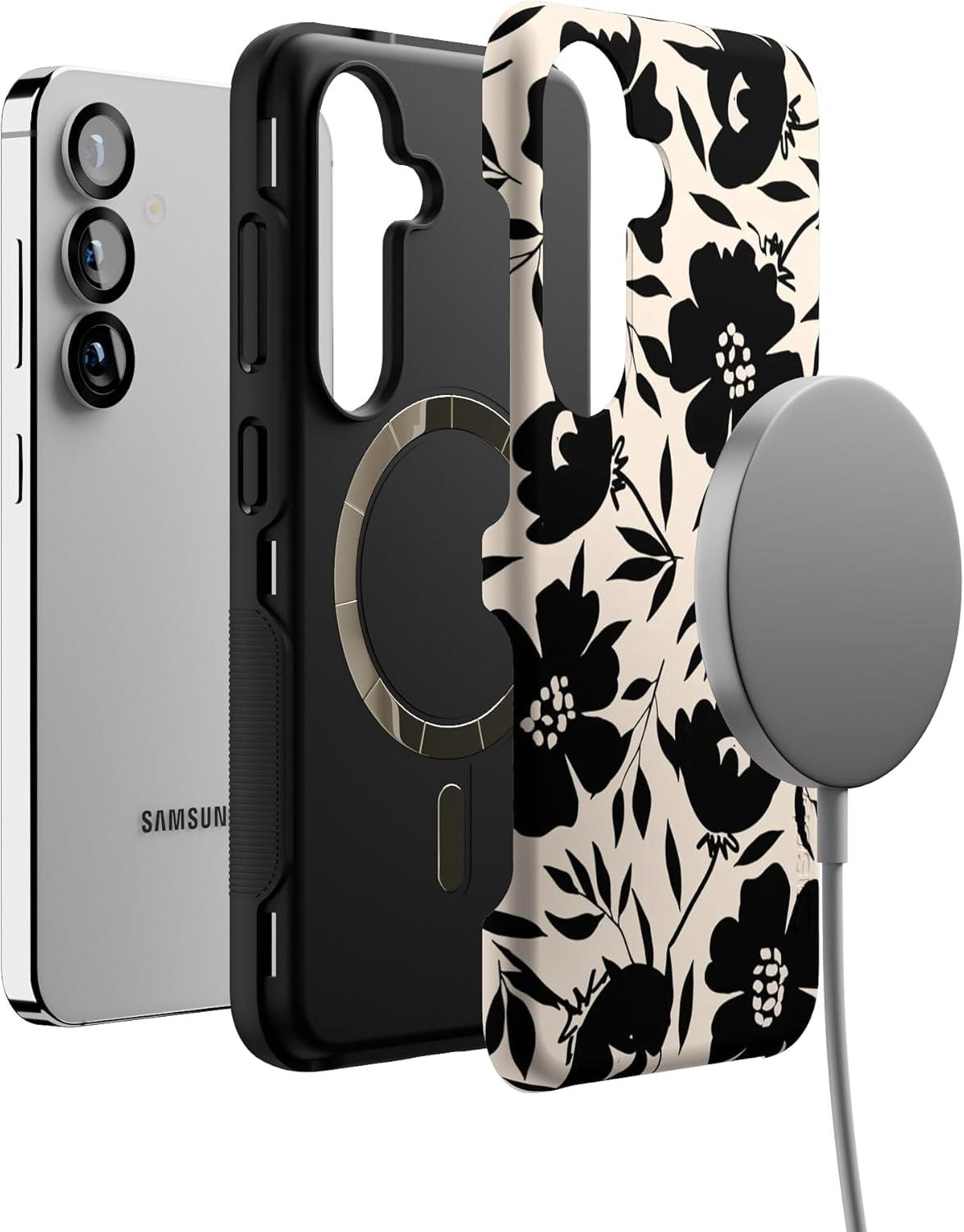 Casely Galaxy S25 Case | Hanging Around | Potted Plants Floral | Bold Protective Design | Compatible with MagSafe(Dark Fantasy | Contrast Floral)