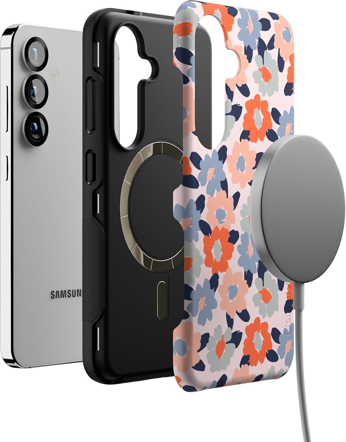 Casely Galaxy S25 Case | Hanging Around | Potted Plants Floral | Bold Protective Design | Compatible with MagSafe(Field of Flowers | Pastel Floral)