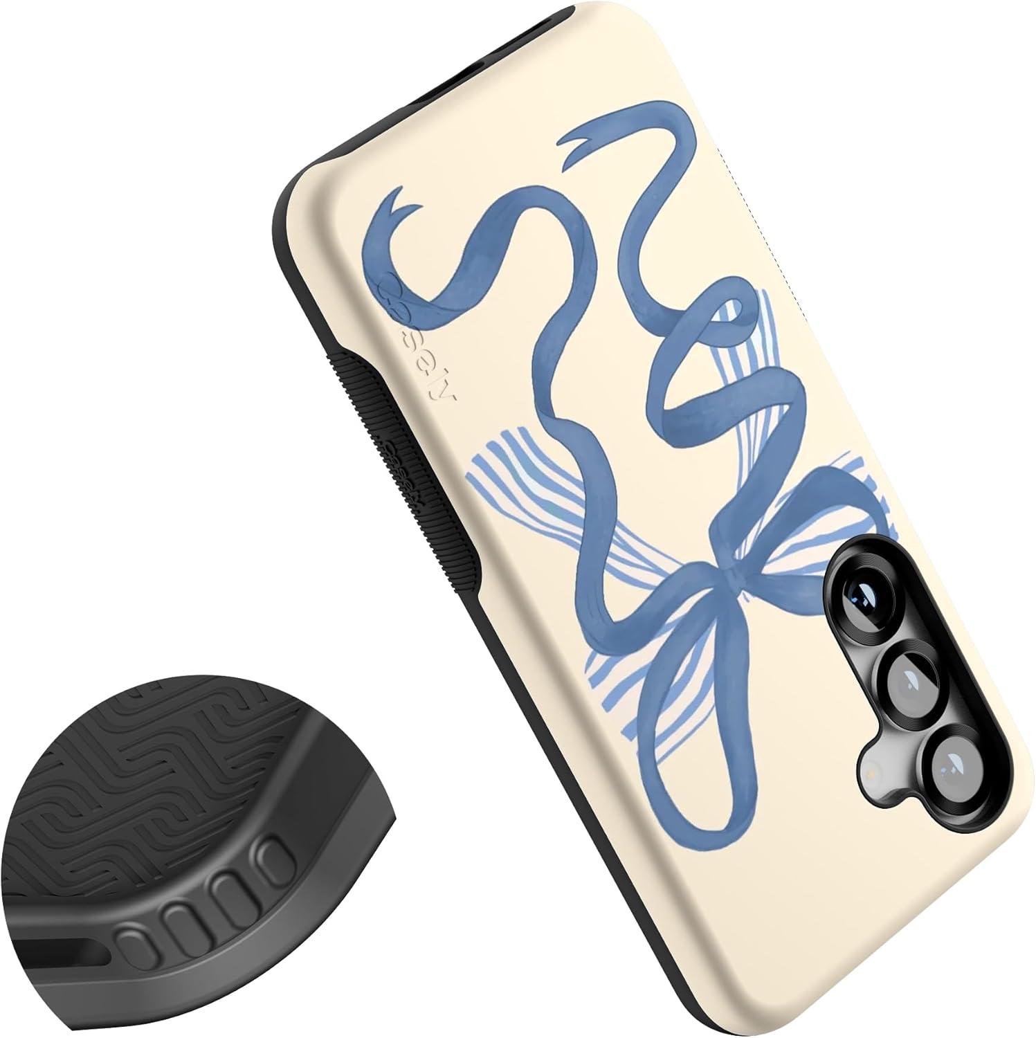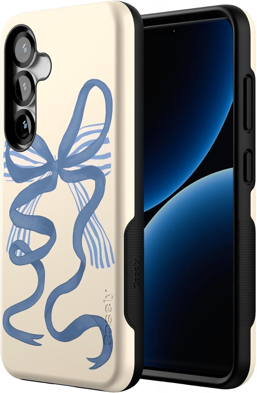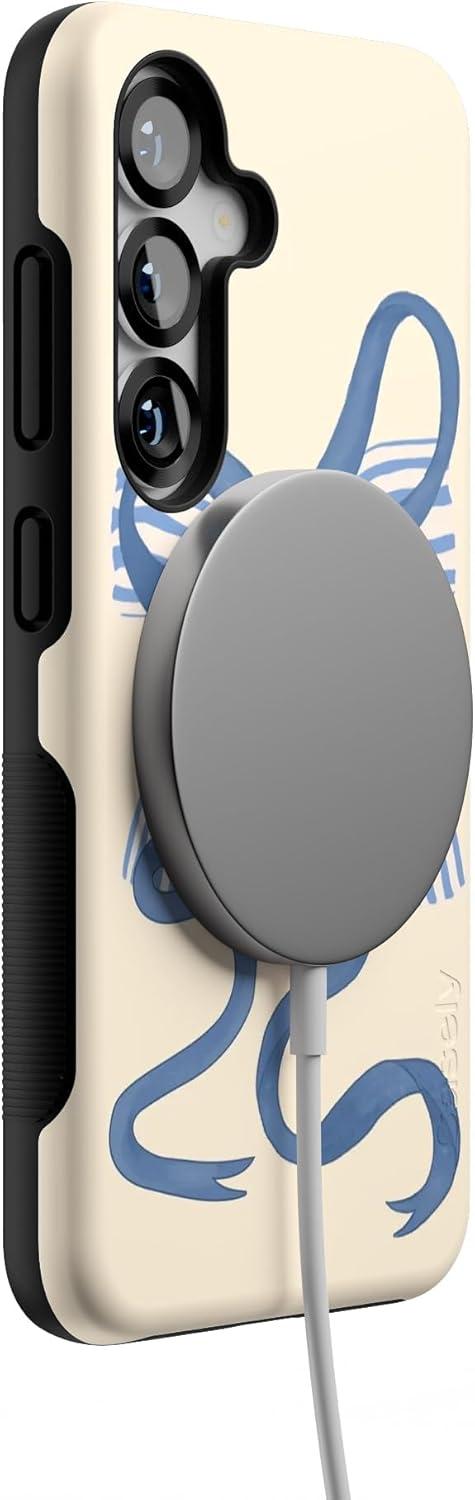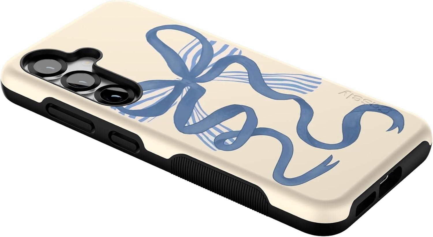 Casely Galaxy S25 Case | Hanging Around | Potted Plants Floral | Bold Protective Design | Compatible with MagSafe(Heartstrings | Blue Bow)