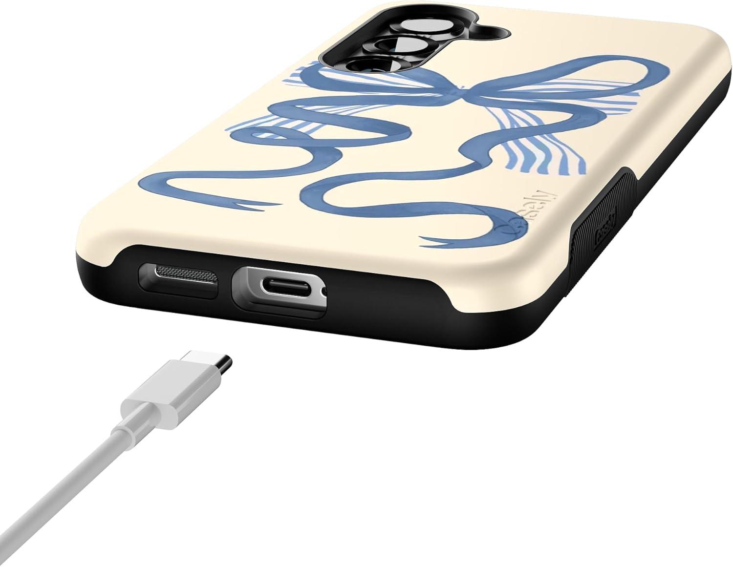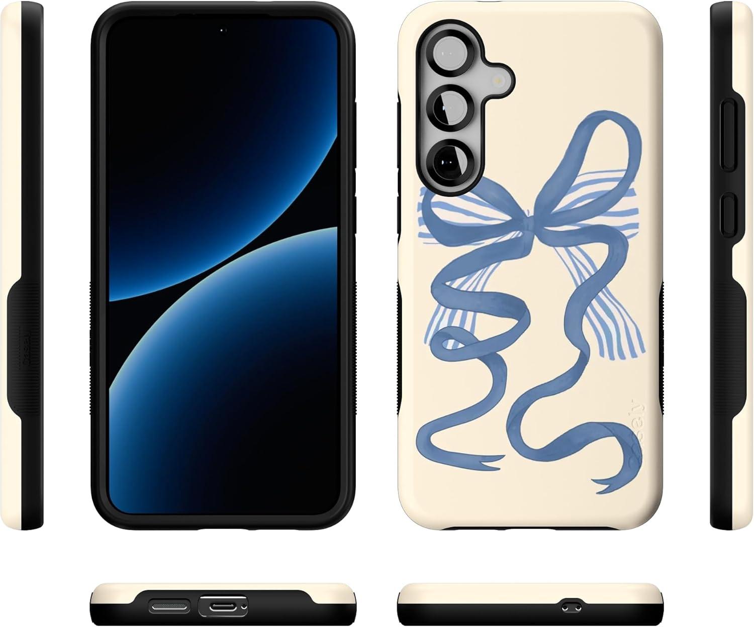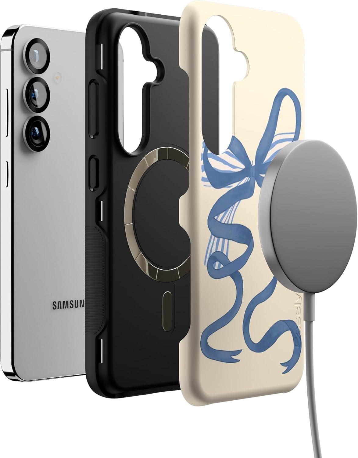 Casely Galaxy S25 Case | Hanging Around | Potted Plants Floral | Bold Protective Design | Compatible with MagSafe(Heartstrings | Blue Bow)