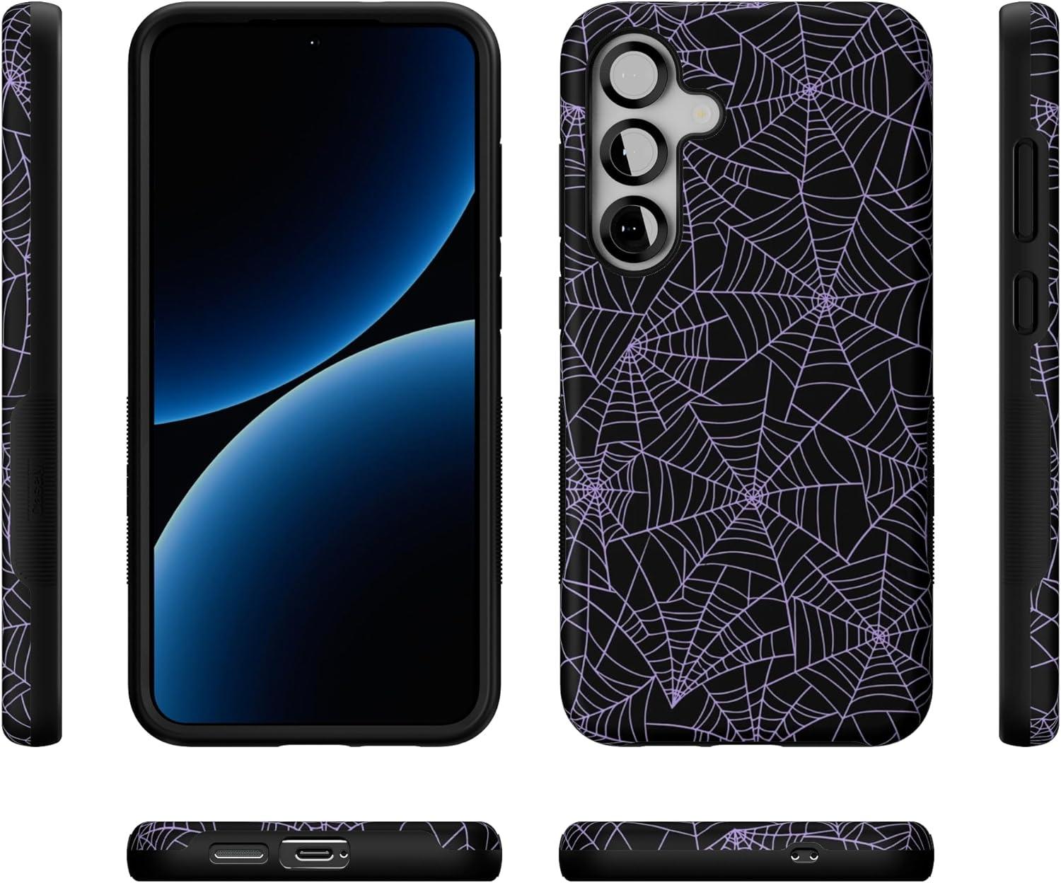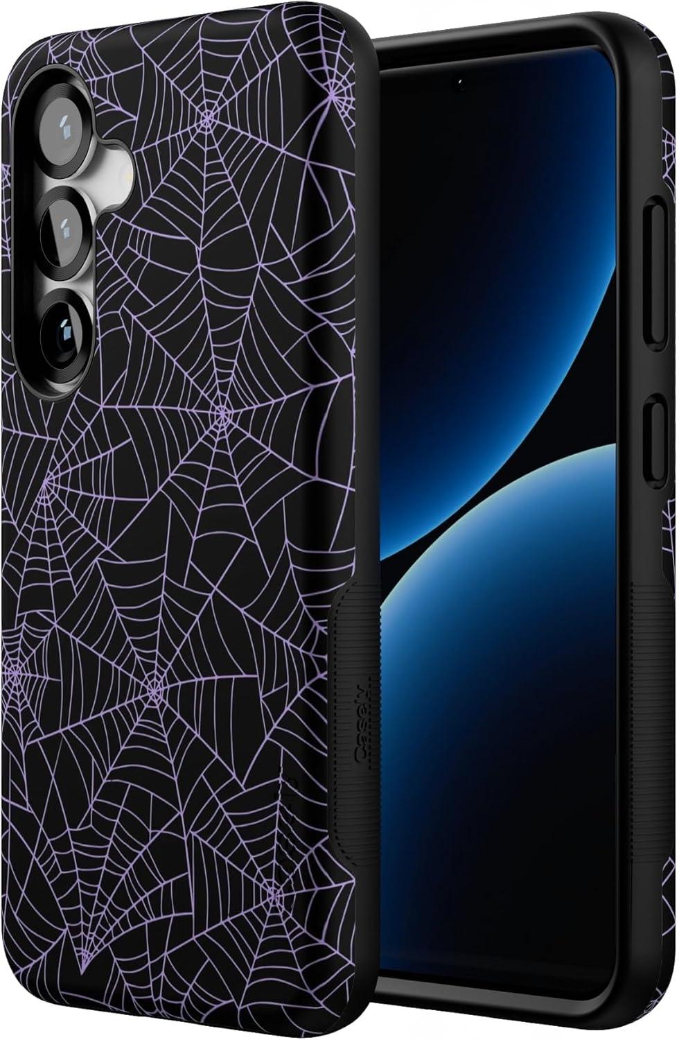 Casely Galaxy S25 Case | Hanging Around | Potted Plants Floral | Bold Protective Design | Compatible with MagSafe(Midnight Web | Spider Web)