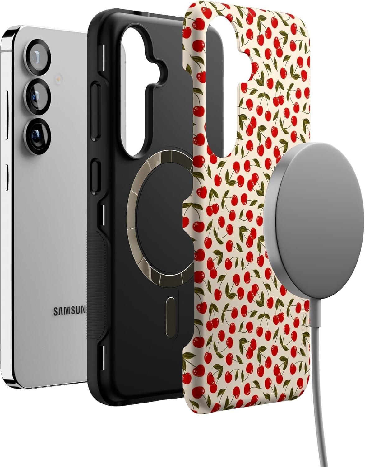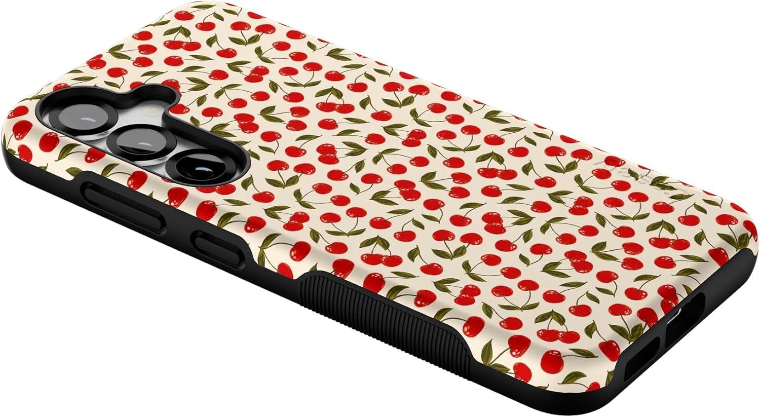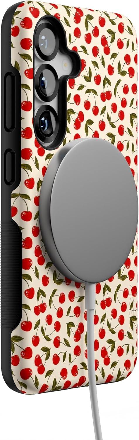 Casely Galaxy S25 Case | Oasis | Pura Vida Floral | Compatible with MagSafe | Bold Protective Design(Cherry on Top | Red Cherries)