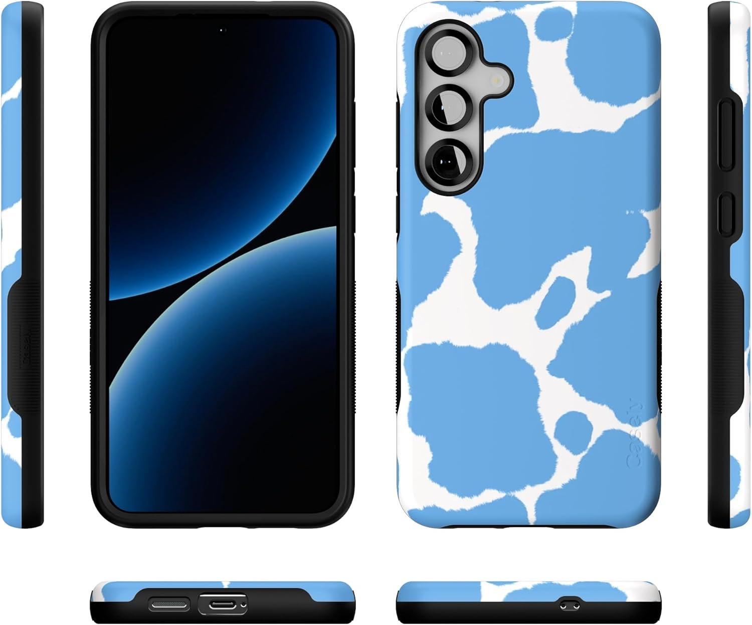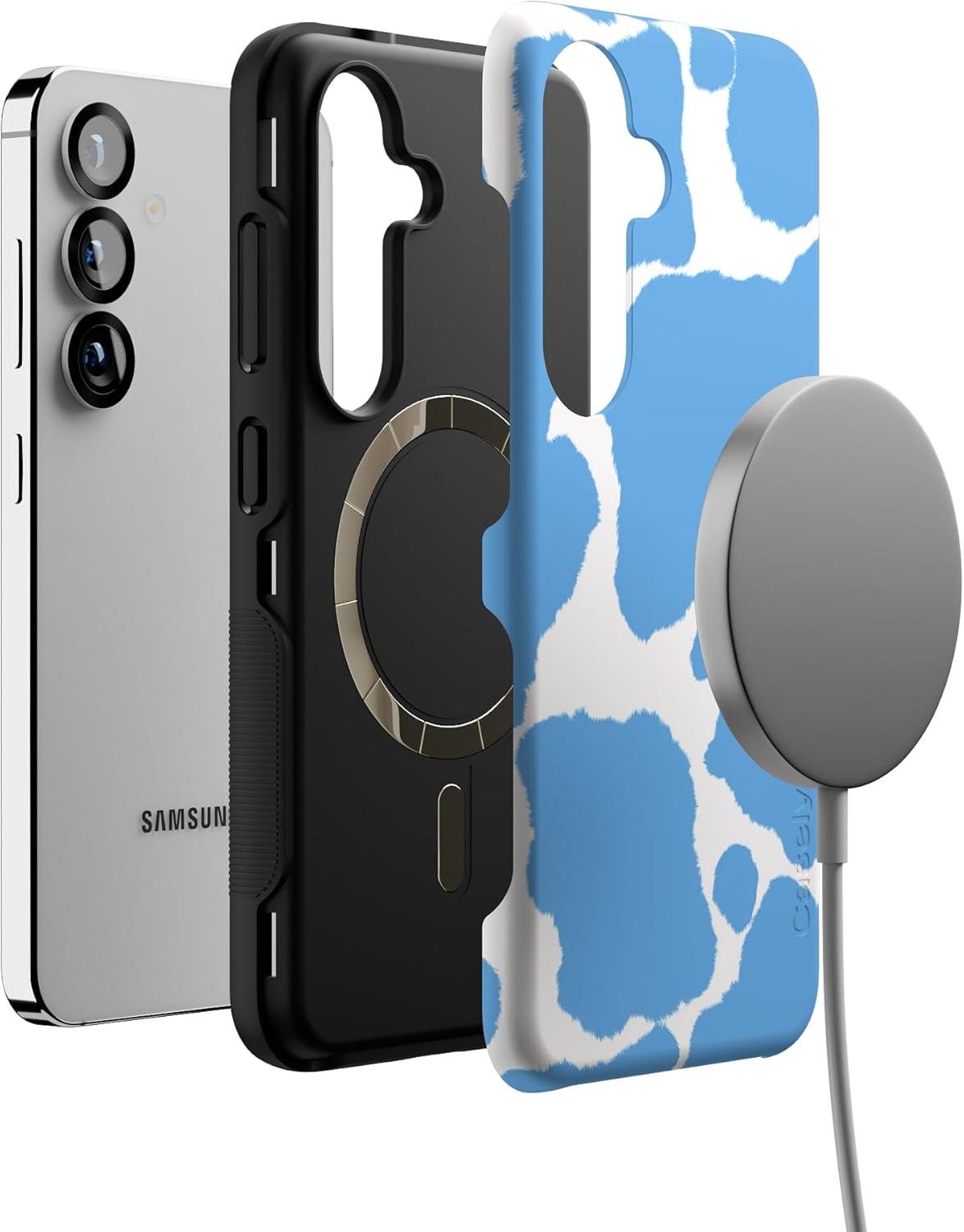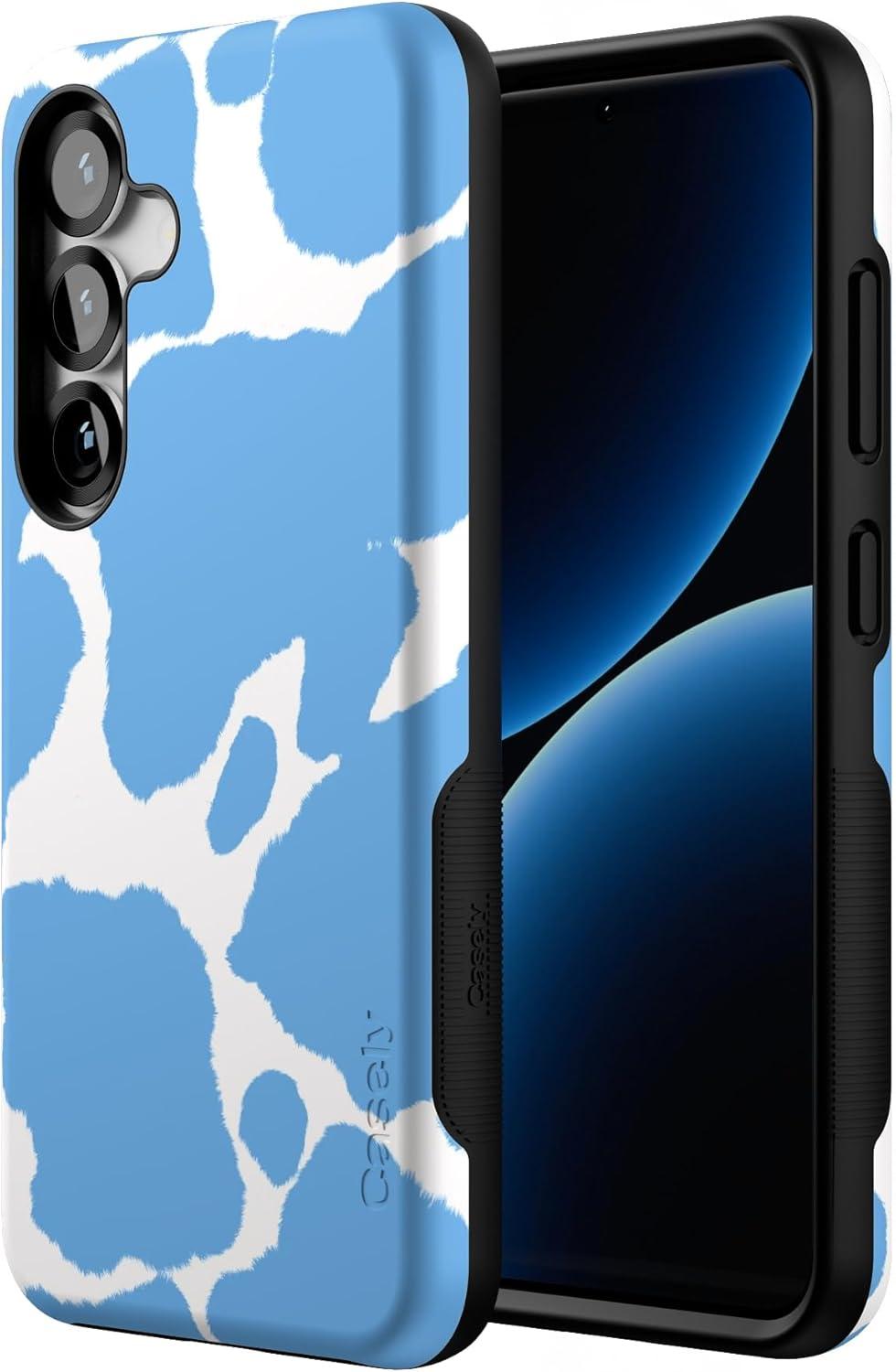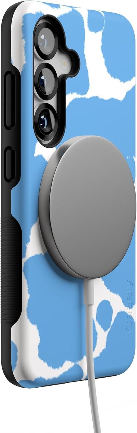 Casely Galaxy S25 Case | Oasis | Pura Vida Floral | Compatible with MagSafe | Bold Protective Design(Current MOOd | Light Blue Cow Print)