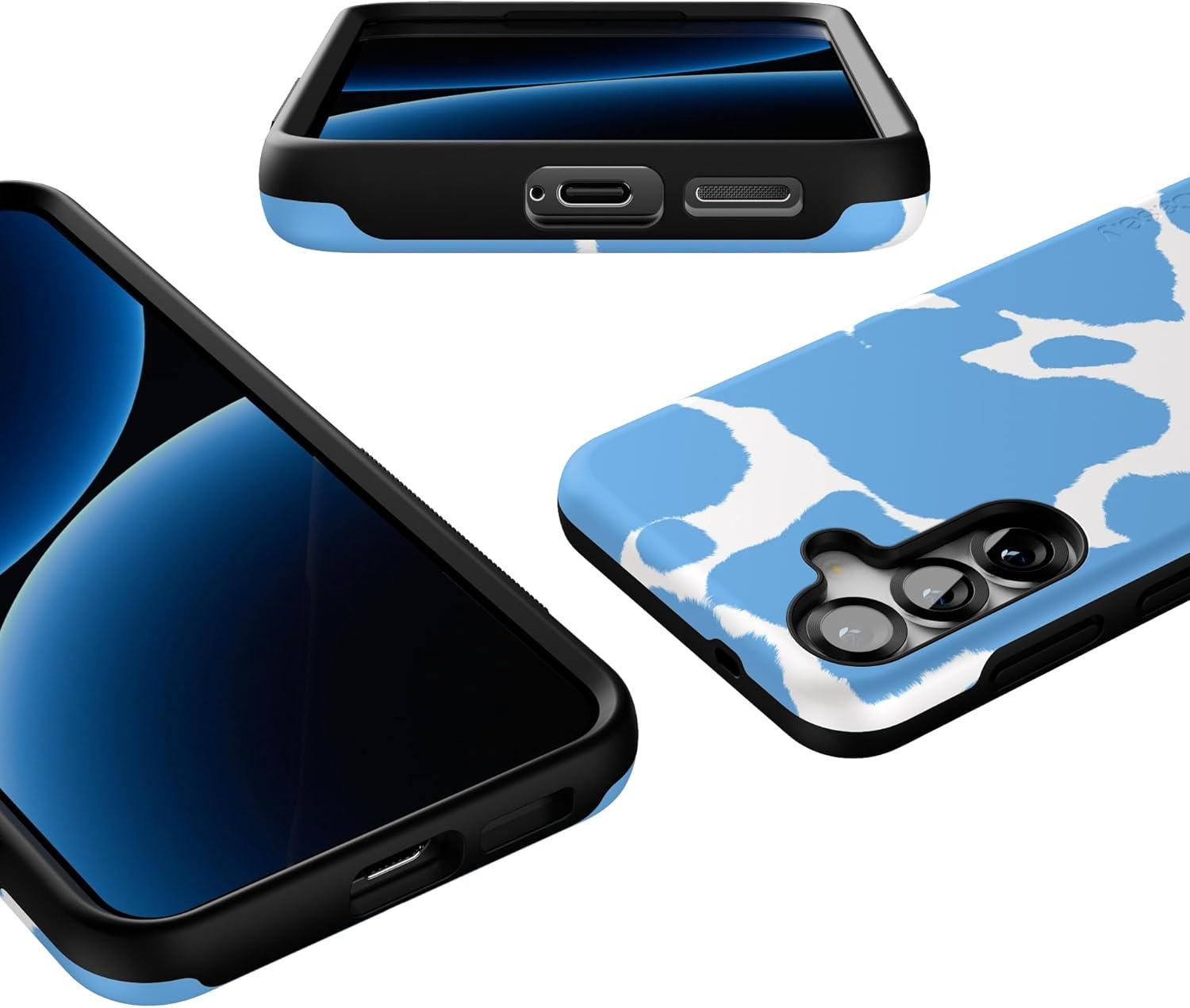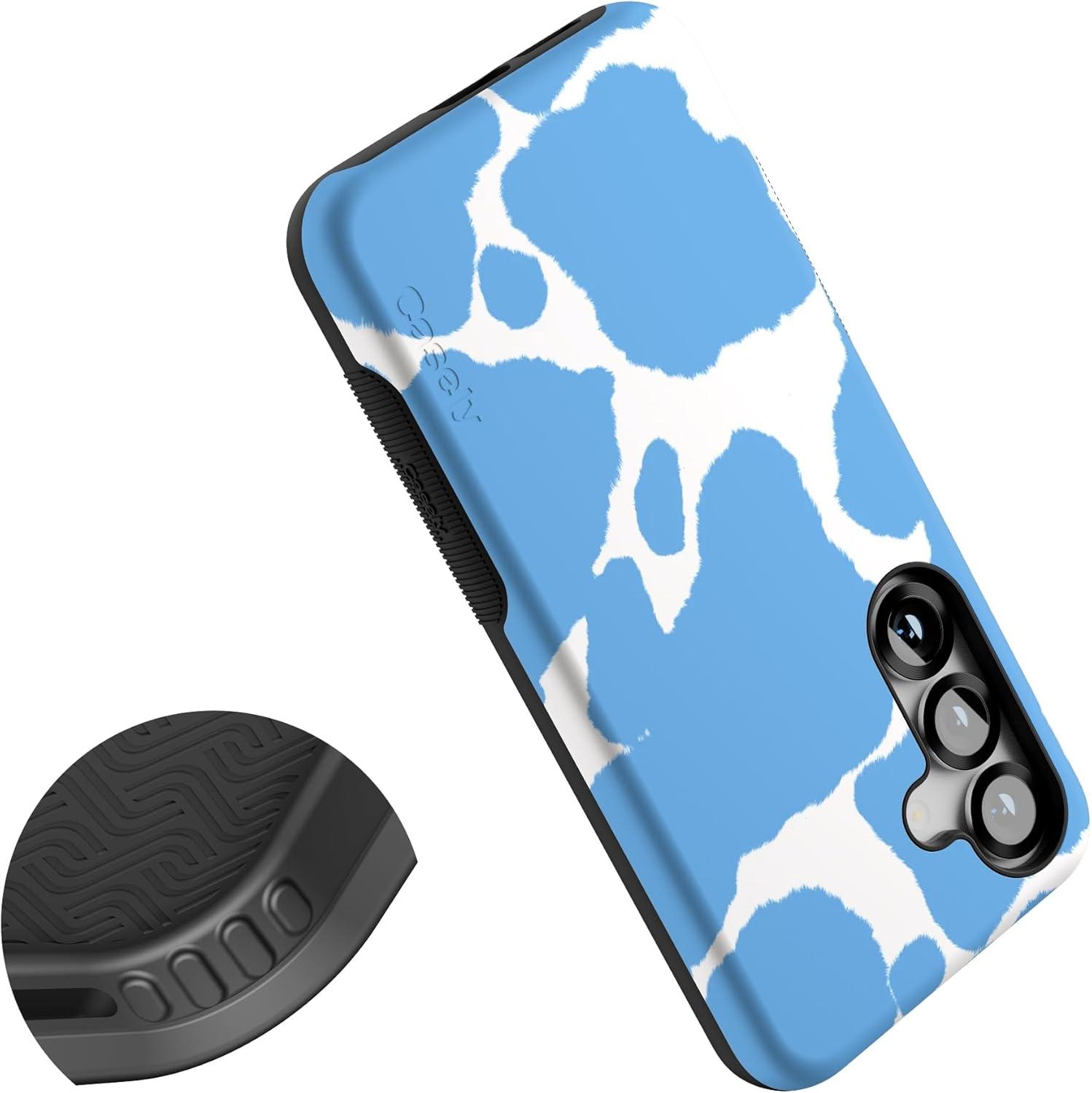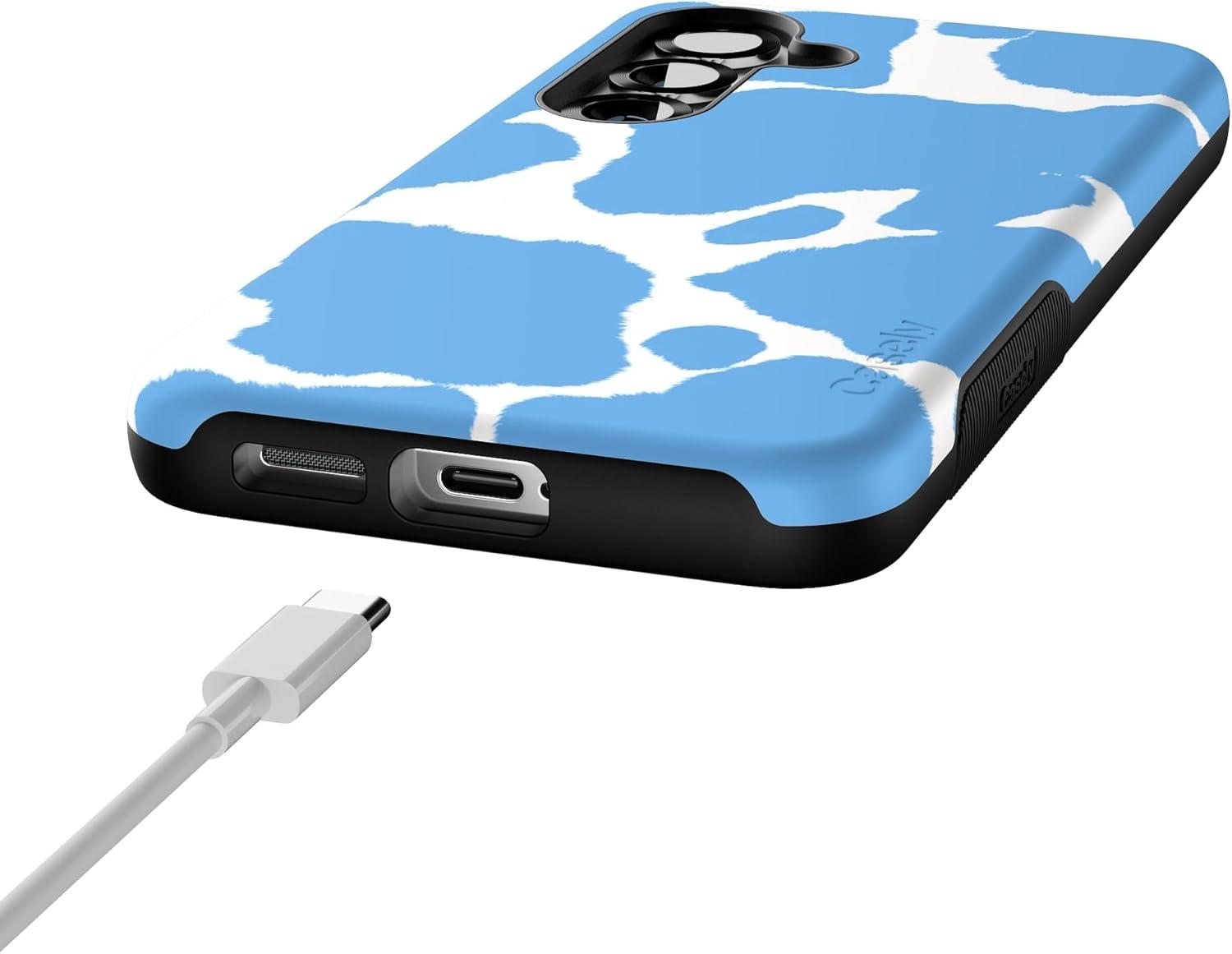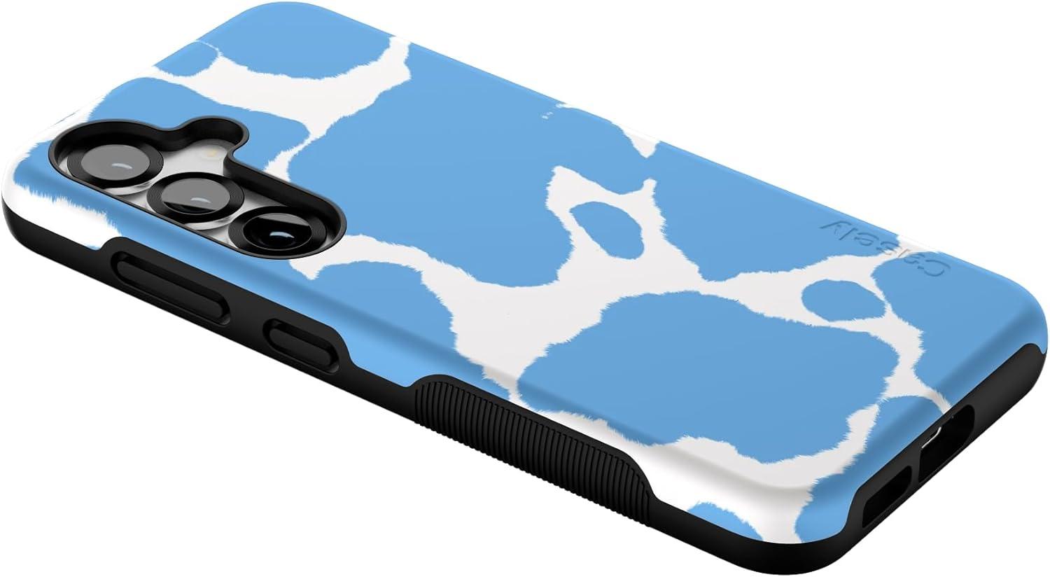Casely Galaxy S25 Case | Oasis | Pura Vida Floral | Compatible with MagSafe | Bold Protective Design(Current MOOd | Light Blue Cow Print)