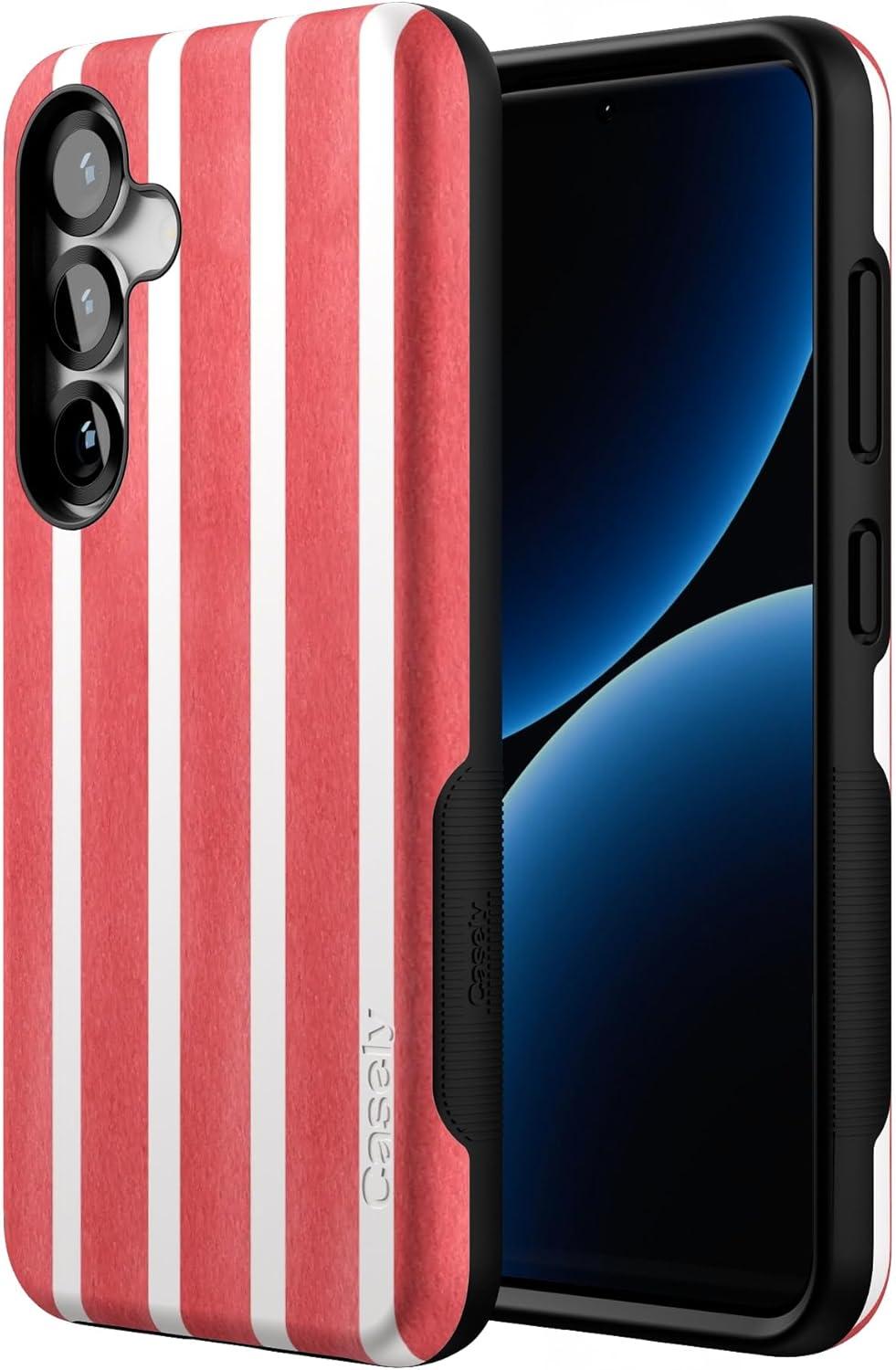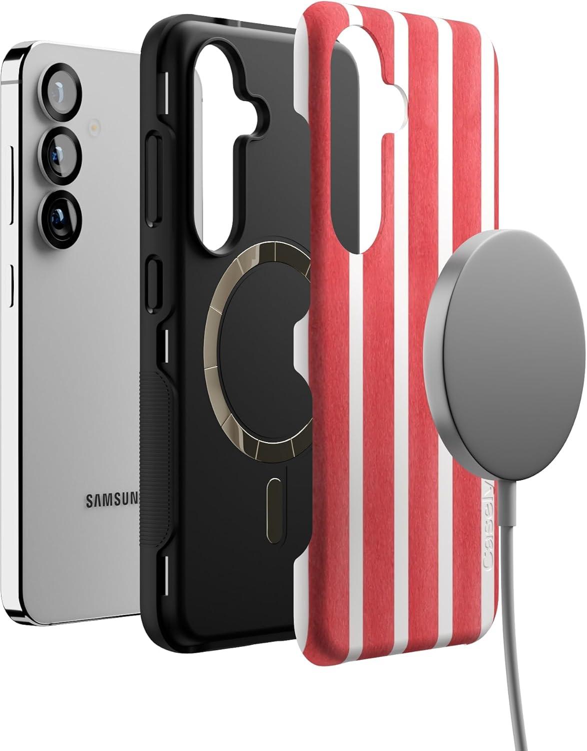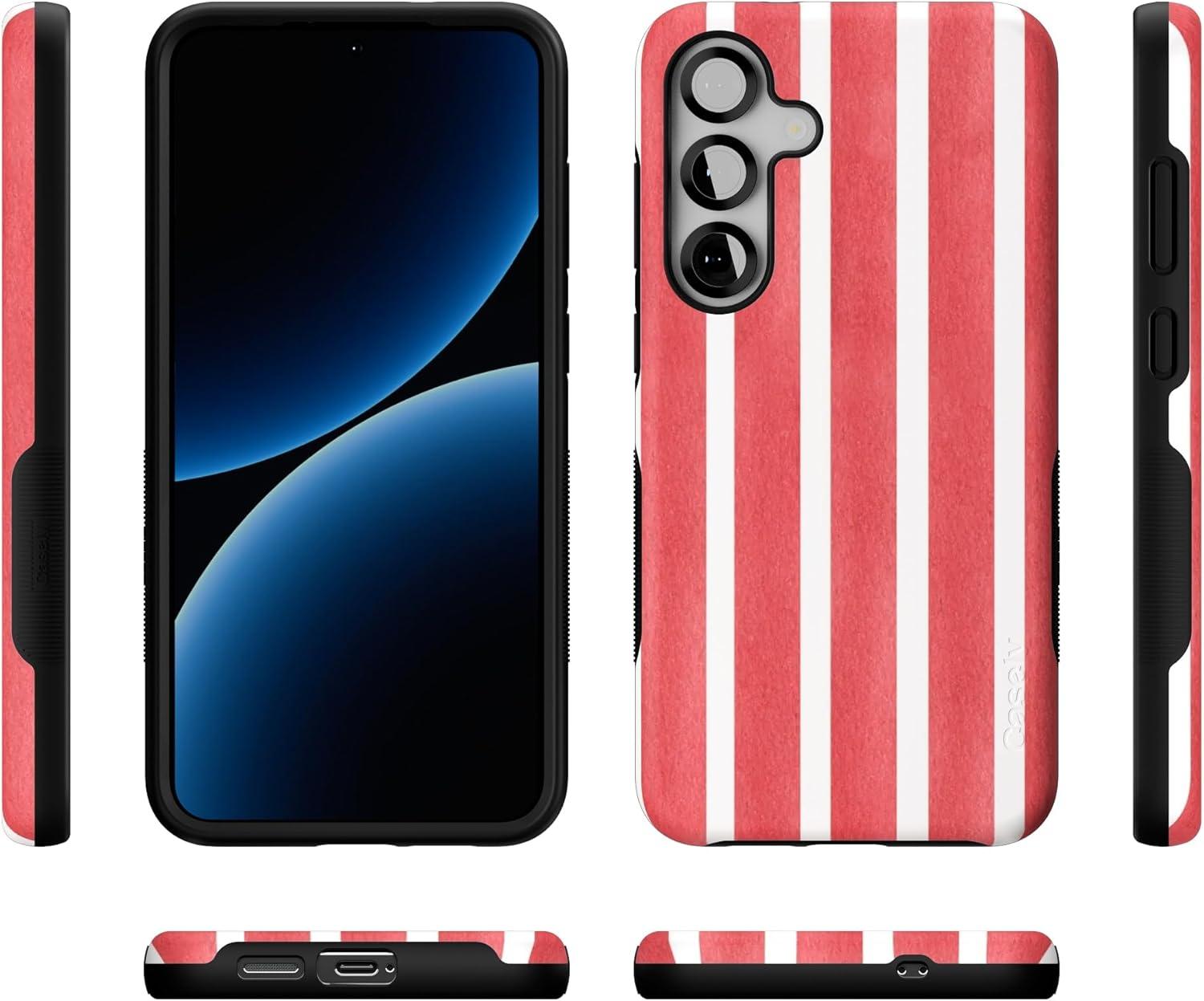 Casely Galaxy S25 Case | Oasis | Pura Vida Floral | Compatible with MagSafe | Bold Protective Design(East Coast Summer | Red Stripes)