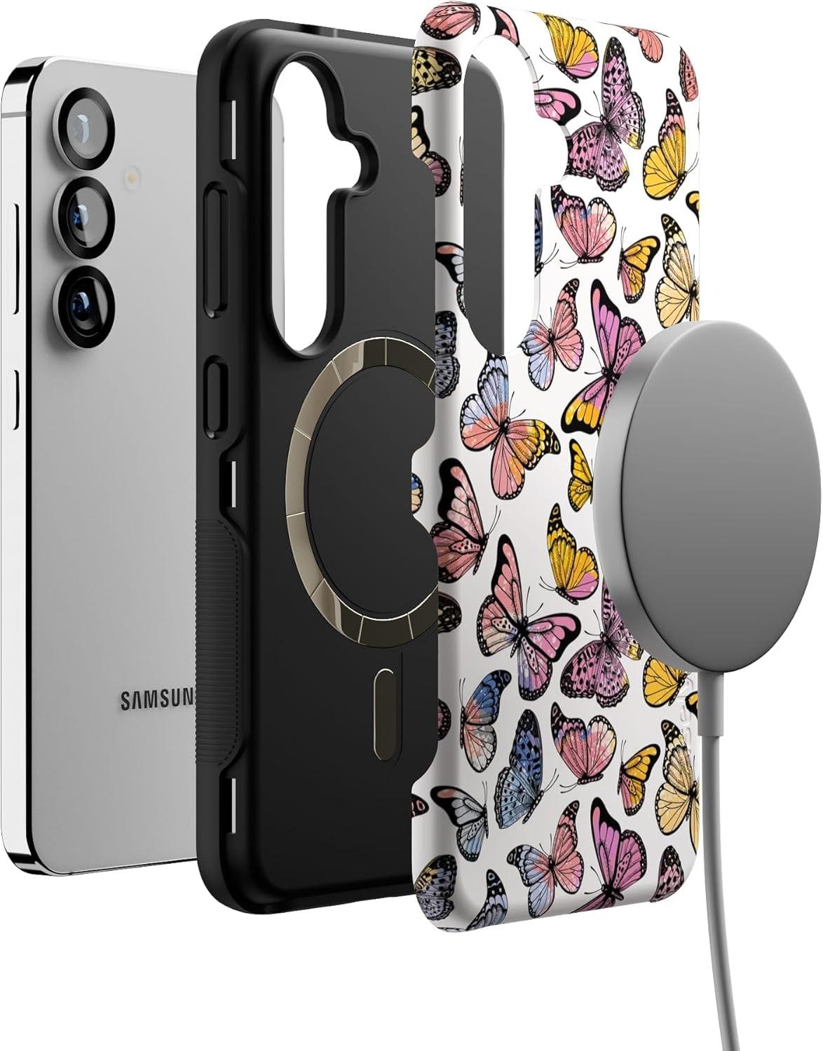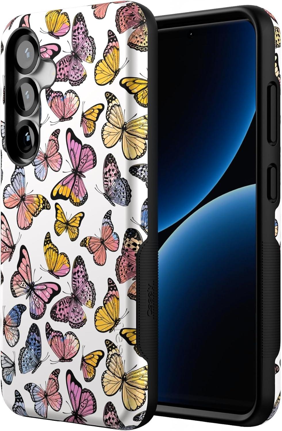 Casely Galaxy S25 Case | Oasis | Pura Vida Floral | Compatible with MagSafe | Bold Protective Design(Free Spirit | Rainbow Butterfly)