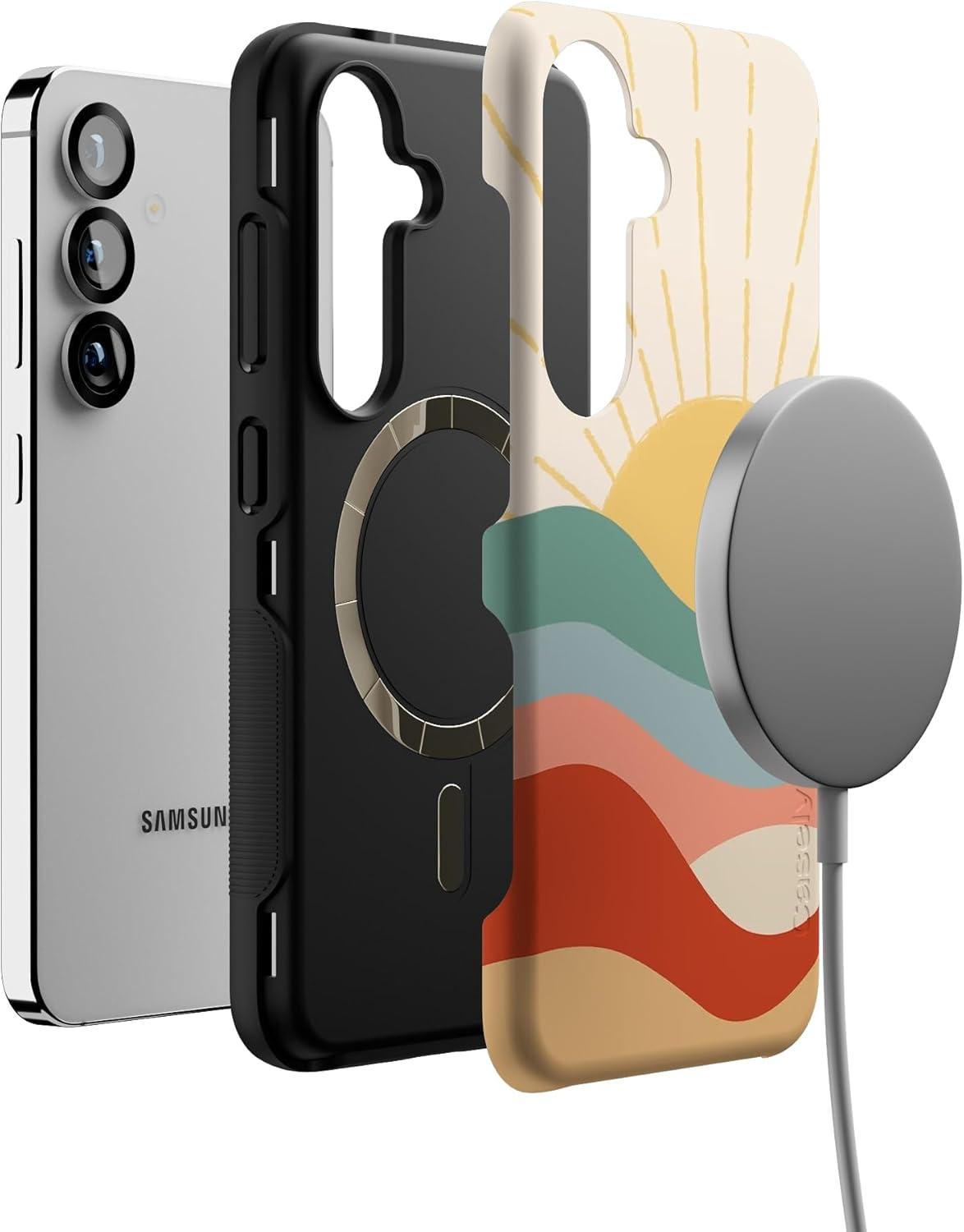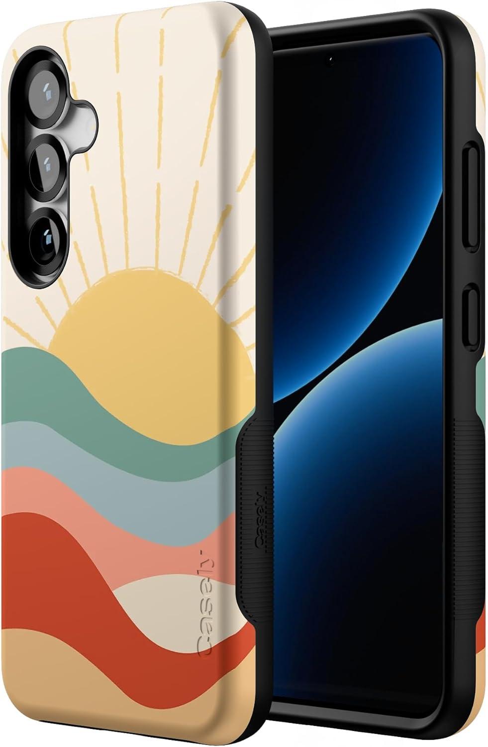 Casely Galaxy S25 Case | Oasis | Pura Vida Floral | Compatible with MagSafe | Bold Protective Design(Here Comes the Sun | Colorblock Sunset)