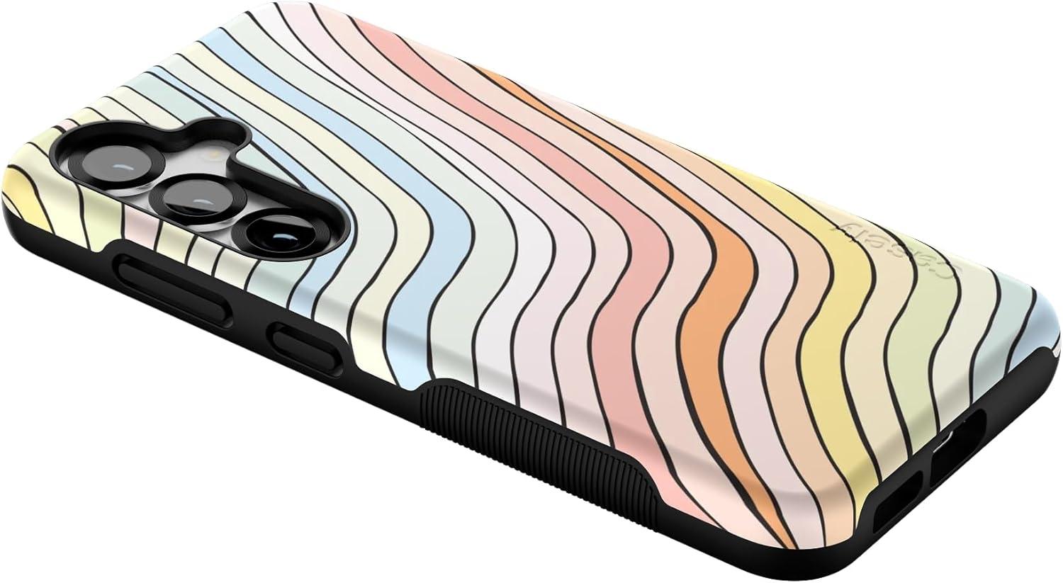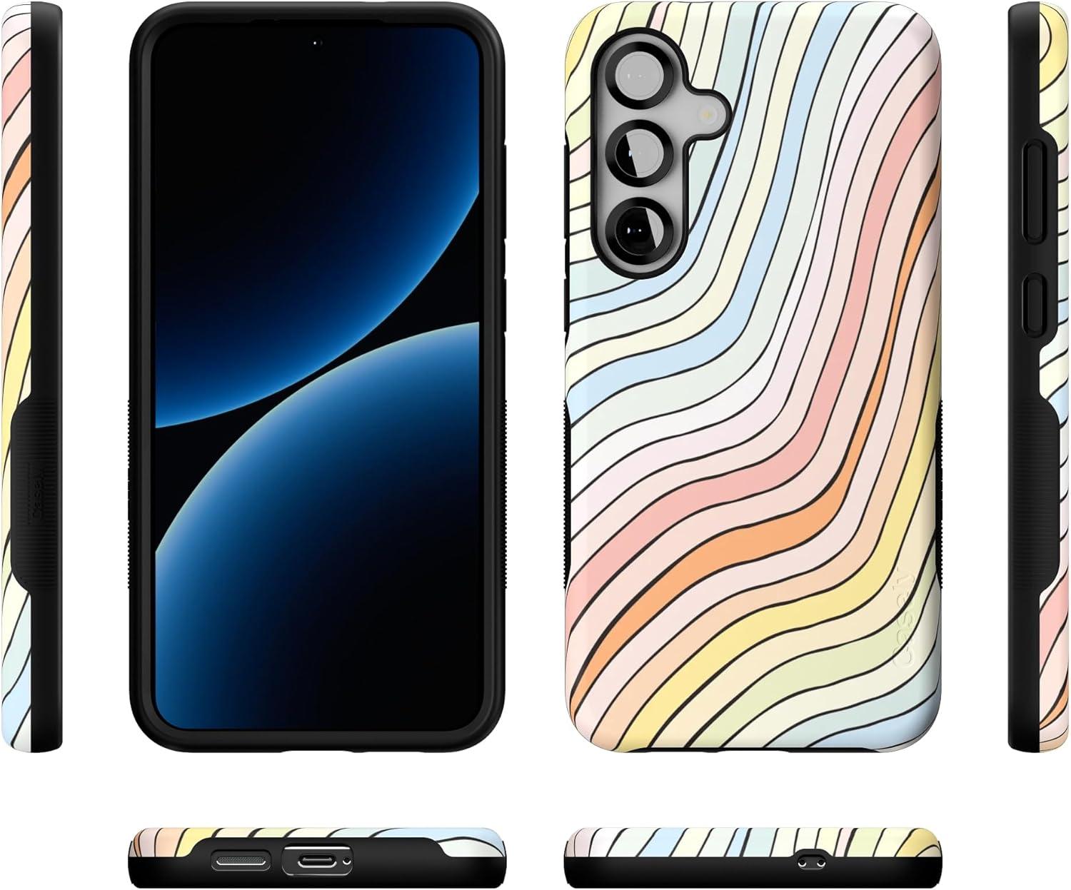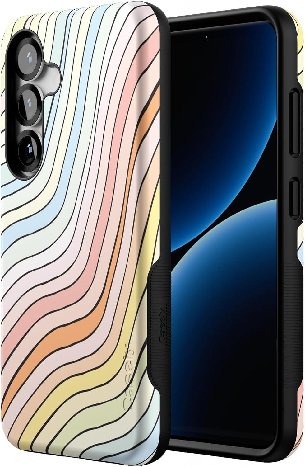 Casely Galaxy S25 Case | Oasis | Pura Vida Floral | Compatible with MagSafe | Bold Protective Design(Ride The Wave | Pastel Rainbow Lined)