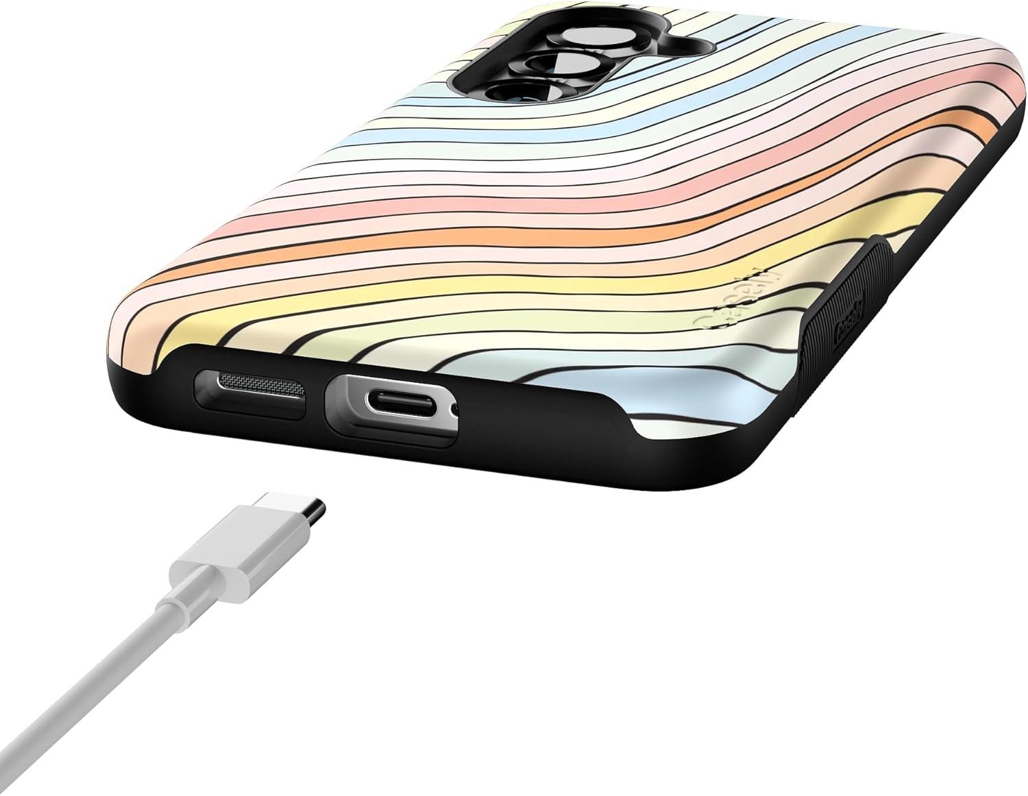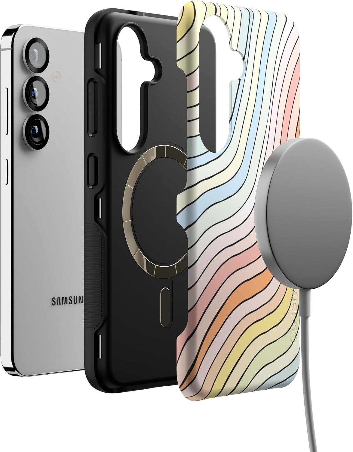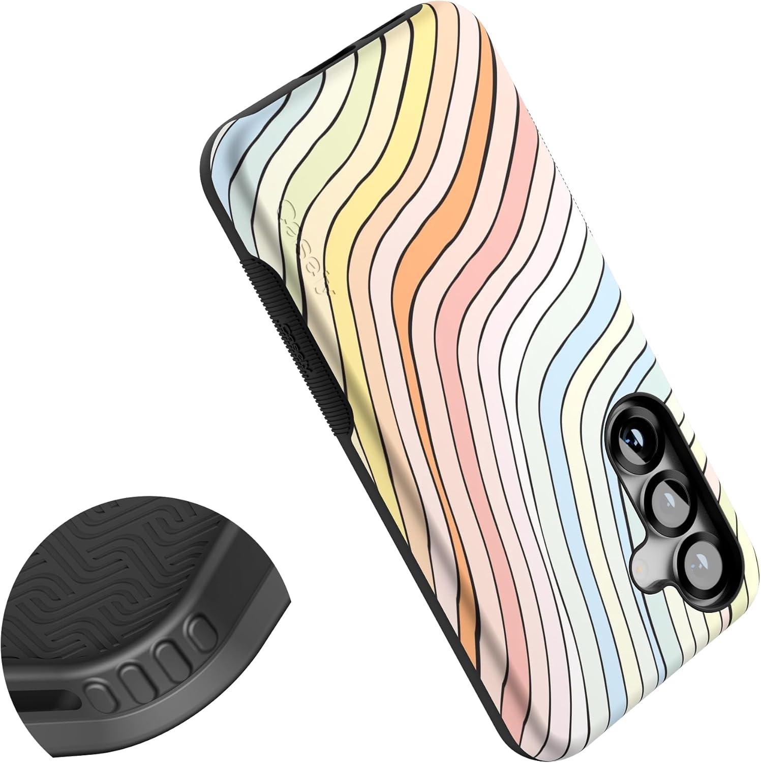Casely Galaxy S25 Case | Oasis | Pura Vida Floral | Compatible with MagSafe | Bold Protective Design(Ride The Wave | Pastel Rainbow Lined)