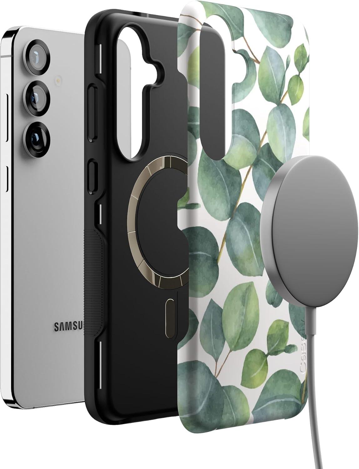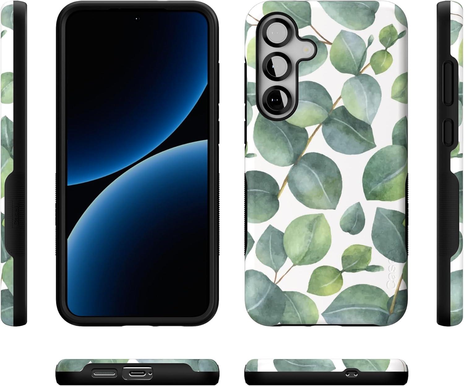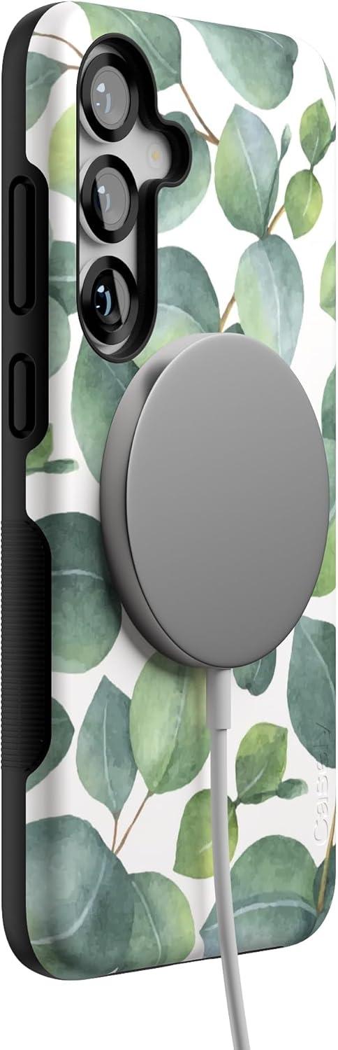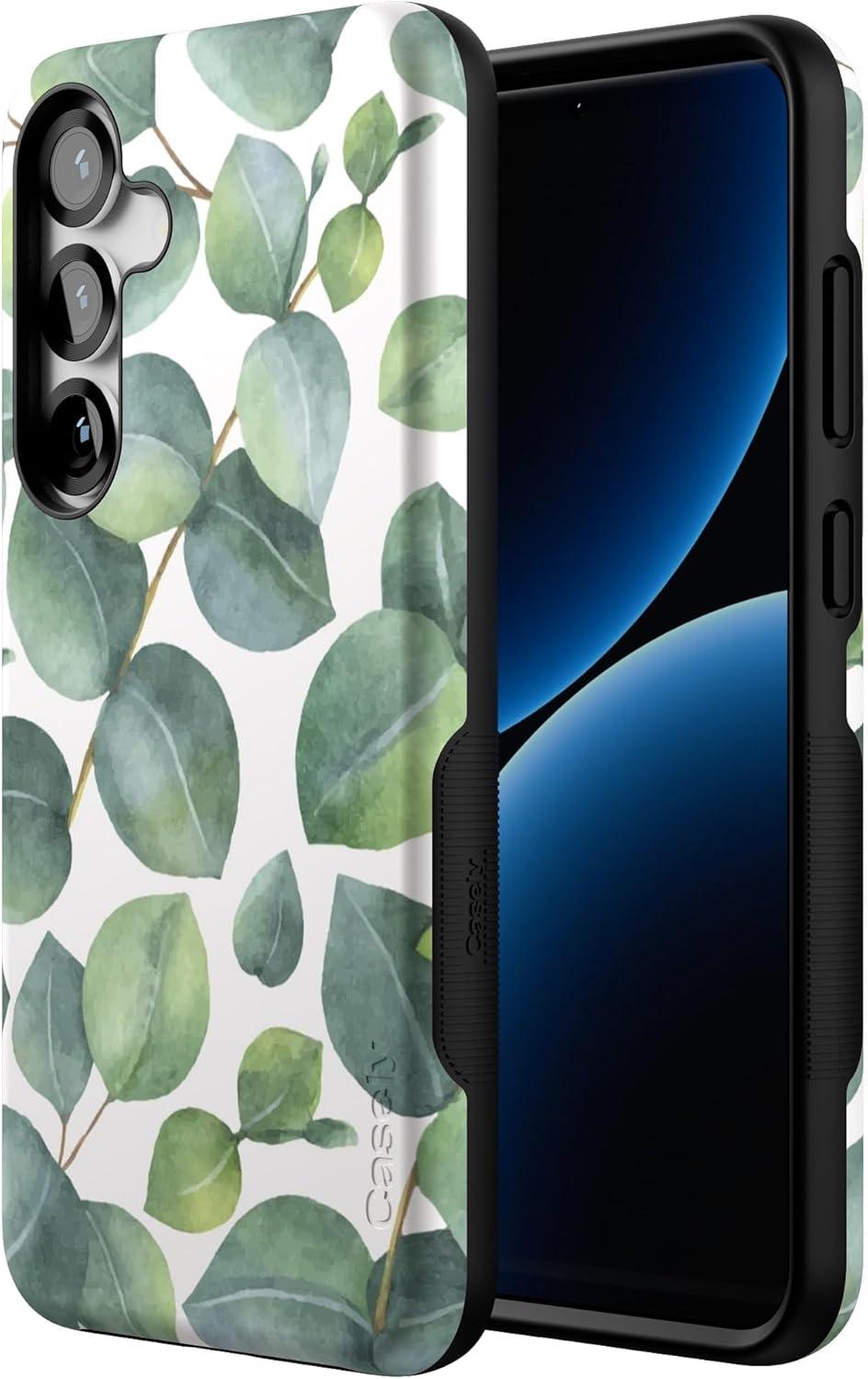 Casely Galaxy S25 Plus Case | Lucky You | Shamrock | Bold Protective Design | Compatible with MagSafe(Leaf Me Alone | Green Floral Print)