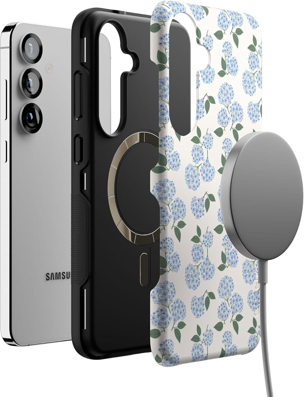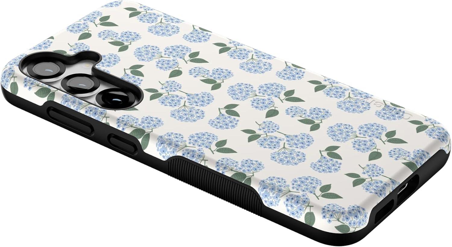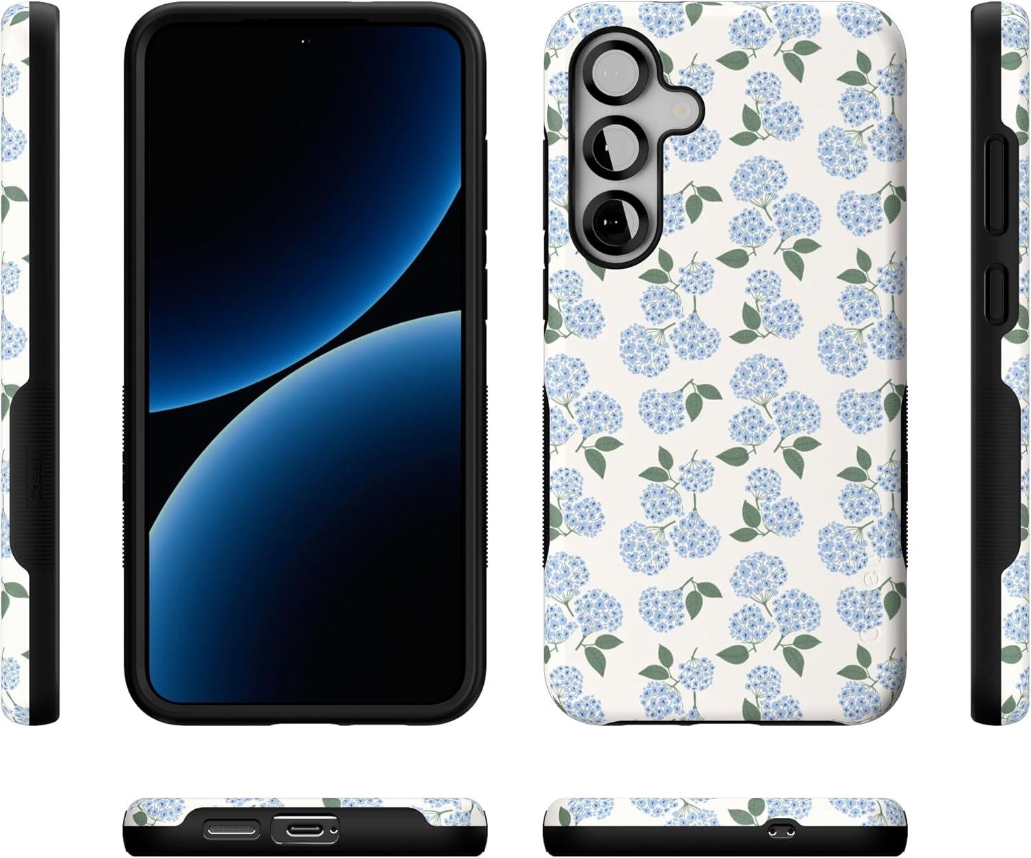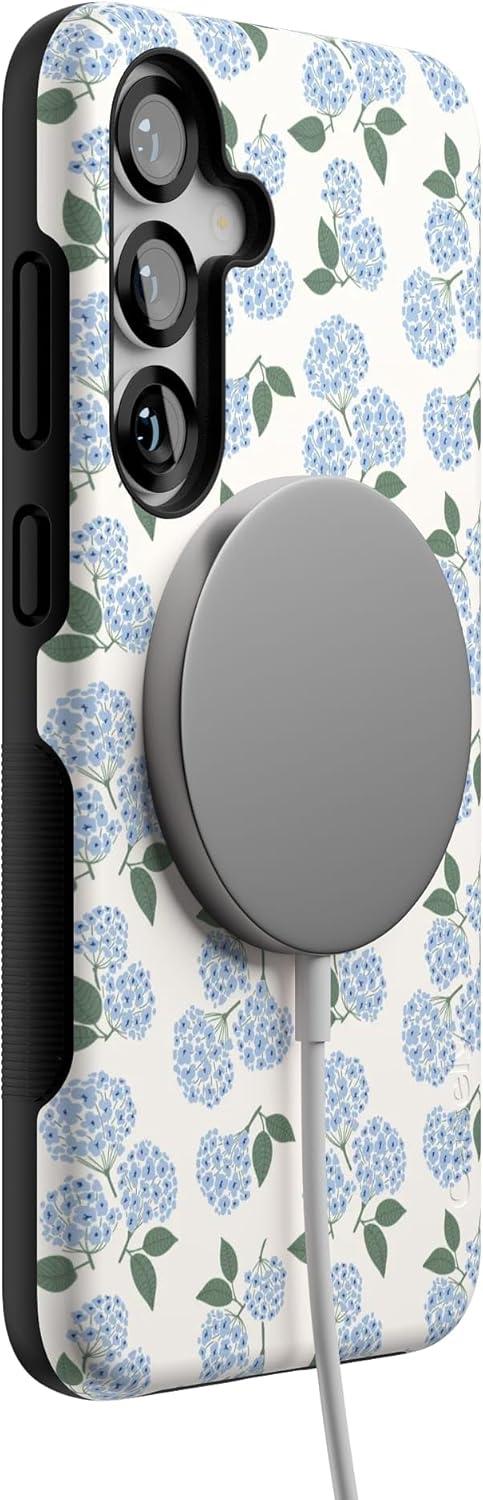 Casely Galaxy S25 Plus Case | Lucky You | Shamrock | Bold Protective Design | Compatible with MagSafe(Nantucket Cottage | Blue Hydrangea)