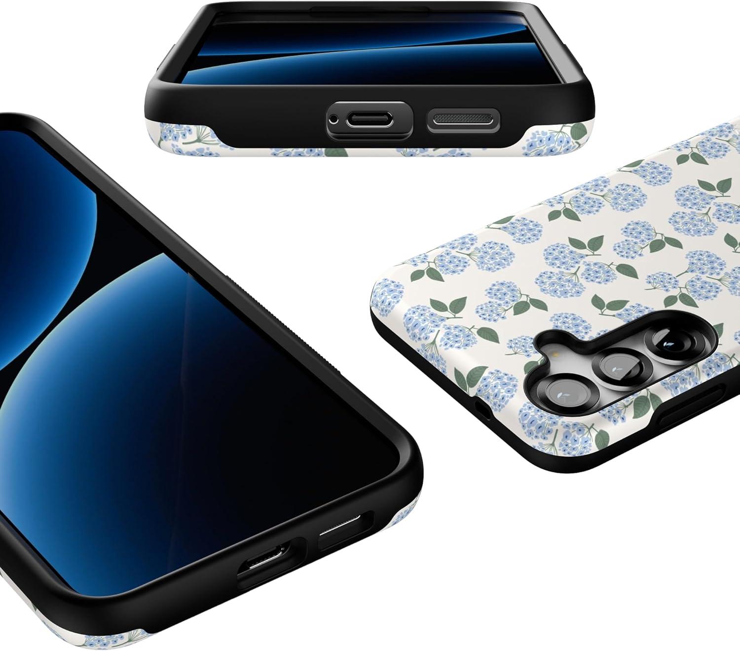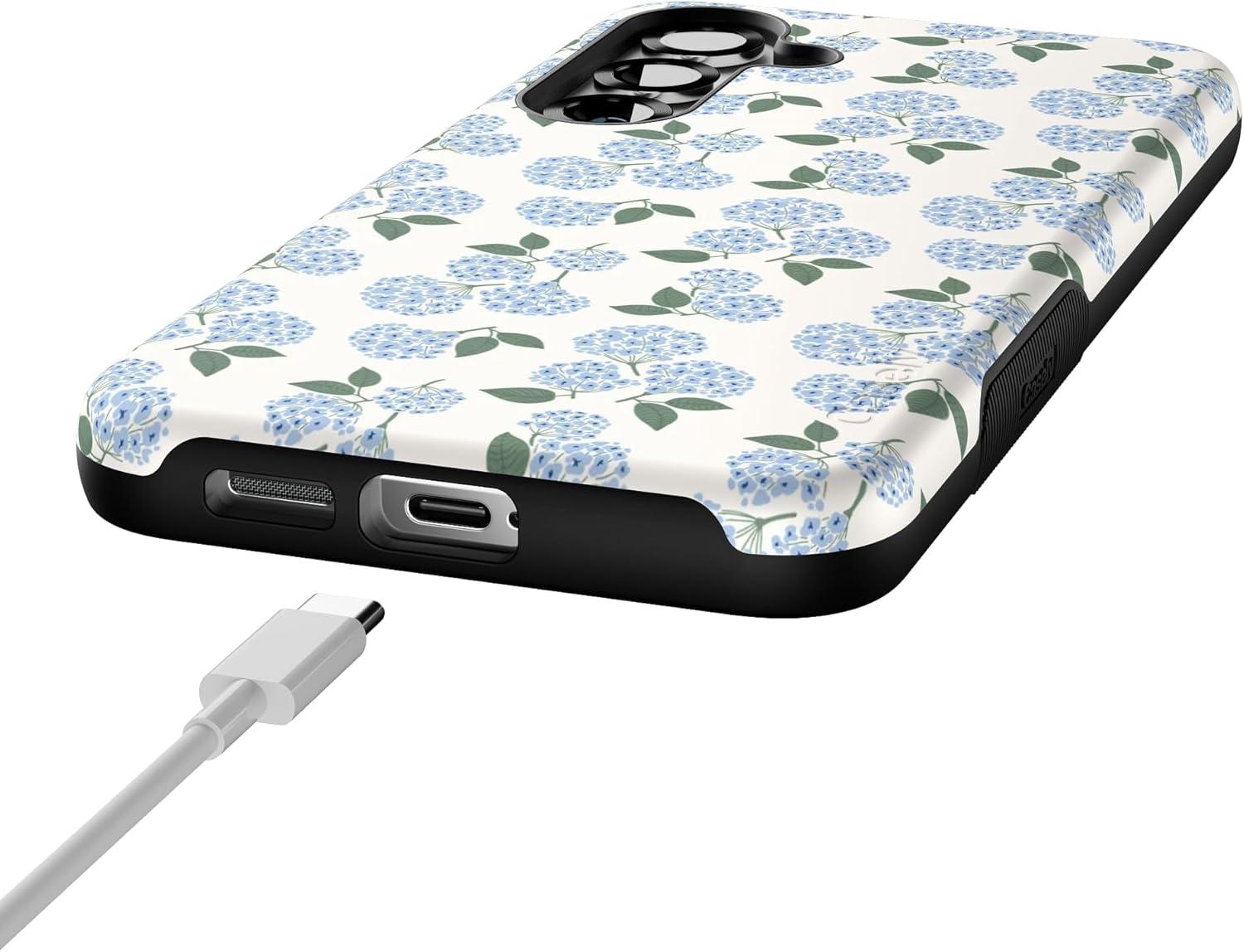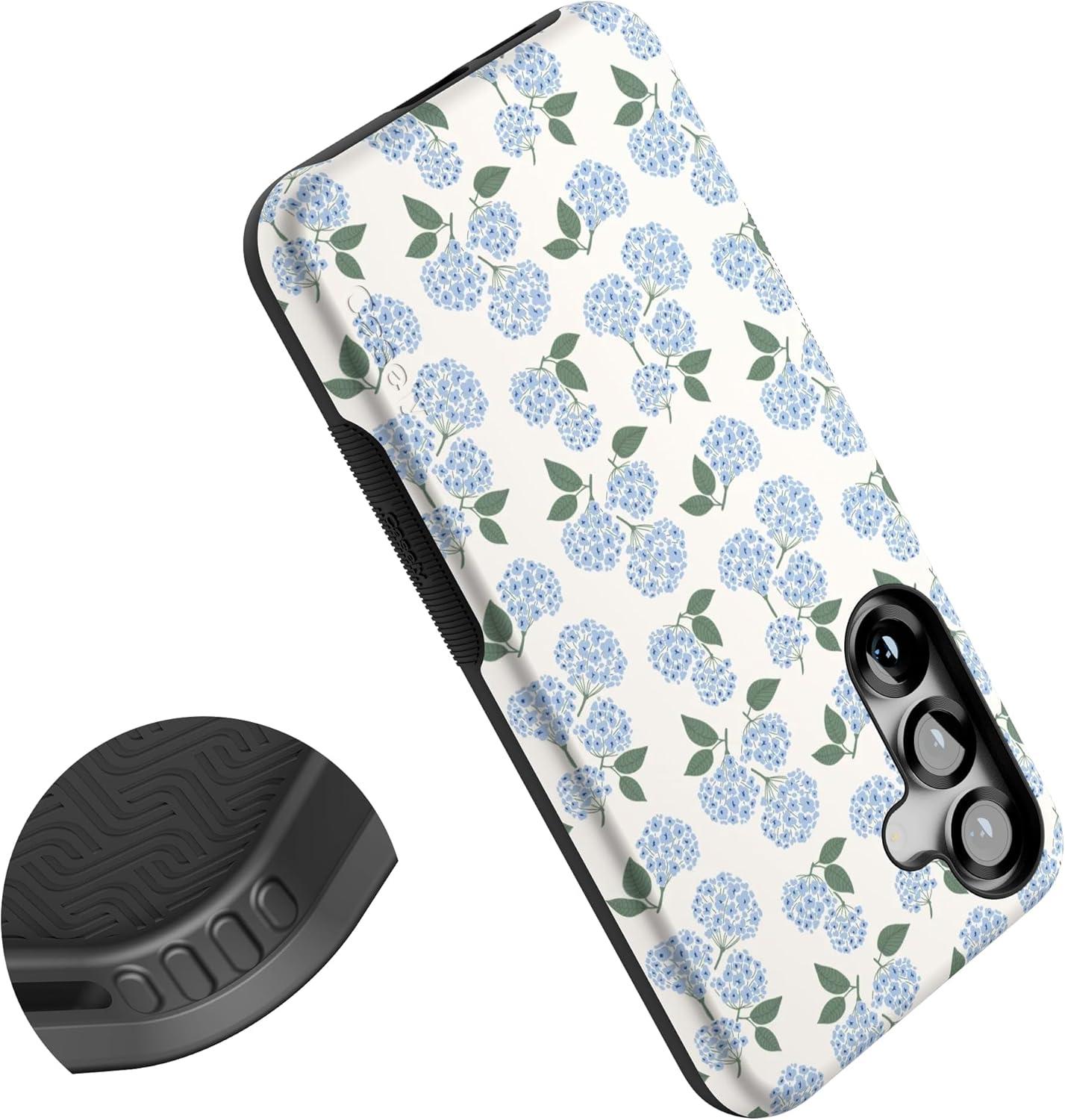 Casely Galaxy S25 Plus Case | Lucky You | Shamrock | Bold Protective Design | Compatible with MagSafe(Nantucket Cottage | Blue Hydrangea)