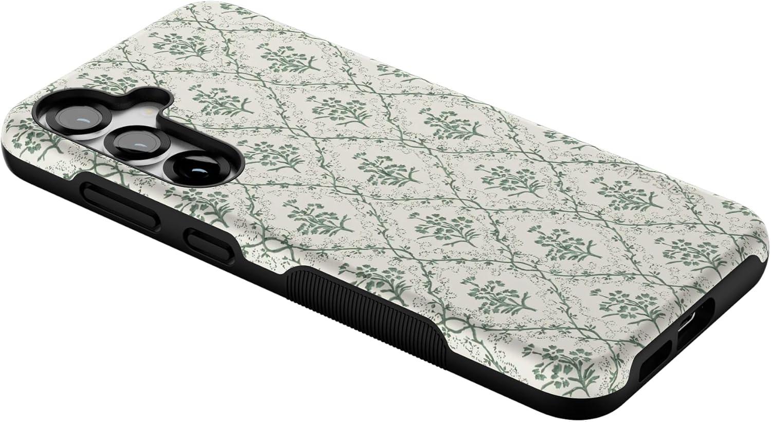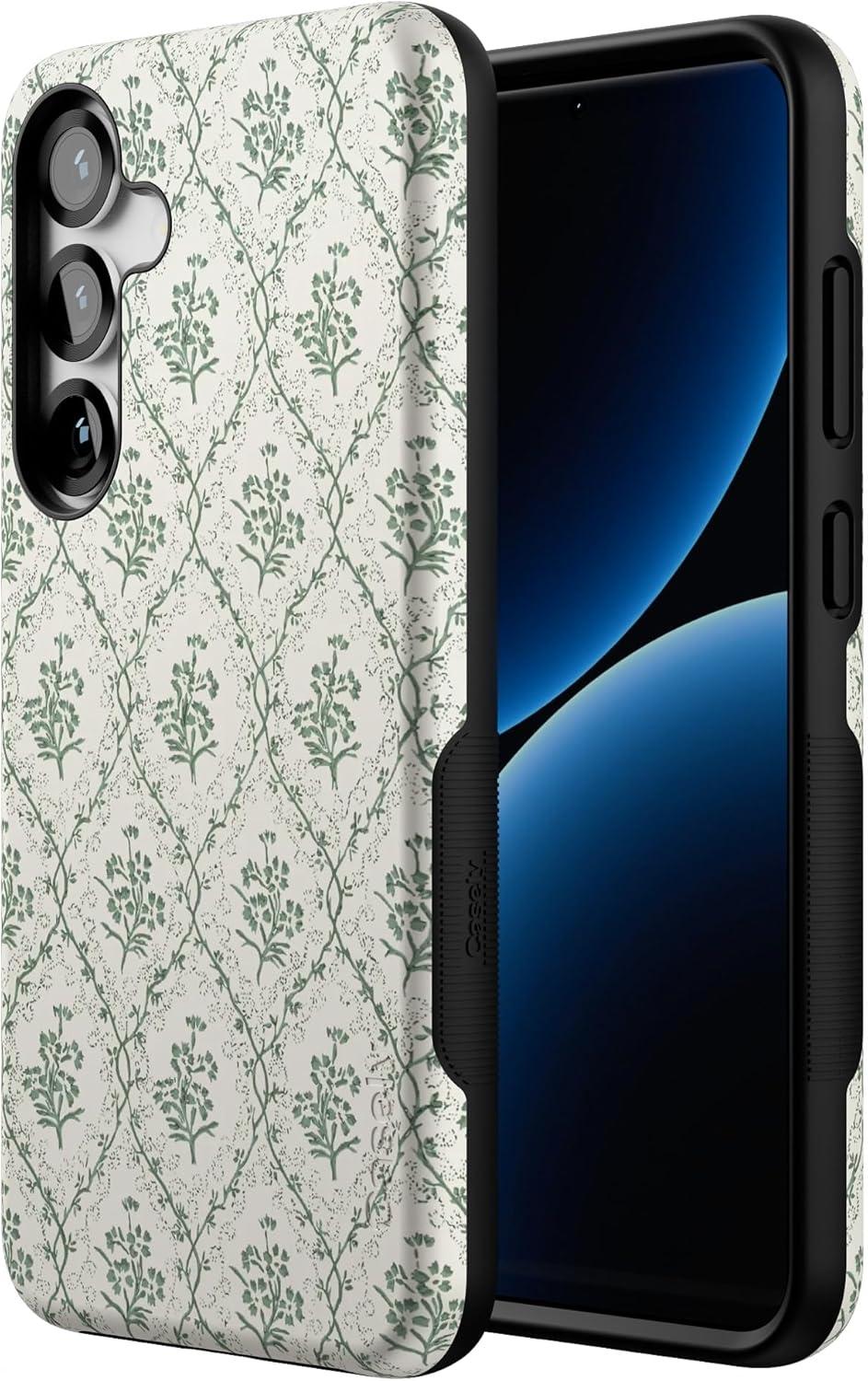 Casely Galaxy S25 Plus Case | Lucky You | Shamrock | Bold Protective Design | Compatible with MagSafe(Sage Tapestry | Floral Vines)