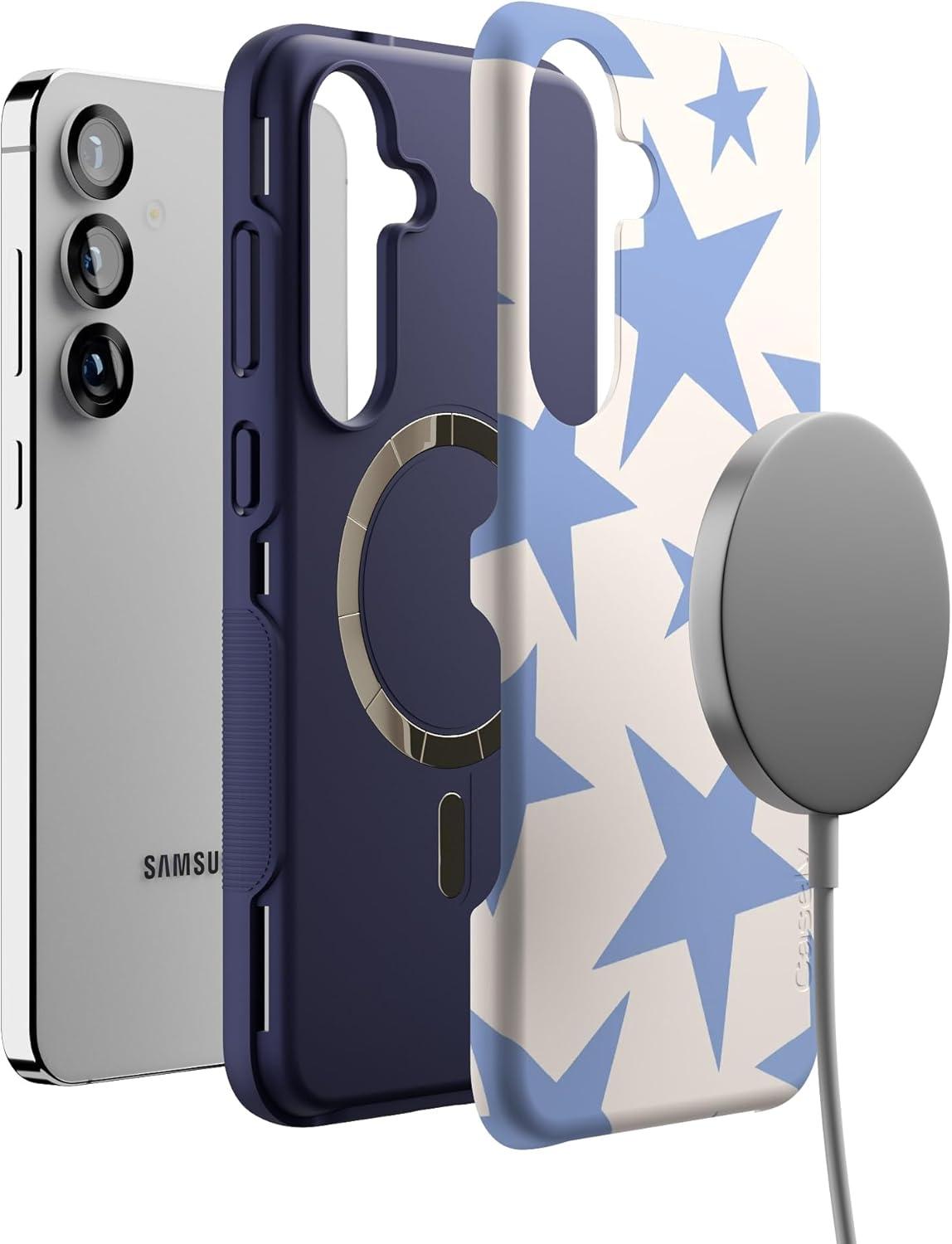 Casely Galaxy S25 Plus Case | Lucky You | Shamrock | Bold Protective Design | Compatible with MagSafe(Stars Align | Blue & White Stars)