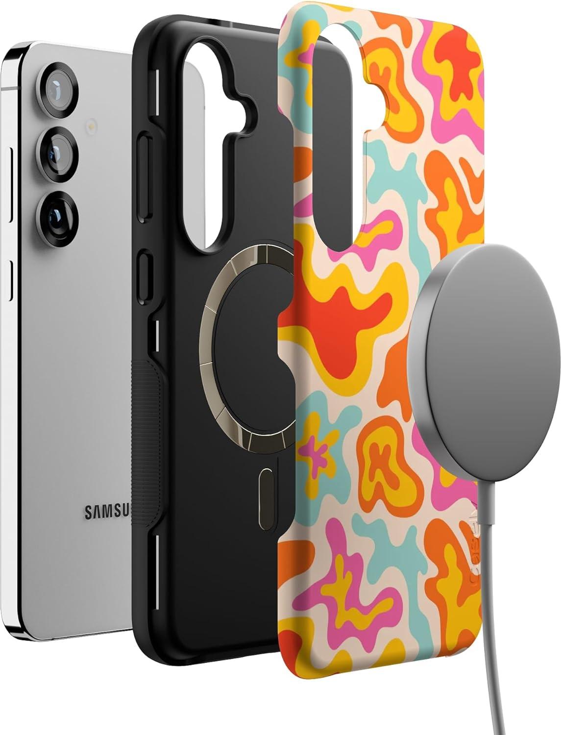 Casely Galaxy S25 Plus Case | Lucky You | Shamrock | Bold Protective Design | Compatible with MagSafe(Tropical Color Splash | Abstract Retro)