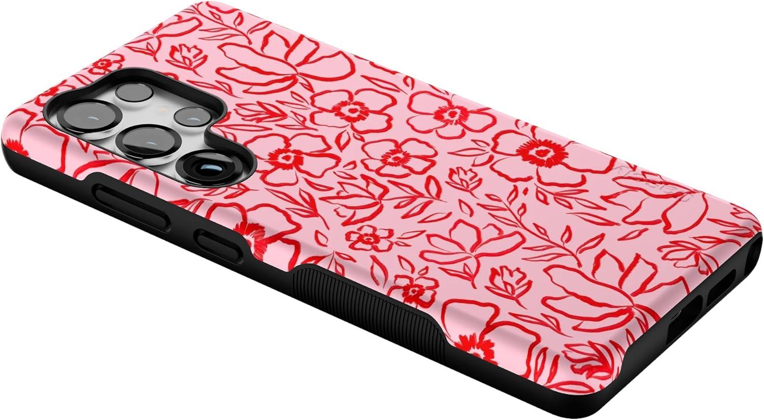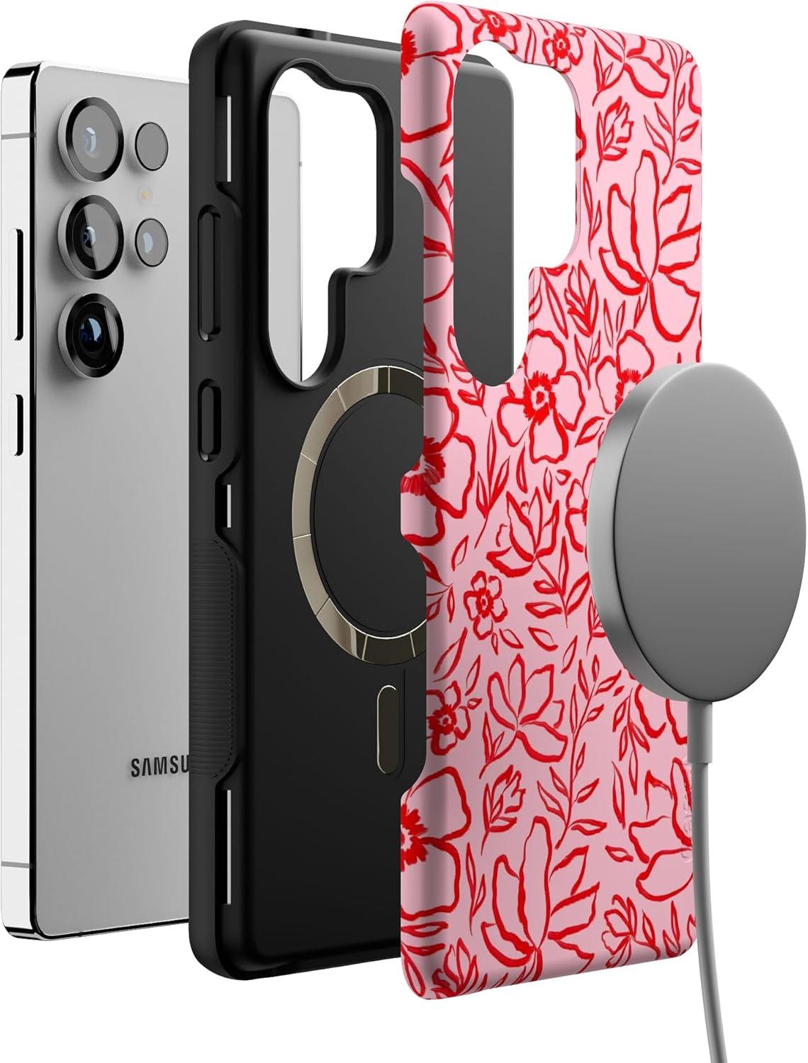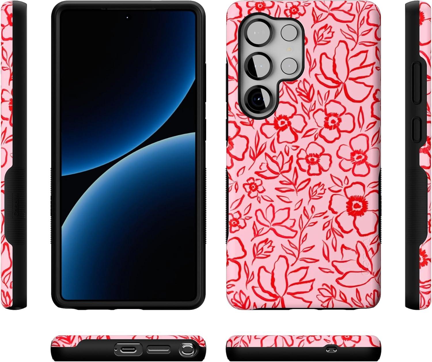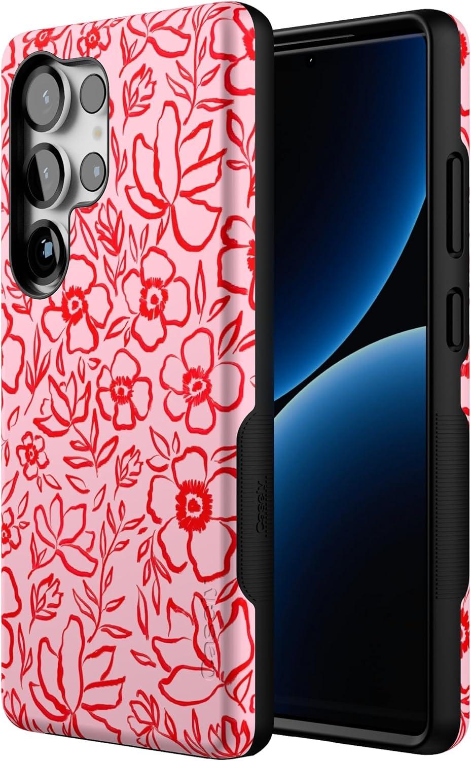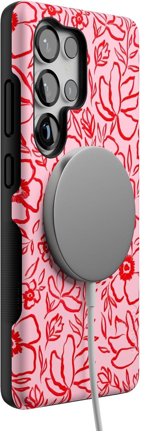 Casely Galaxy S25 Ultra Case | Chateau Pups | French Dog | Compatible with MagSafe | Bold Protective Design(Blush Garden | Floral Doodle)