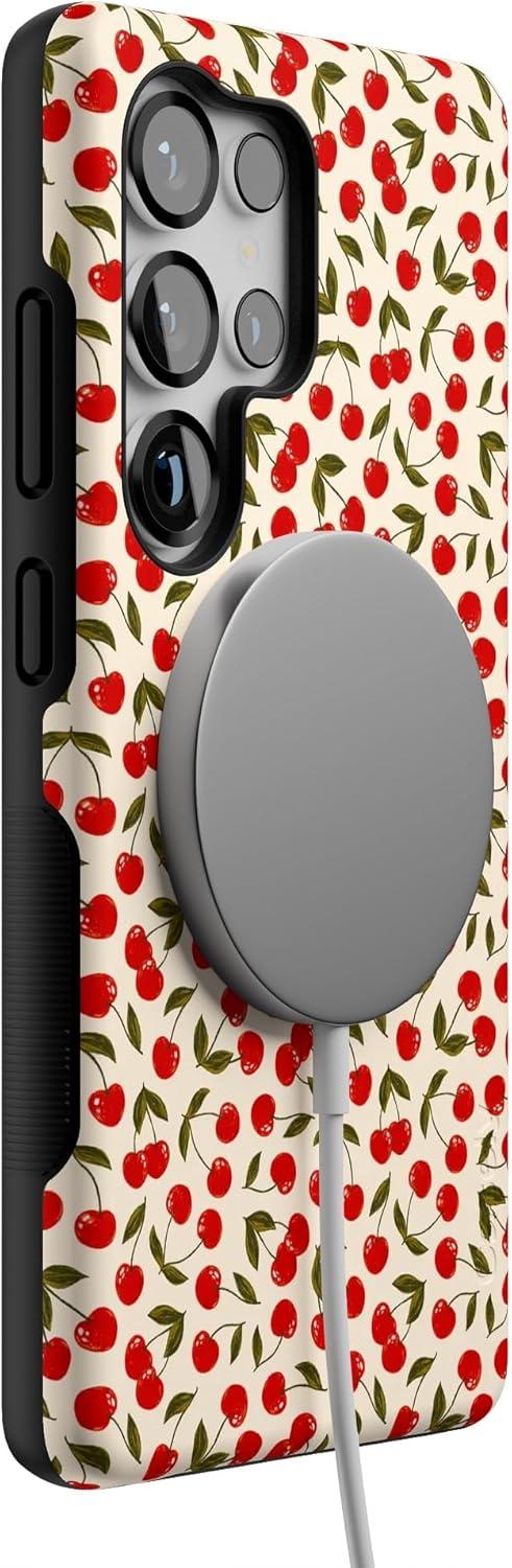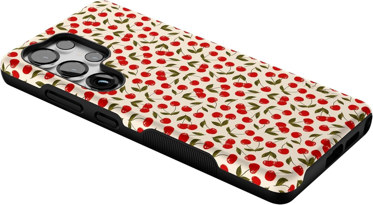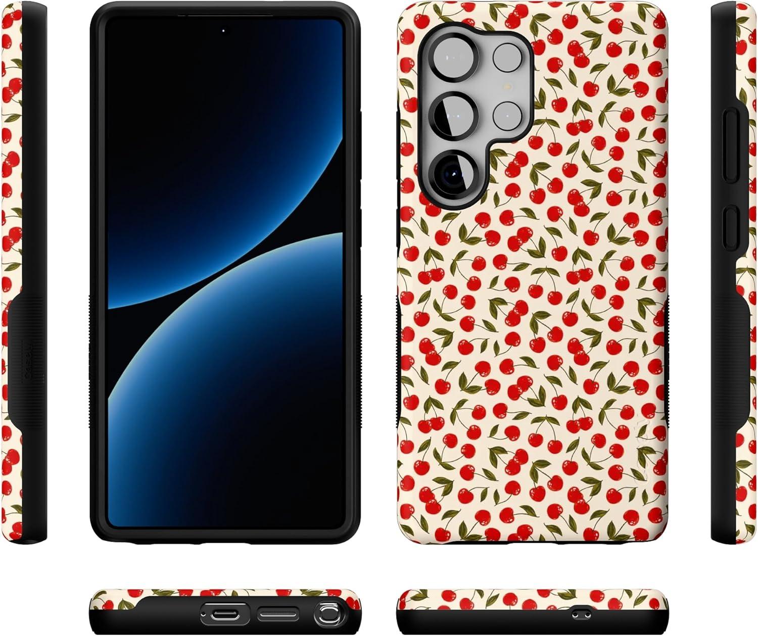 Casely Galaxy S25 Ultra Case | Chateau Pups | French Dog | Compatible with MagSafe | Bold Protective Design(Cherry on Top | Red Cherries)