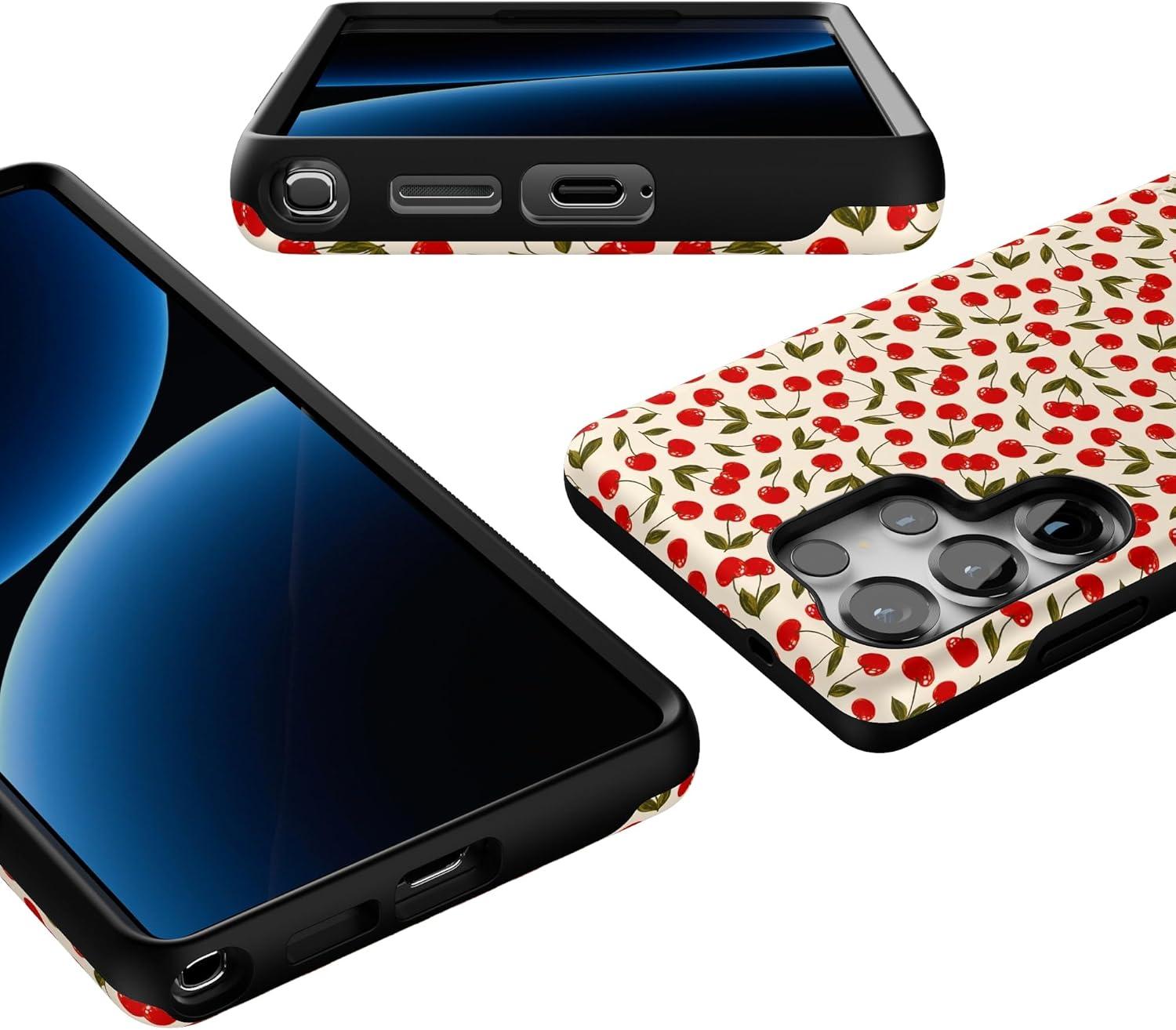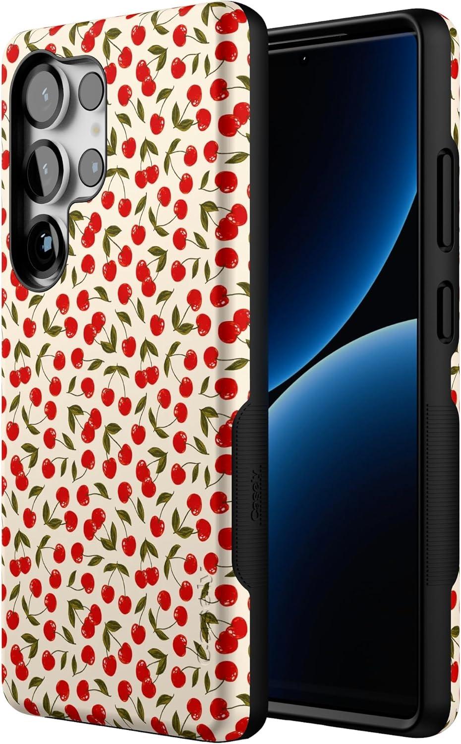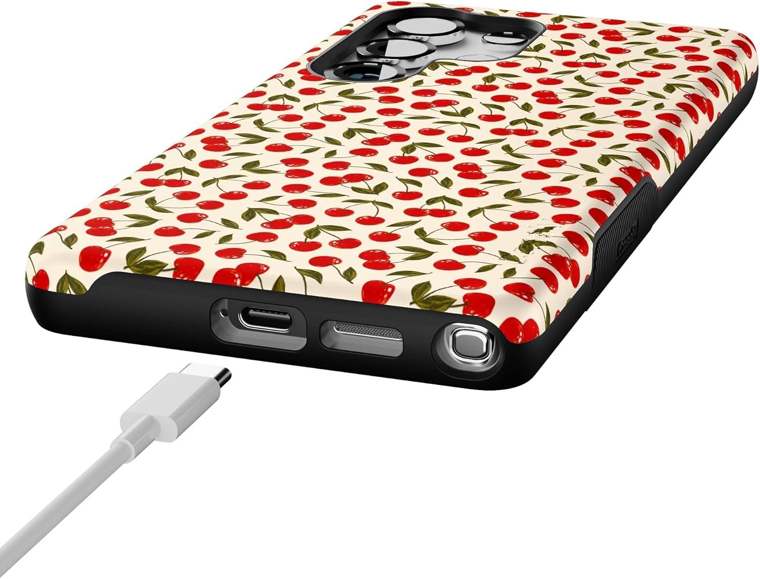 Casely Galaxy S25 Ultra Case | Chateau Pups | French Dog | Compatible with MagSafe | Bold Protective Design(Cherry on Top | Red Cherries)