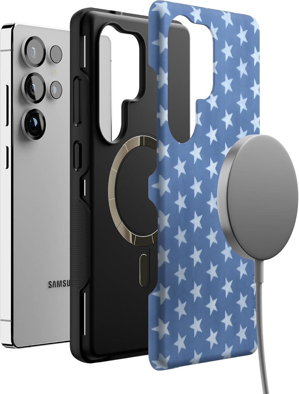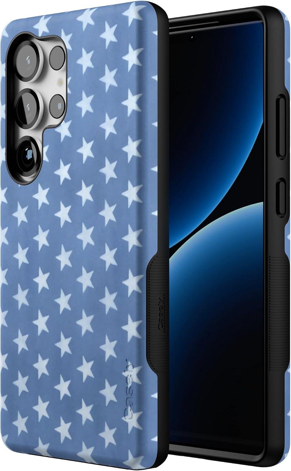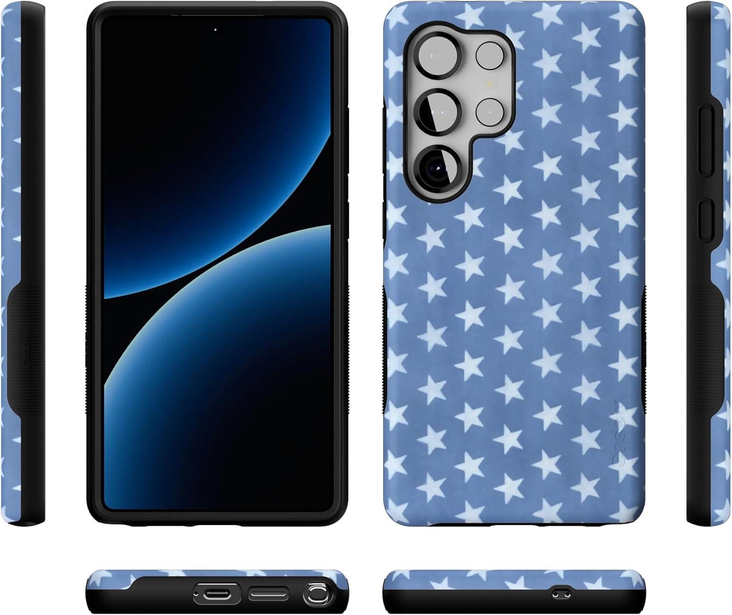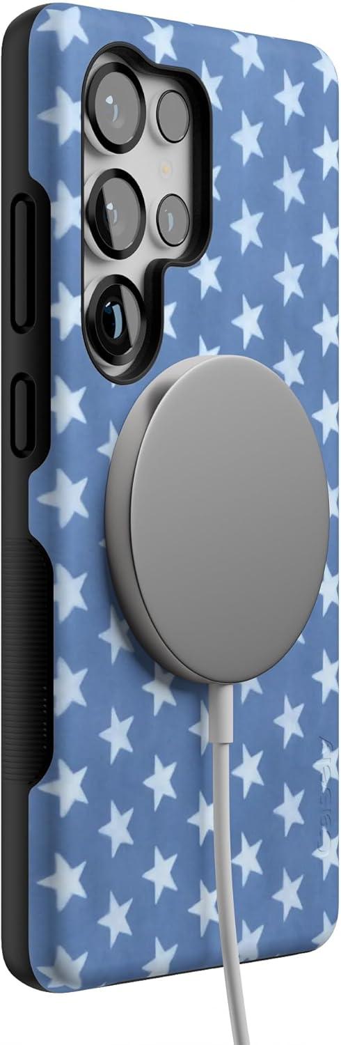 Casely Galaxy S25 Ultra Case | Chateau Pups | French Dog | Compatible with MagSafe | Bold Protective Design(Coastal Blues | Denim Stars)