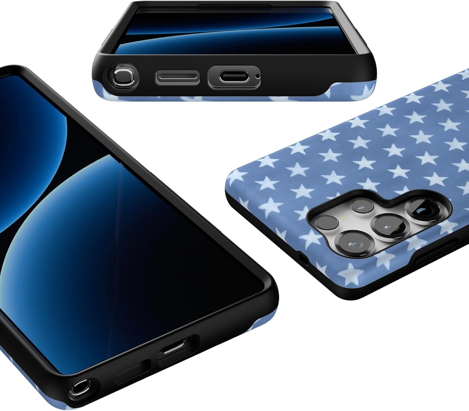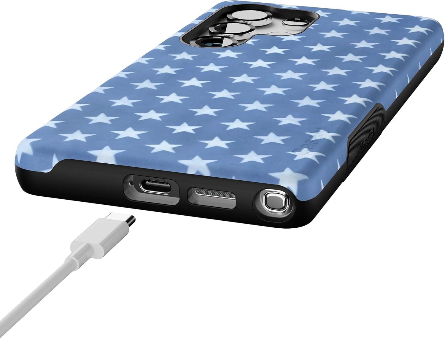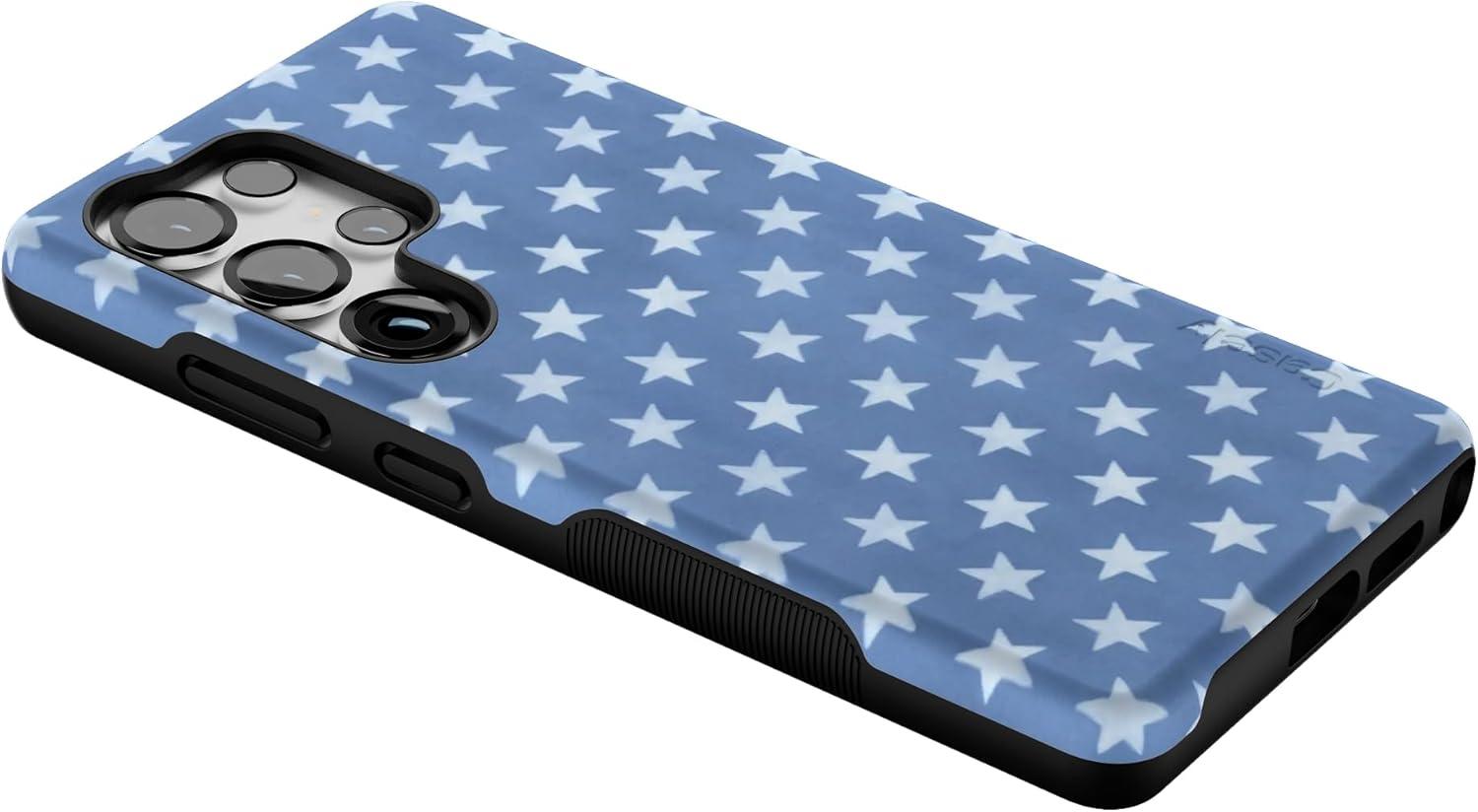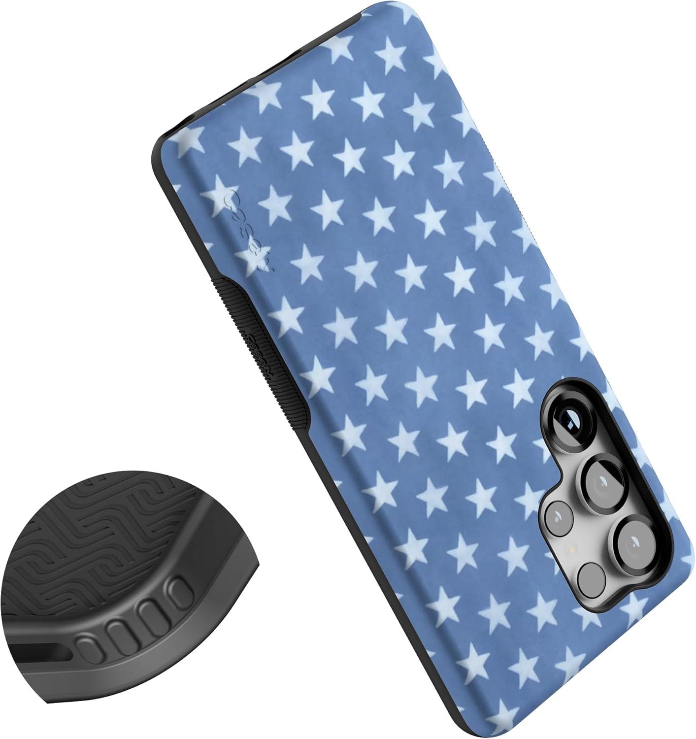 Casely Galaxy S25 Ultra Case | Chateau Pups | French Dog | Compatible with MagSafe | Bold Protective Design(Coastal Blues | Denim Stars)