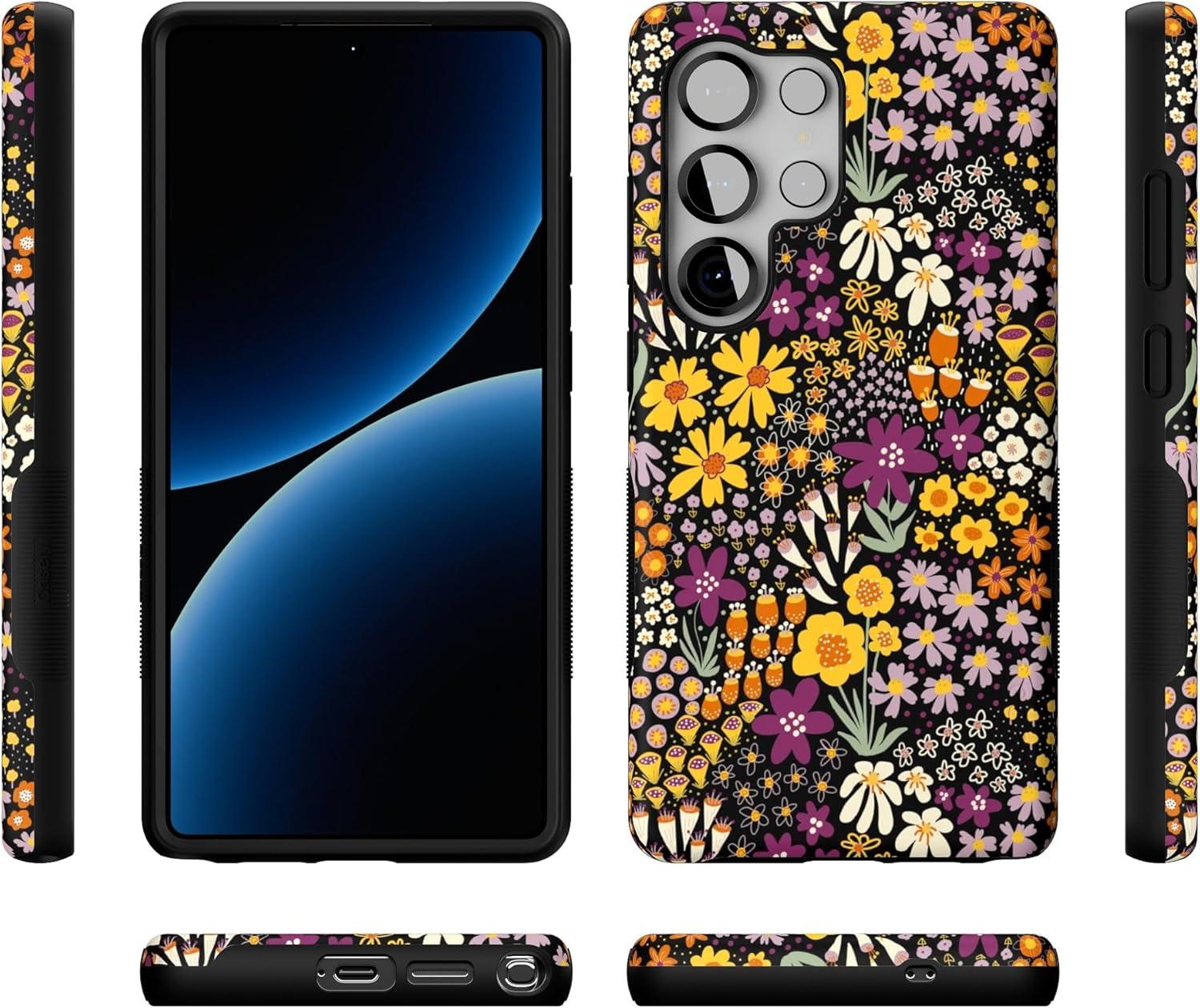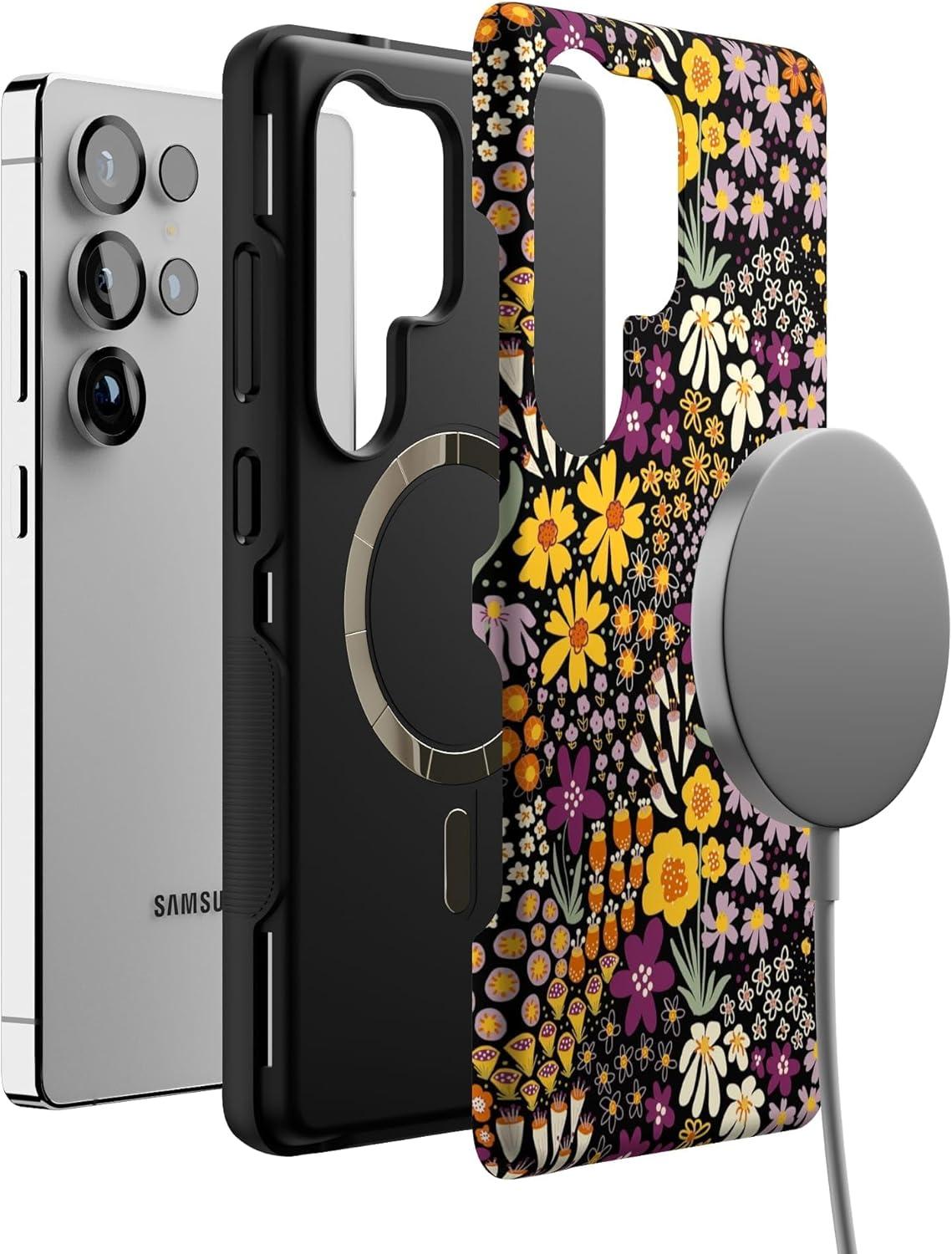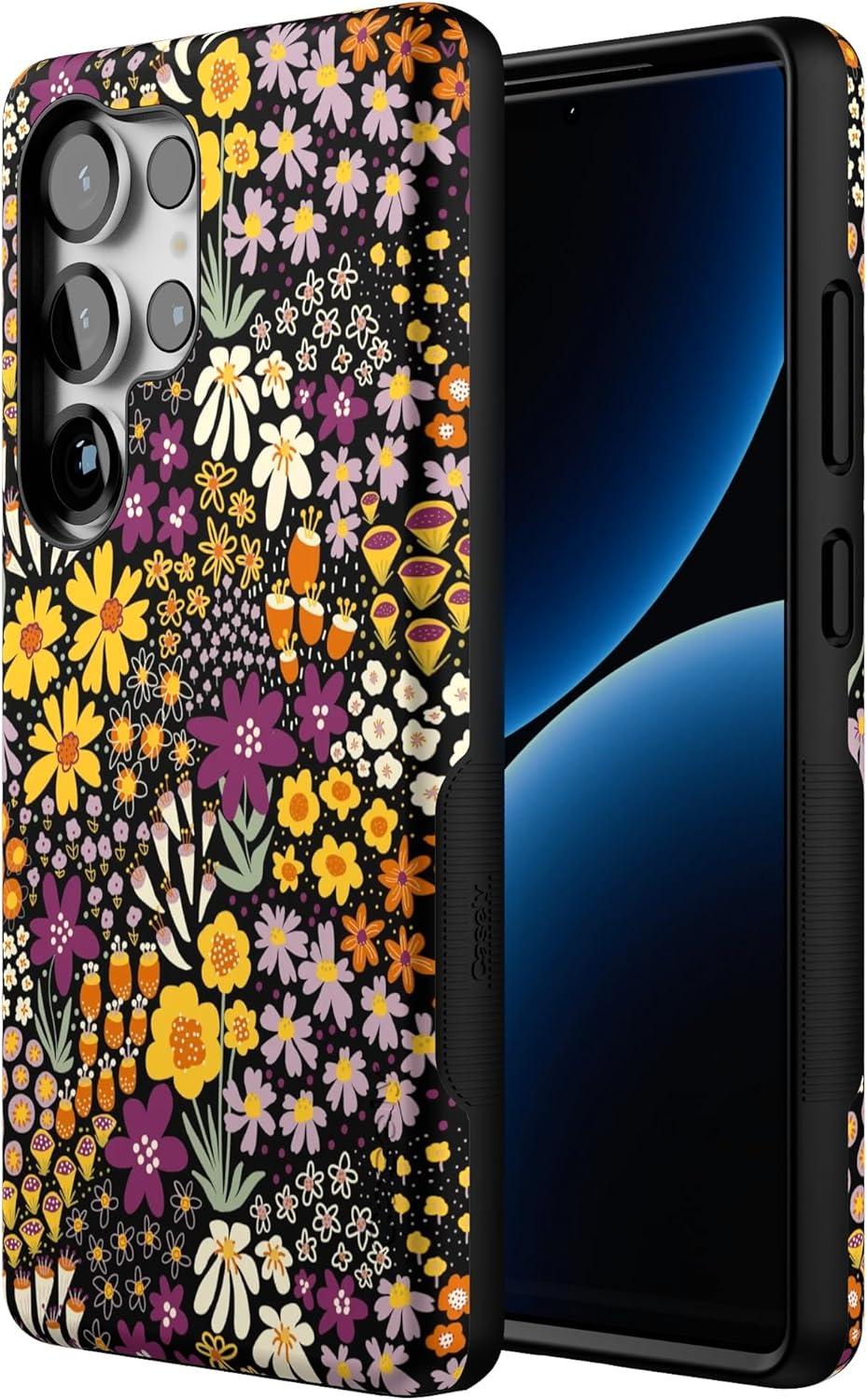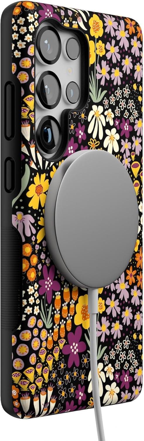 Casely Galaxy S25 Ultra Case | Chateau Pups | French Dog | Compatible with MagSafe | Bold Protective Design(Falling for You | Plum Floral)