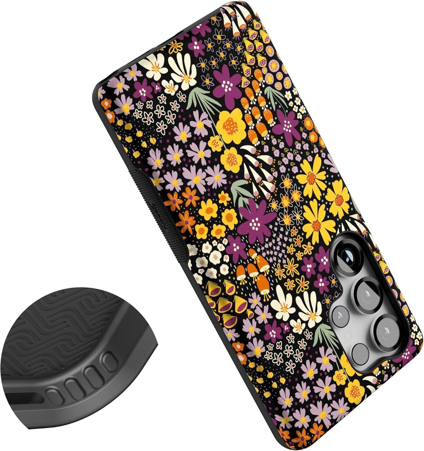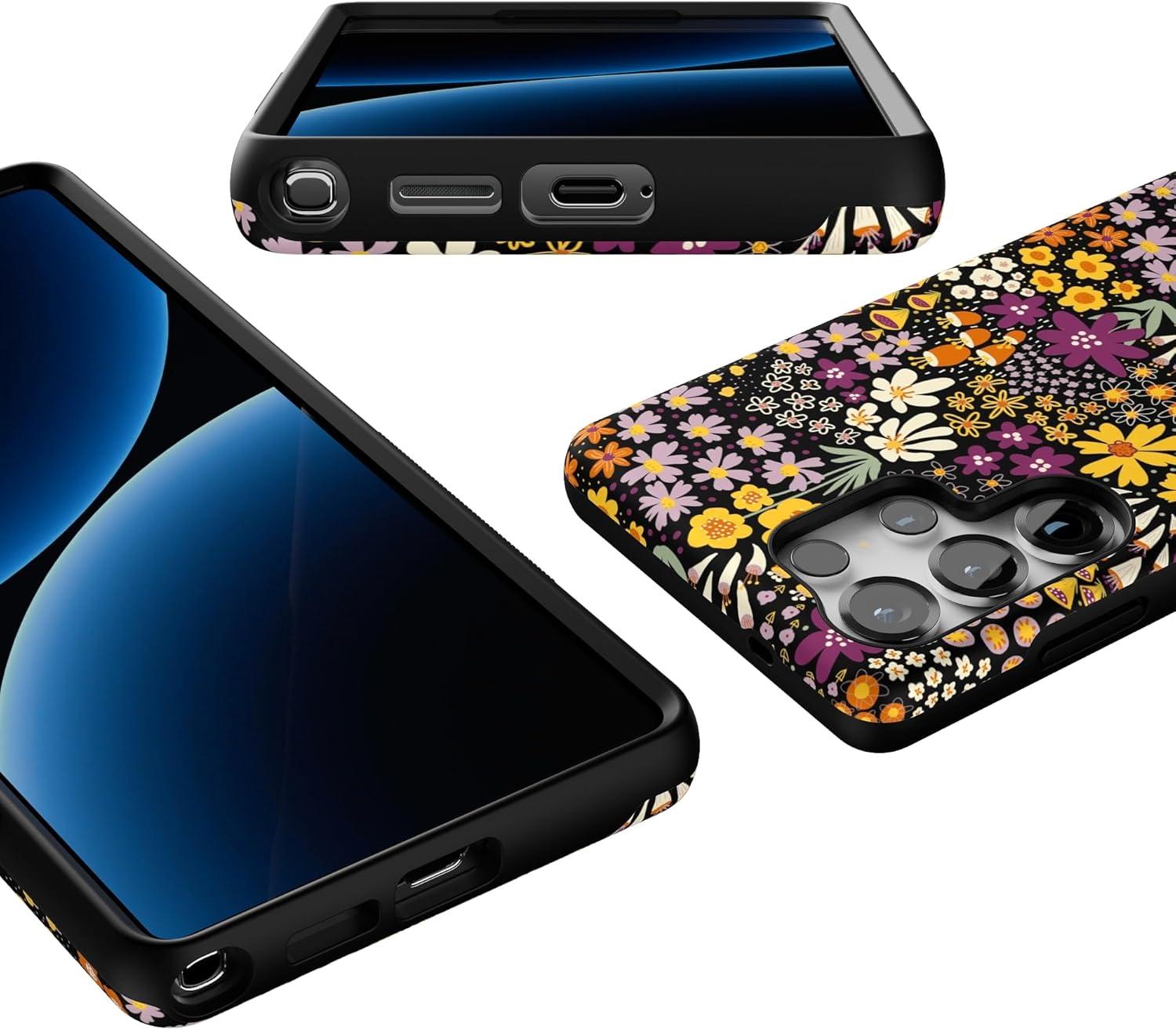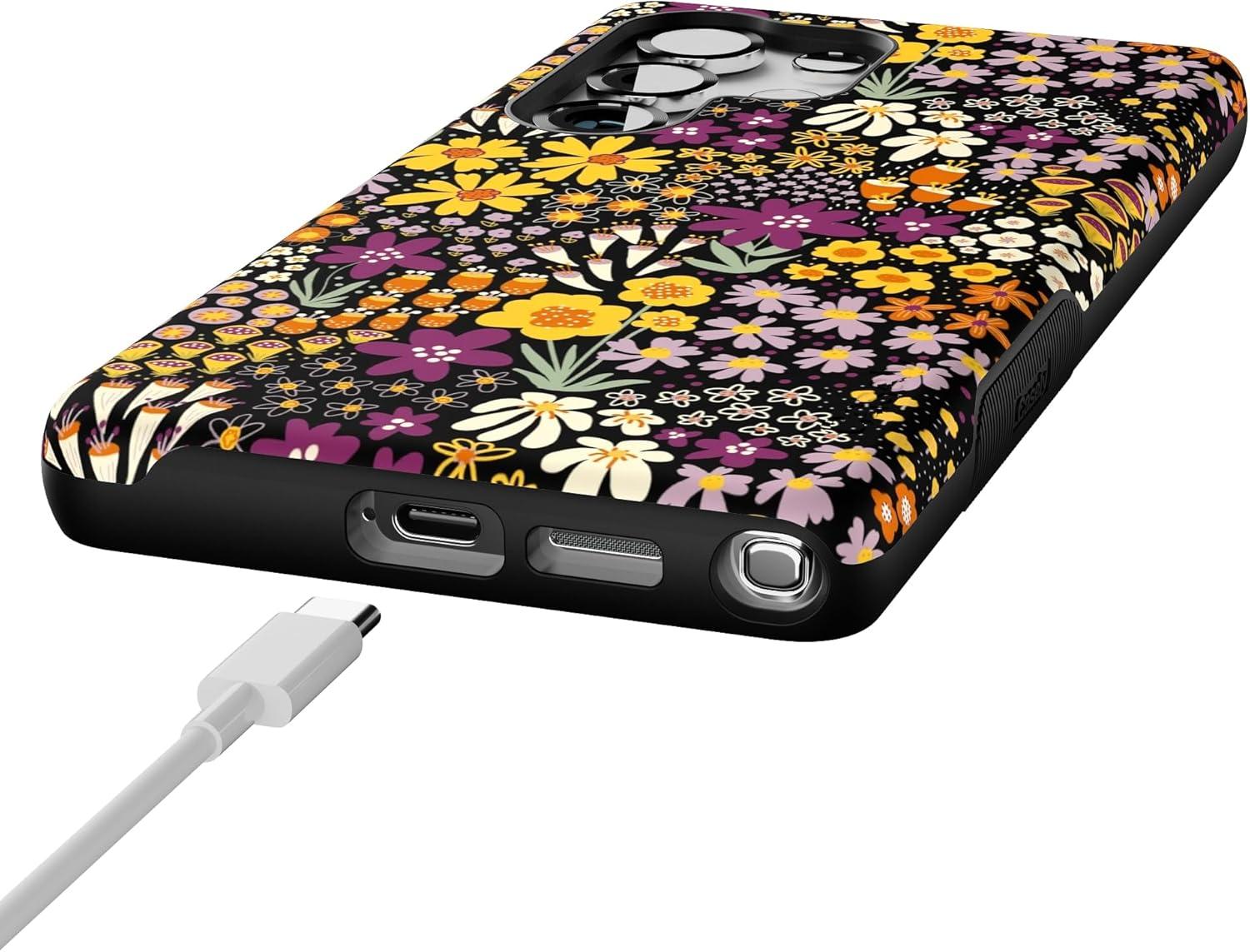 Casely Galaxy S25 Ultra Case | Chateau Pups | French Dog | Compatible with MagSafe | Bold Protective Design(Falling for You | Plum Floral)