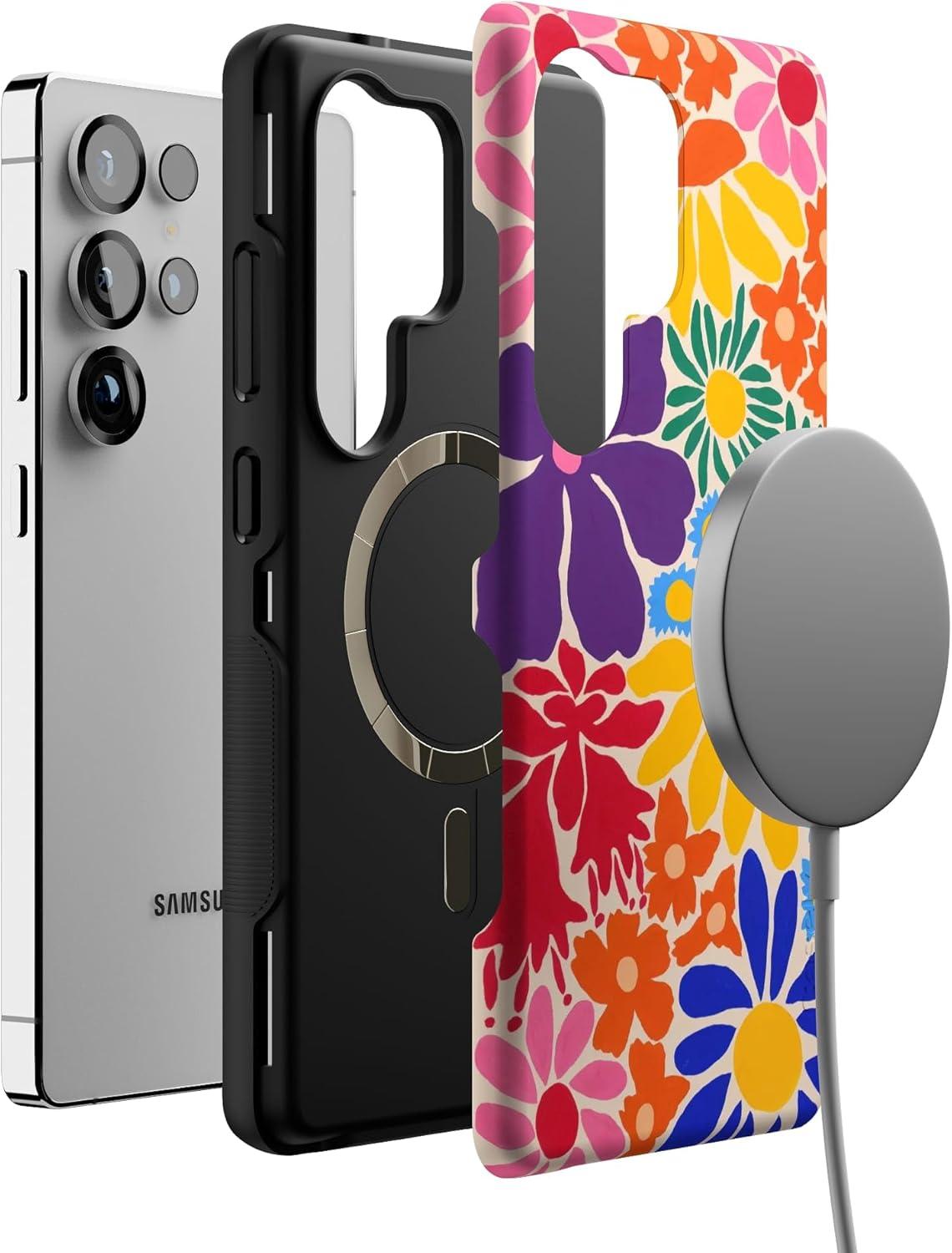 Casely Galaxy S25 Ultra Case | Chateau Pups | French Dog | Compatible with MagSafe | Bold Protective Design(Flower Patch | Multi-Color Floral)