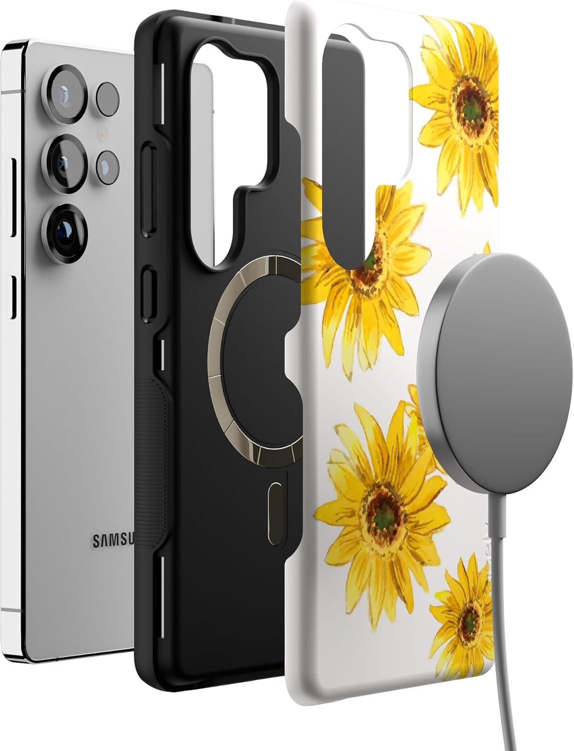 Casely Galaxy S25 Ultra Case | Chateau Pups | French Dog | Compatible with MagSafe | Bold Protective Design(Golden Garden | Yellow Sunflower Floral)