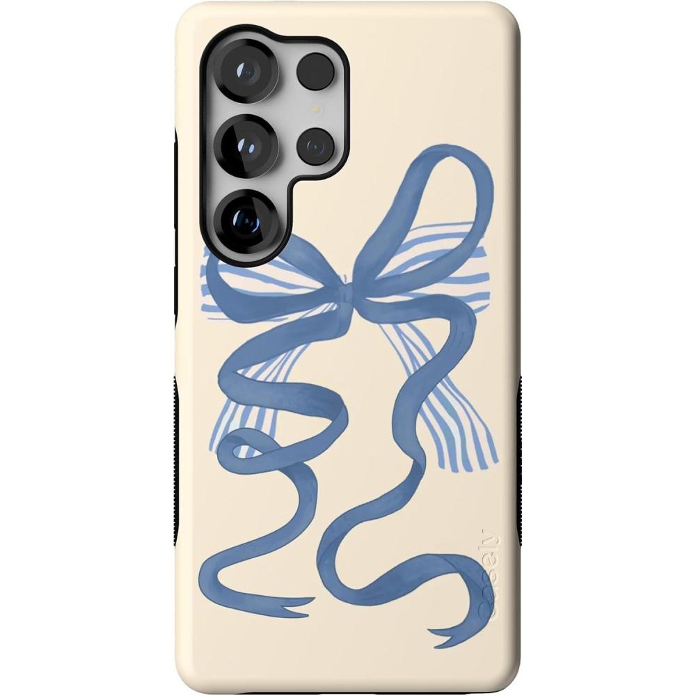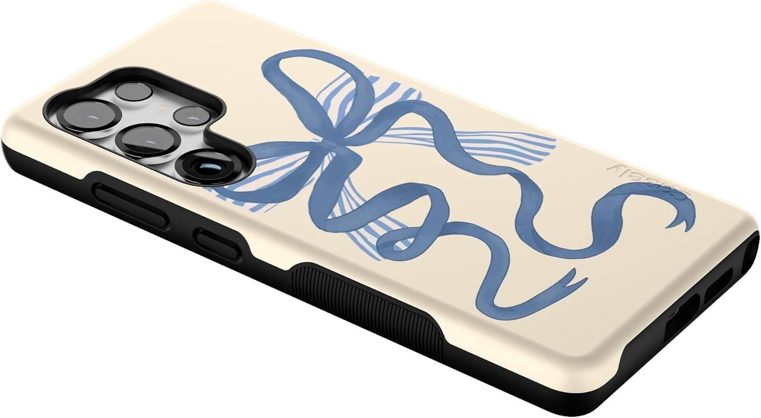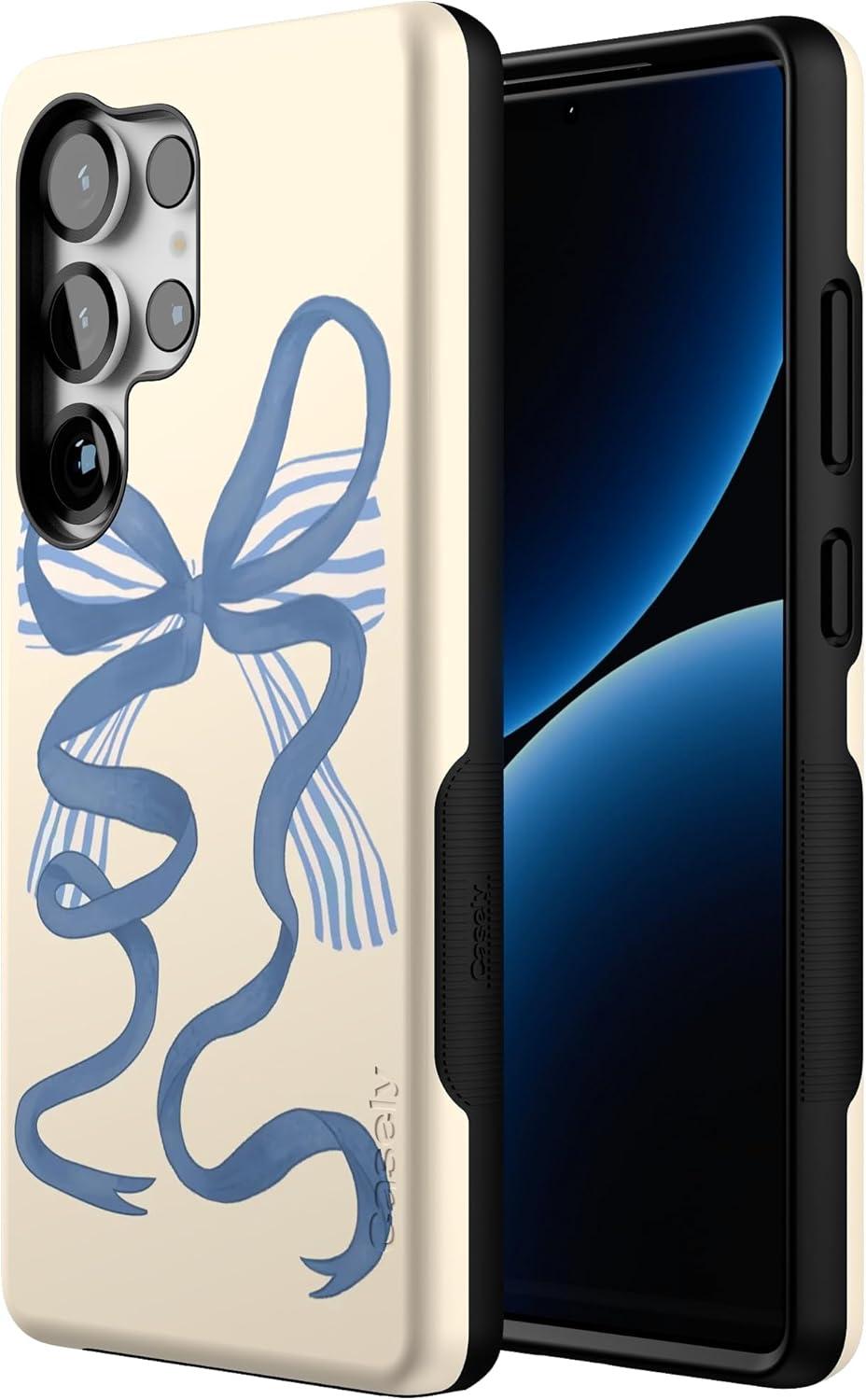 Casely Galaxy S25 Ultra Case | Chateau Pups | French Dog | Compatible with MagSafe | Bold Protective Design(Heartstrings | Blue Bow)